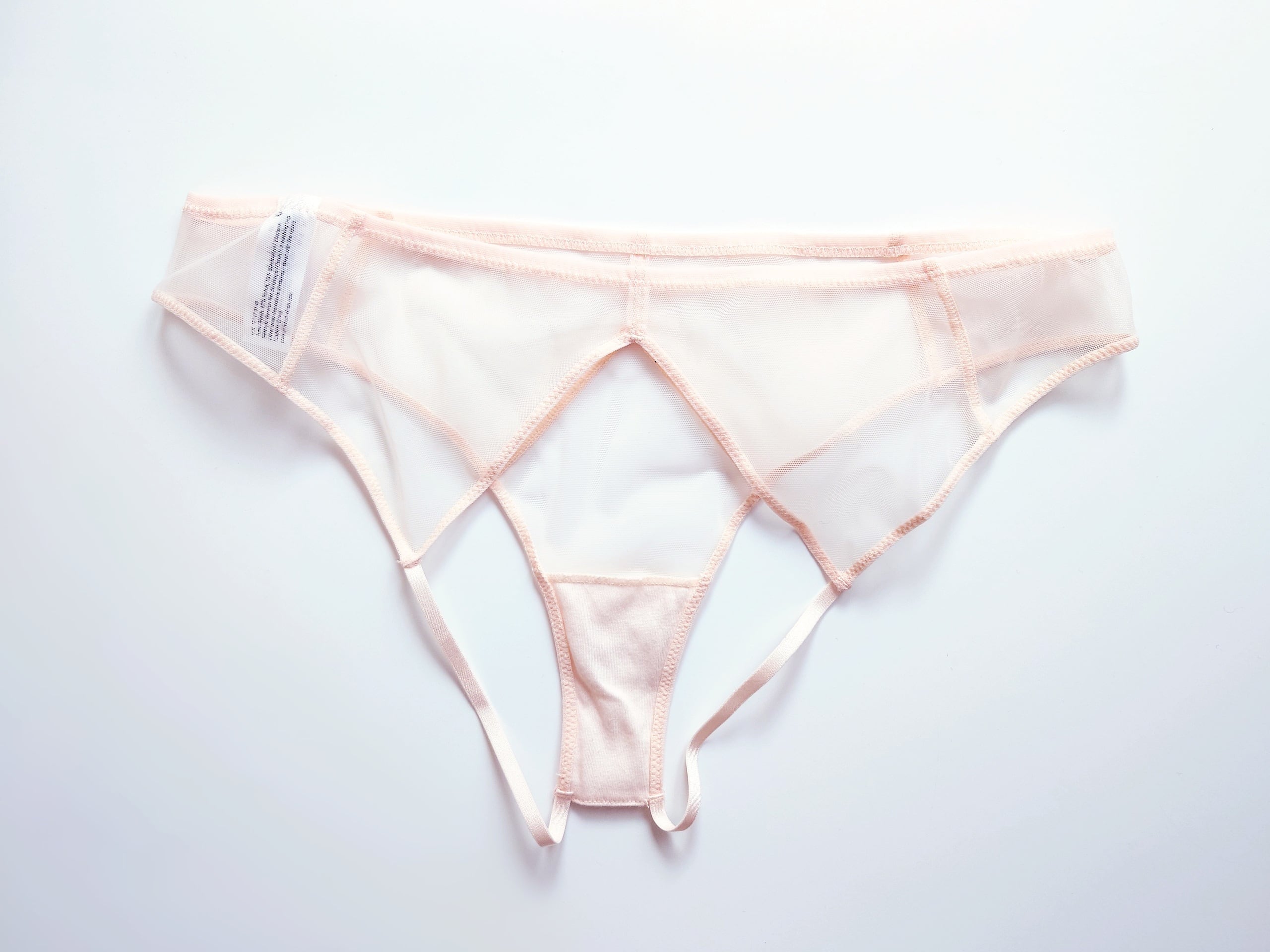 ストレッチのきいたツヤ消しヌーディピンクのチュールが角度によってほんのりキラめきます。