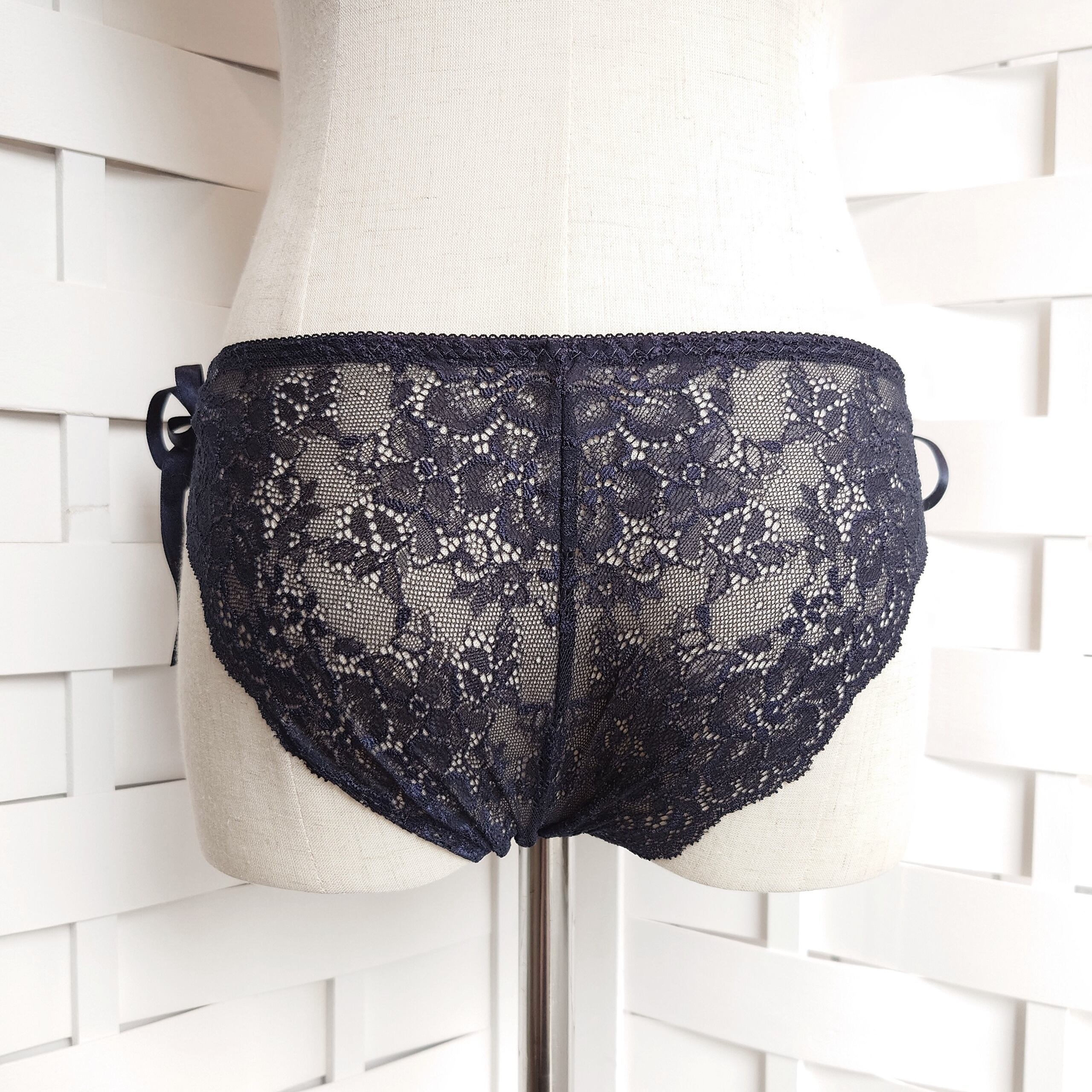 左右両サイドがほどけるサテンリボンになっております。