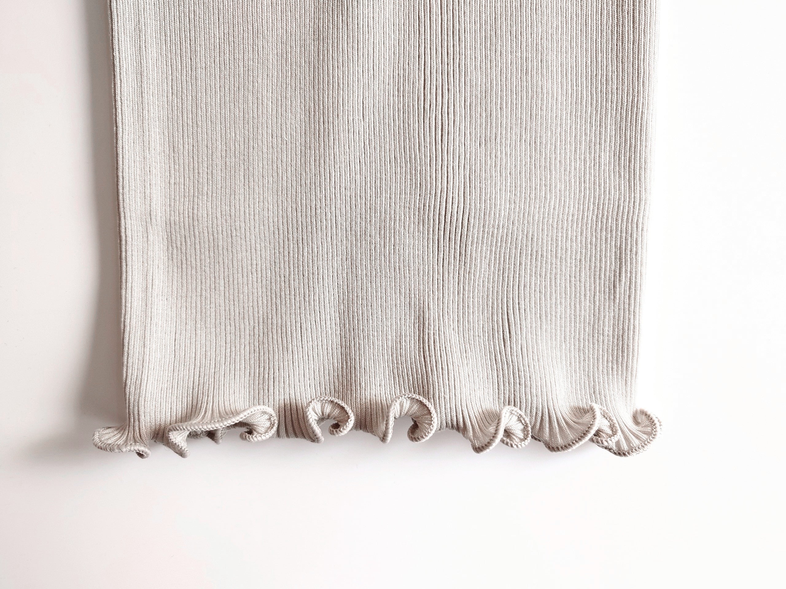 上質な素材をこれでもかと贅沢にたっぷり使用して編み上げたオスカリートのリブは優しくふんわり体に添います。ピタピタに張り付くこともなく、細リブの陰影が体のシルエットを上品に美しく見せてくれます。