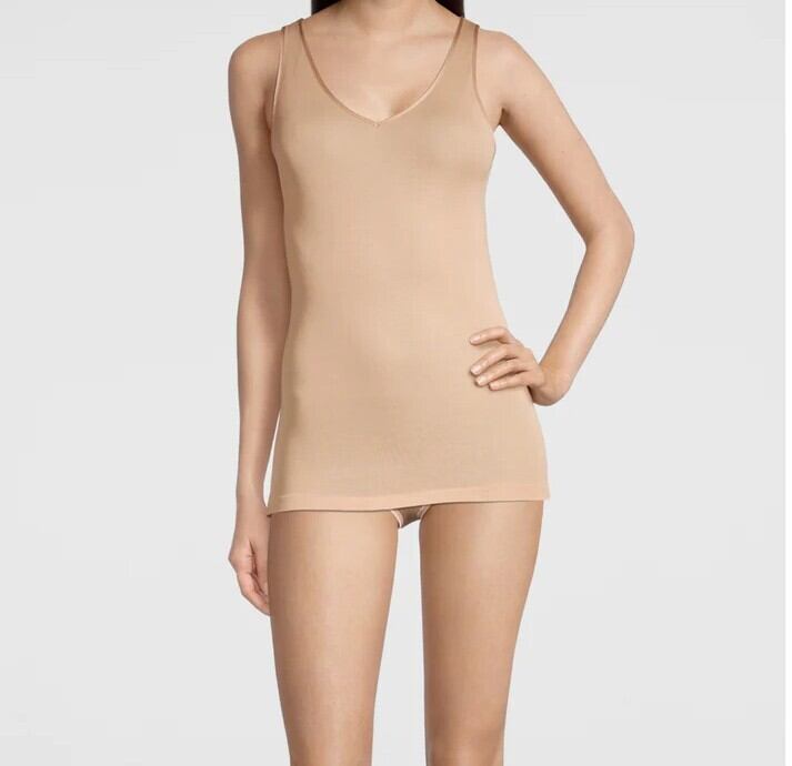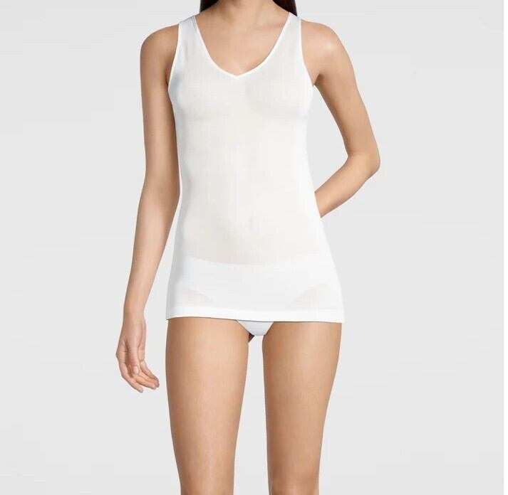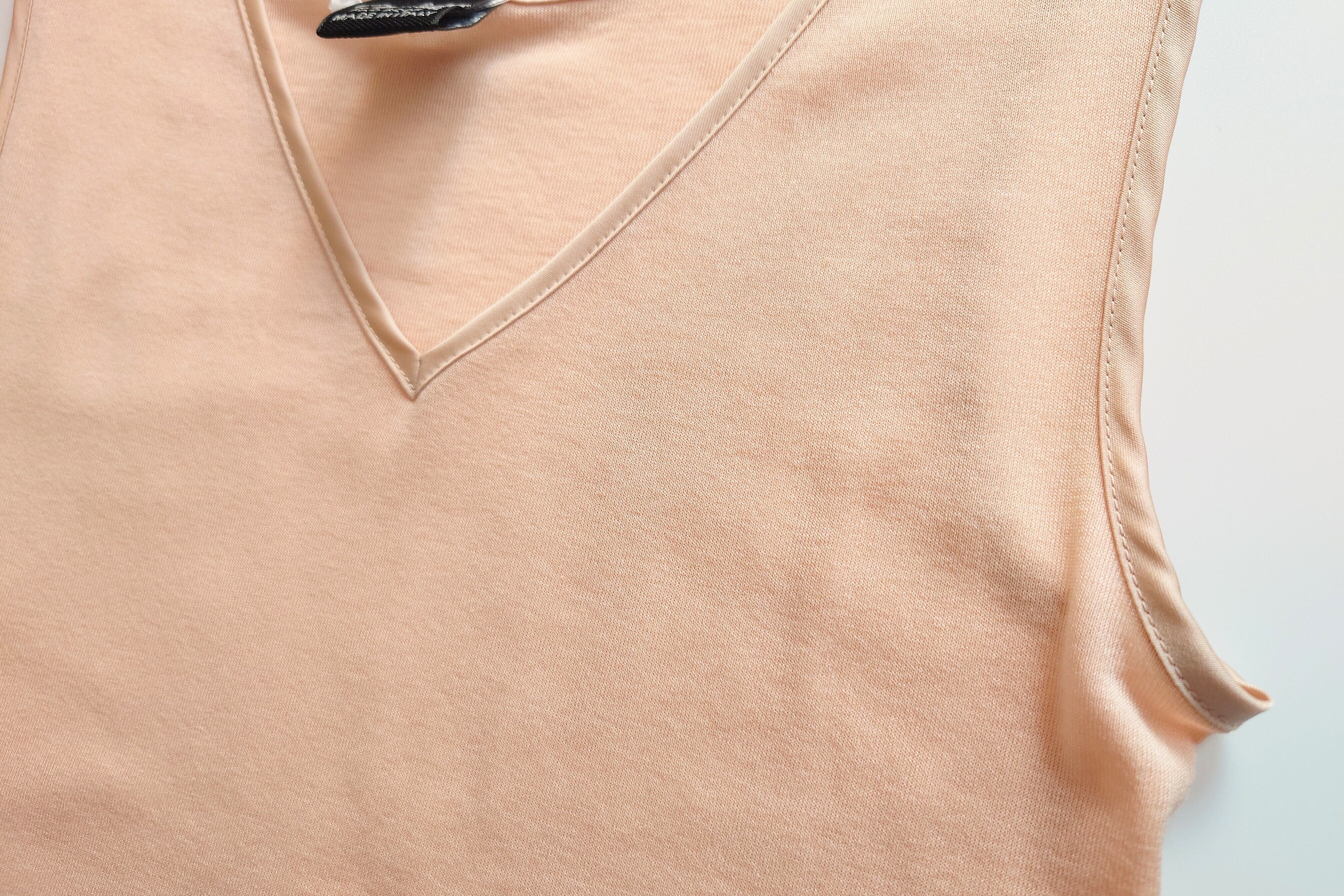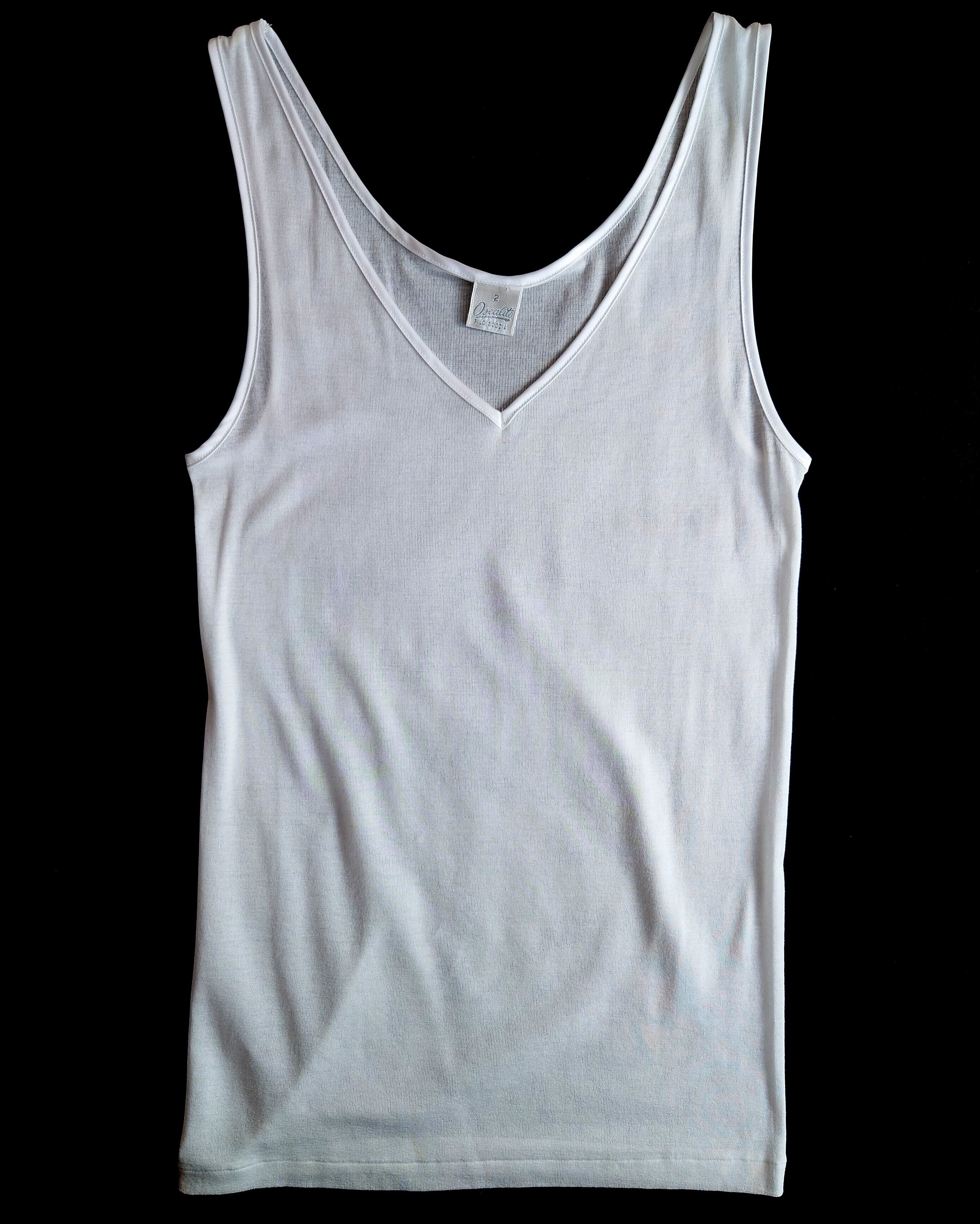 Vネックのカッティングが美しいベーシックなタンクトップ。