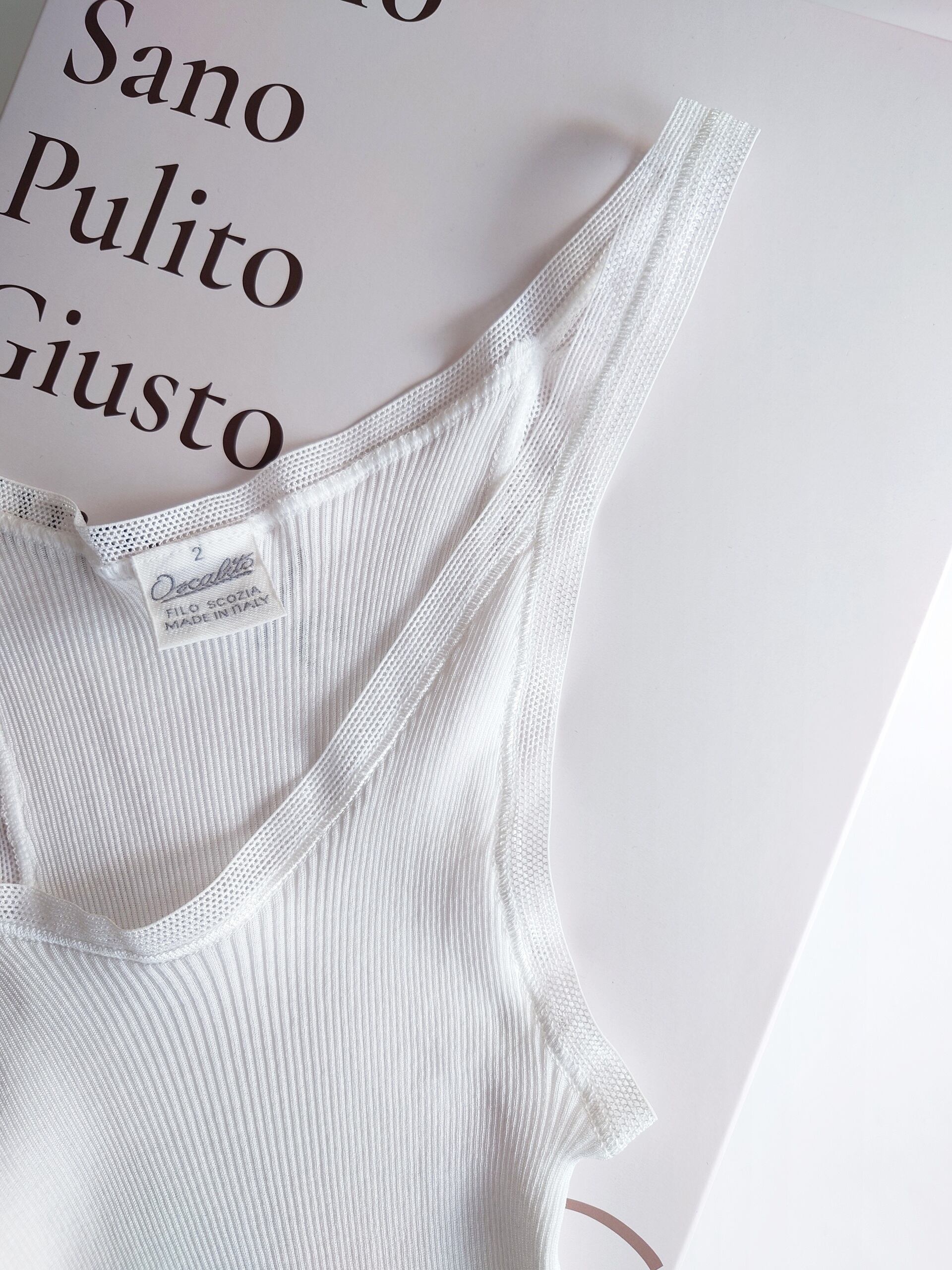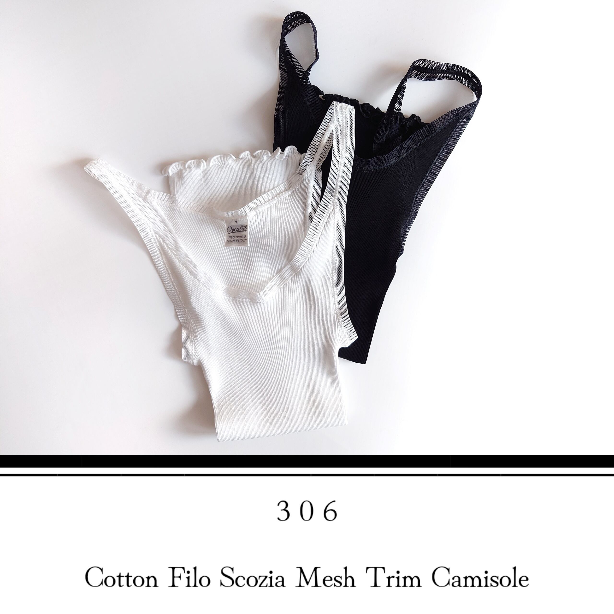 【Oscalito】オスカリートのメッシュトリムリブキャミソールです。こちらはコットンの最高品質ブランドFILO SCOZIA(フィロスコツィア) コットン100%