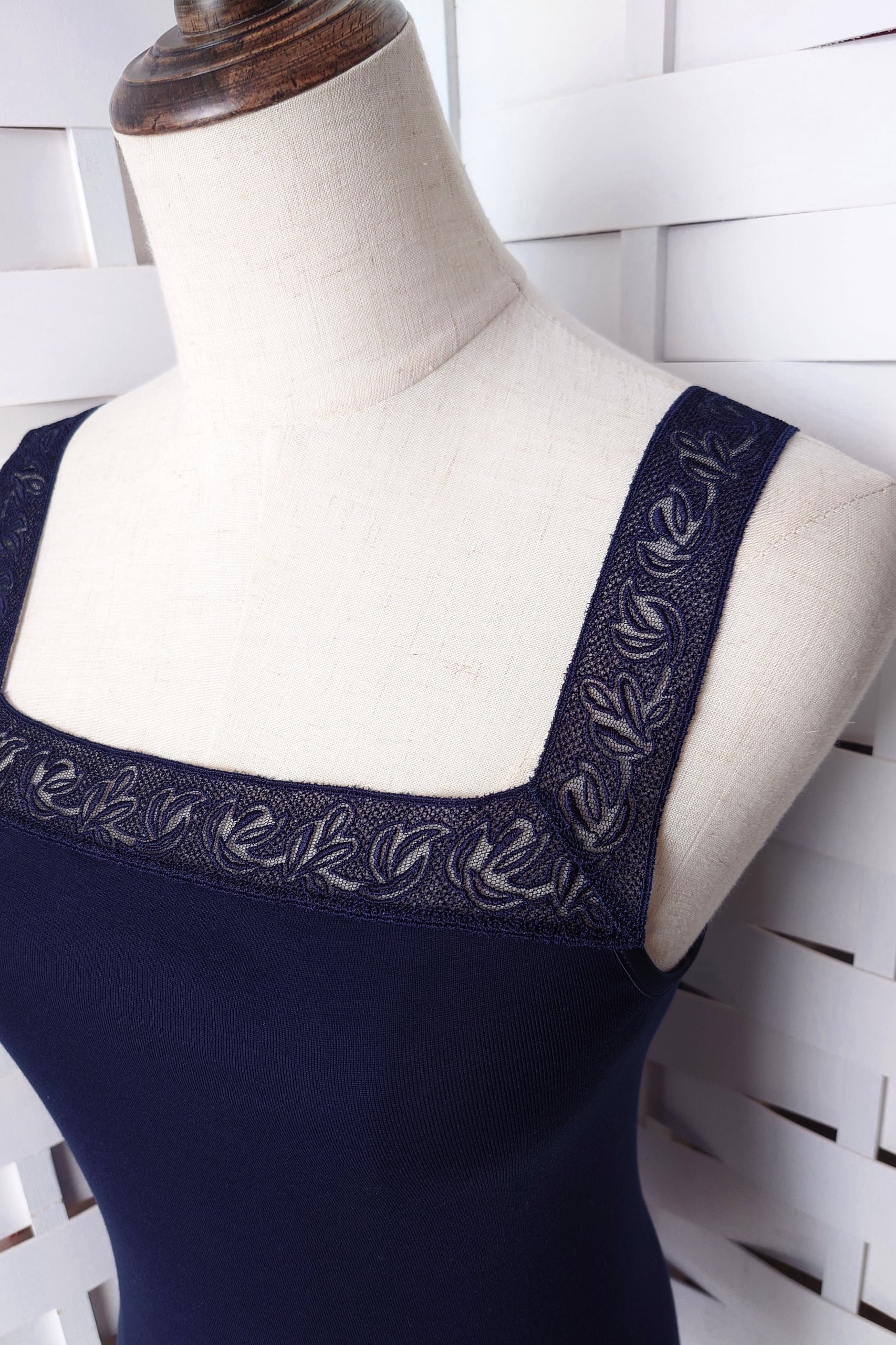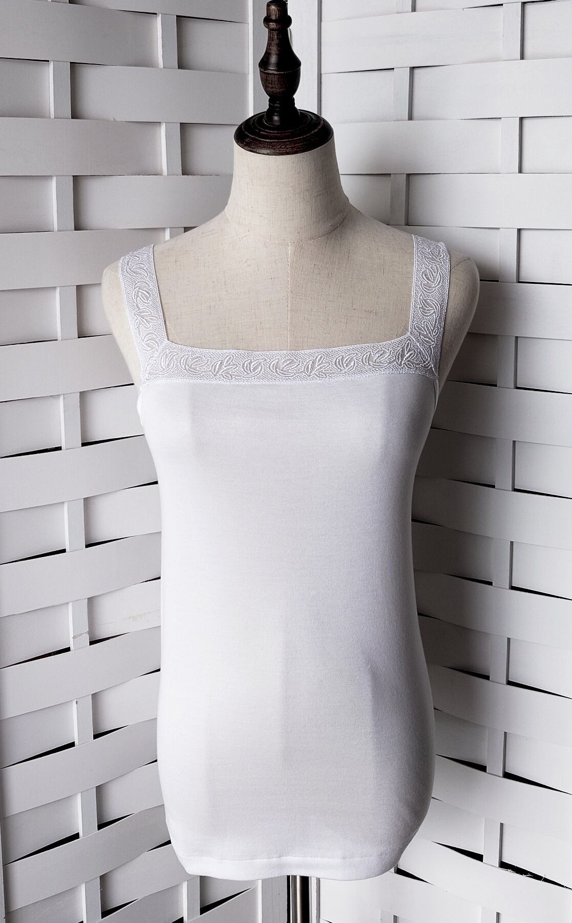 【Oscalito】6610〚Cotton100%〛スクエアネックレースタンクトップ