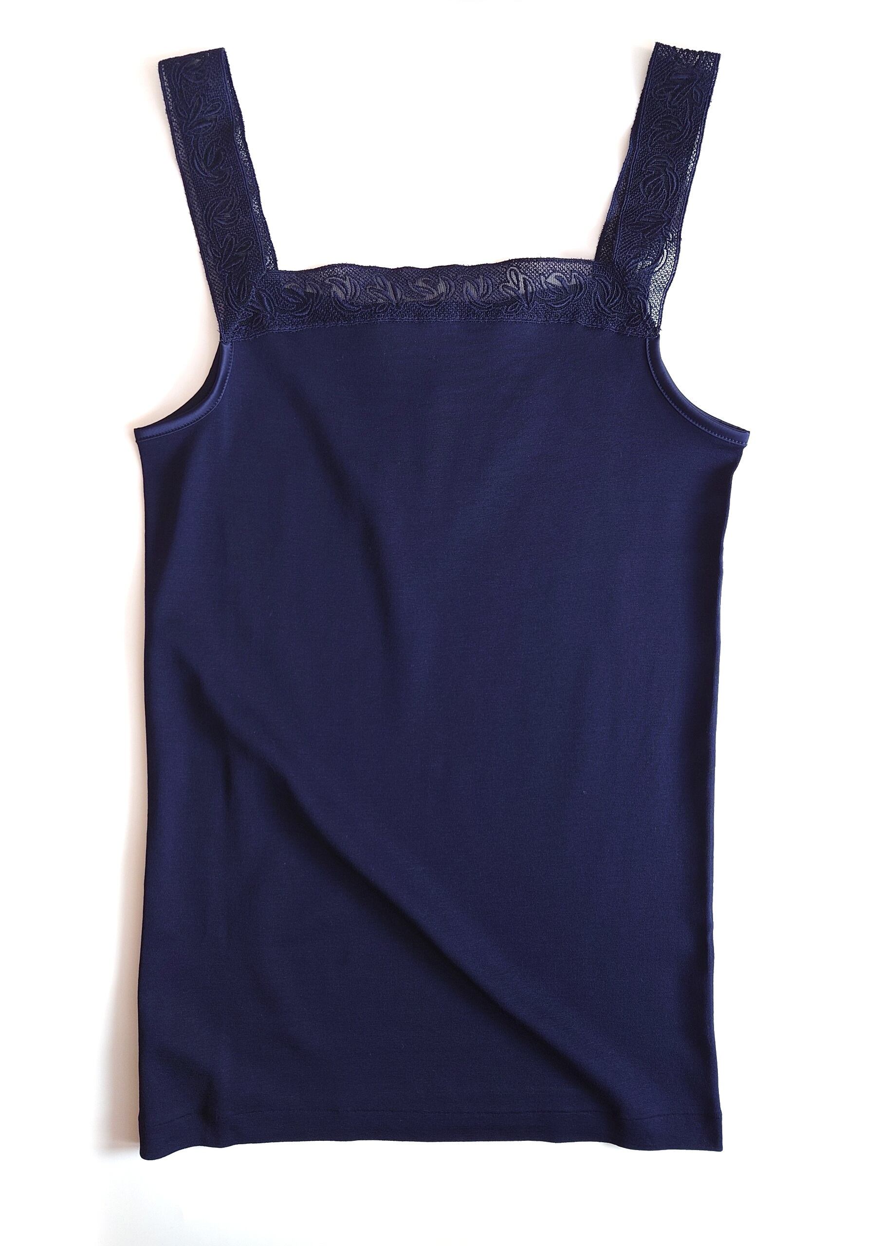 【Oscalito】オスカリートのスクエアネックレースタンクトップです。こちらはコットンの最高品質ブランドFILO SCOZIA(フィロスコツィア) コットン100%使用。