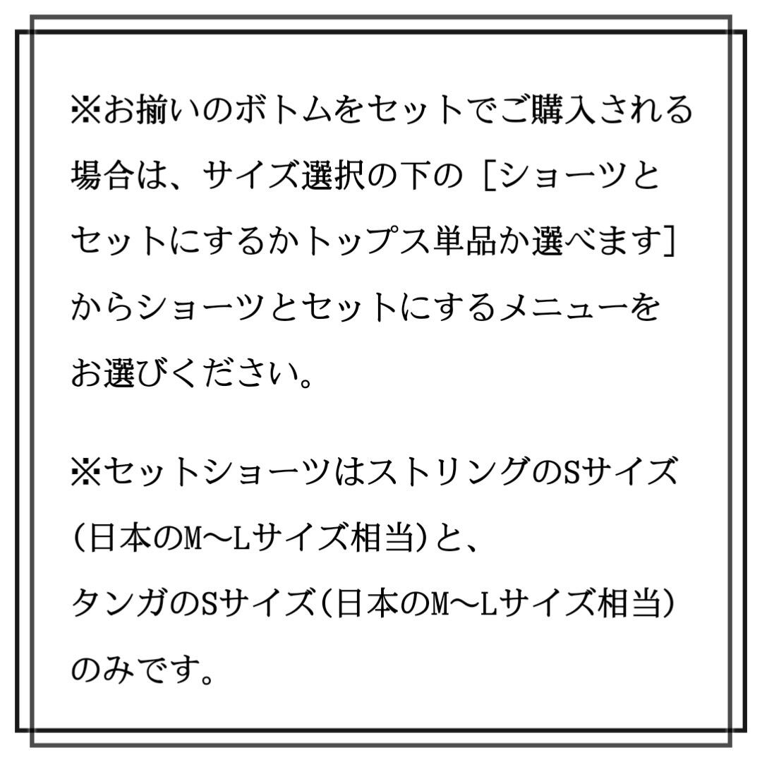 【※お揃いのボトムショーツをセットでご購入される場合は、サイズ選択の下の[ショーツとセットにするかトップス単品か選べます]からショーツとセットにするメニューをお選びください。ショーツセットの価格はストリングセット税込¥30,250/タンガセット税込¥31,460です】