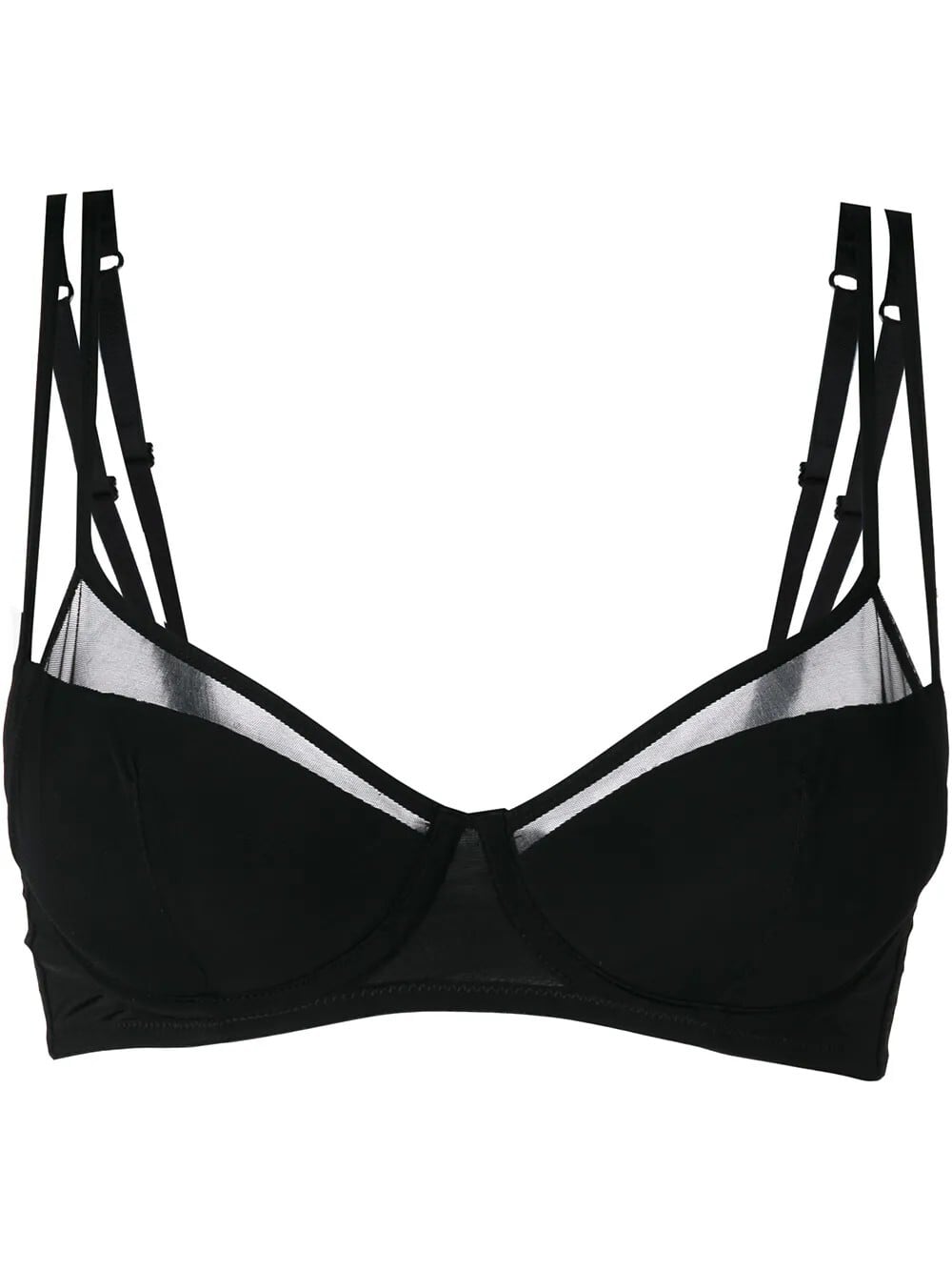 ベーシックな3/4カップにチュールをレイヤードしたシンプルでアーバンなデザイン。