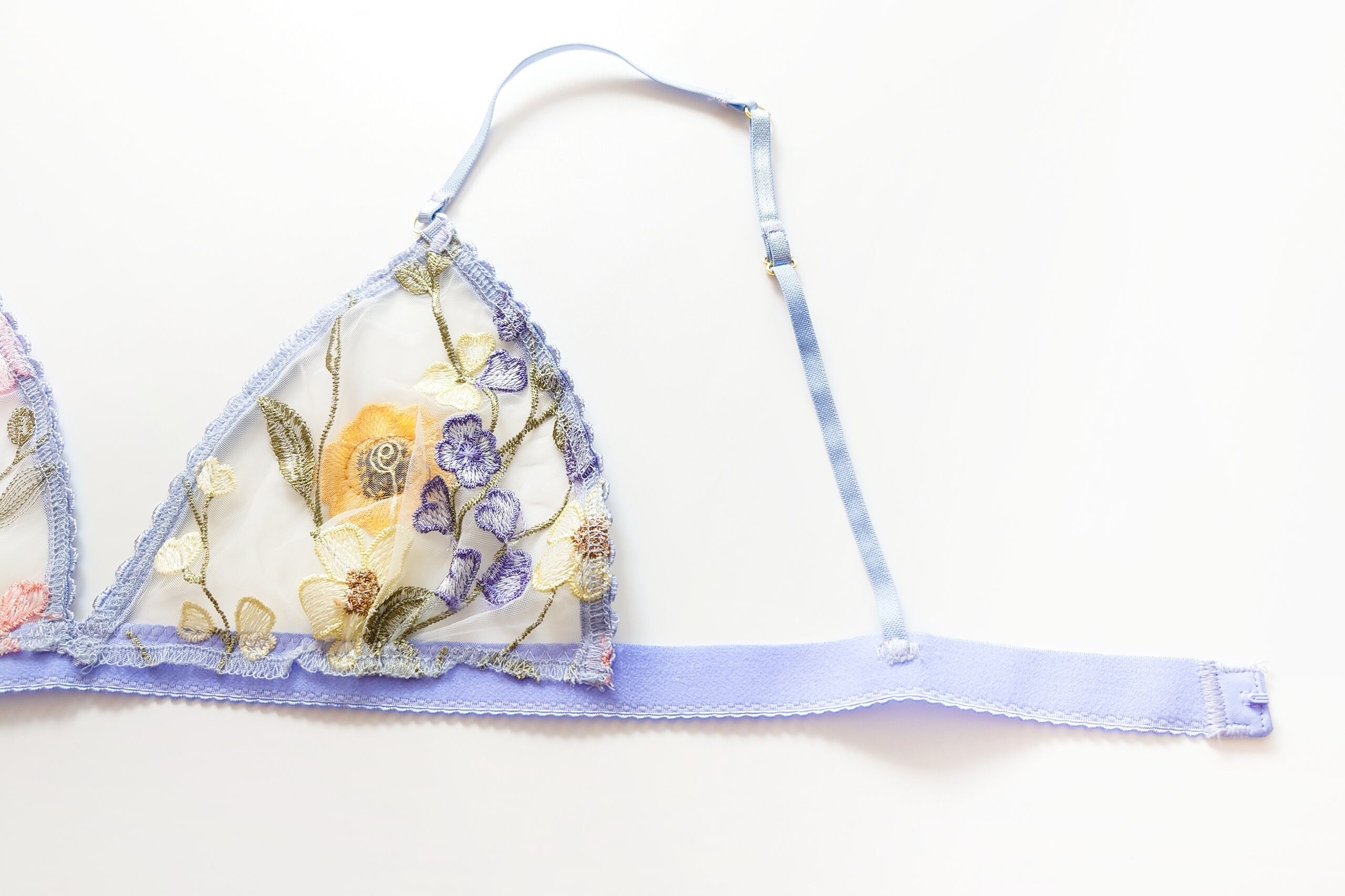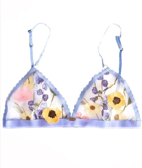チュールの刺繍の上に立体刺繍のアップリケが付いた一枚レースブラレット。