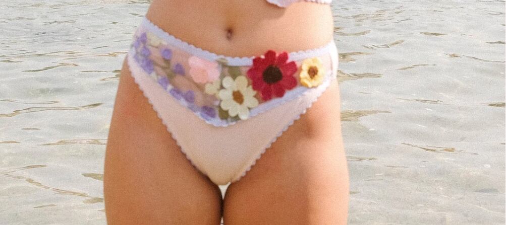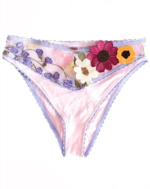 【※セットショーツのサイズはS(日本のMサイズ相当)のみ。フルバックタイプで身頃生地はベビーピンク、ウエスト左部分に立体刺繍が3つ付いております。クロッチ有り】