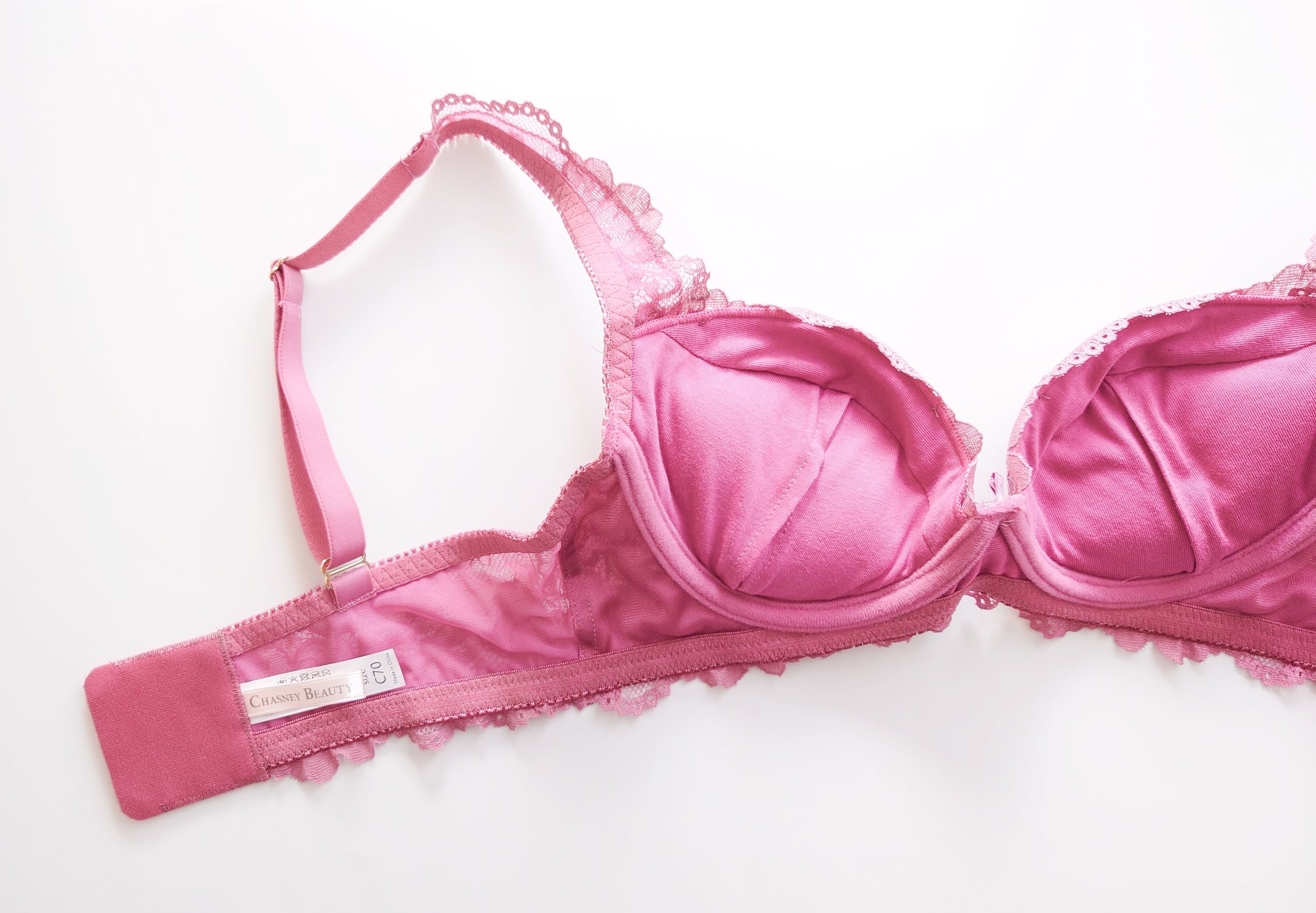伸縮しない生地をストラップの内側とカップの中に仕込んであるので、集めたお胸を逃がさずホールドします。