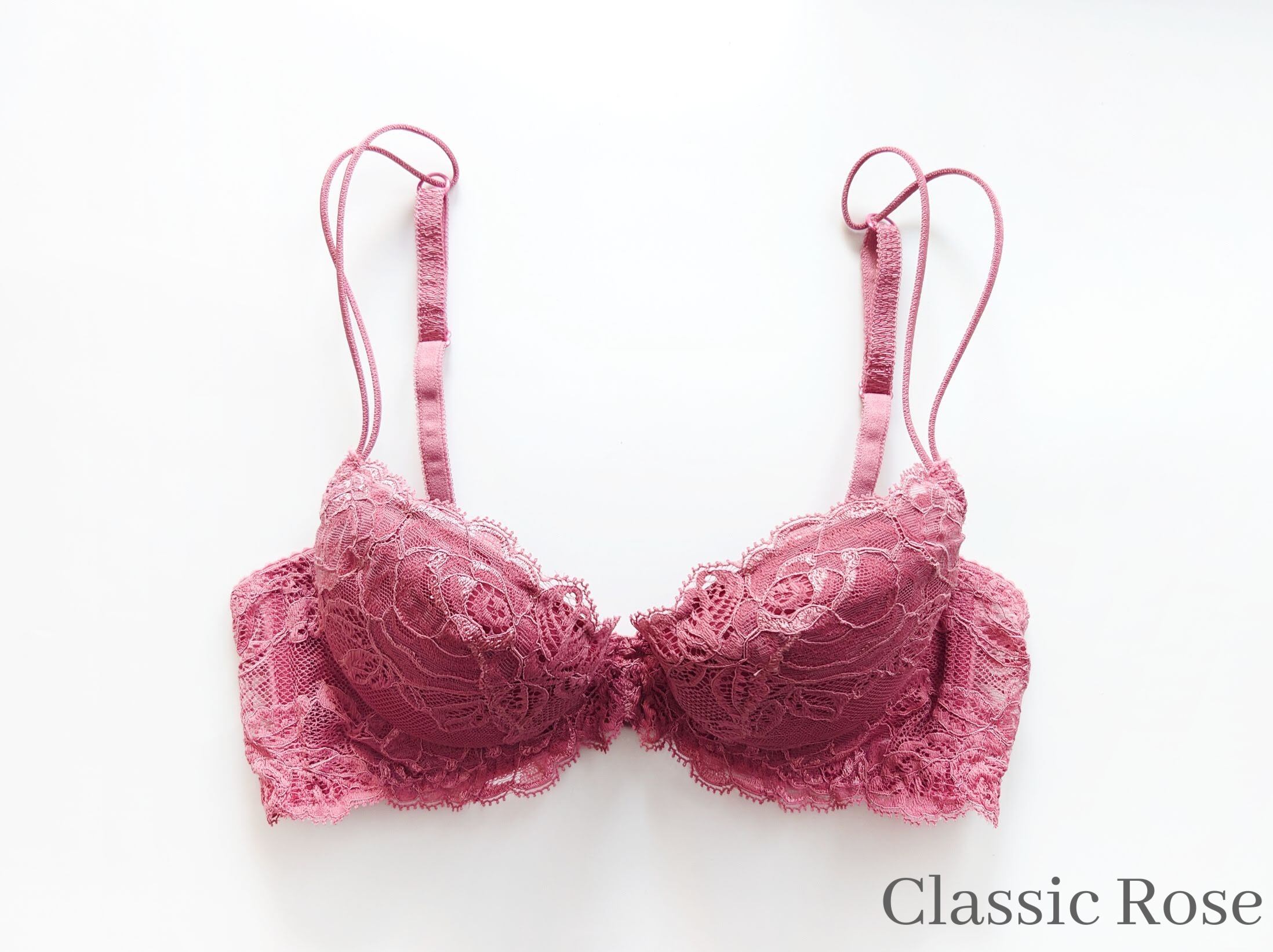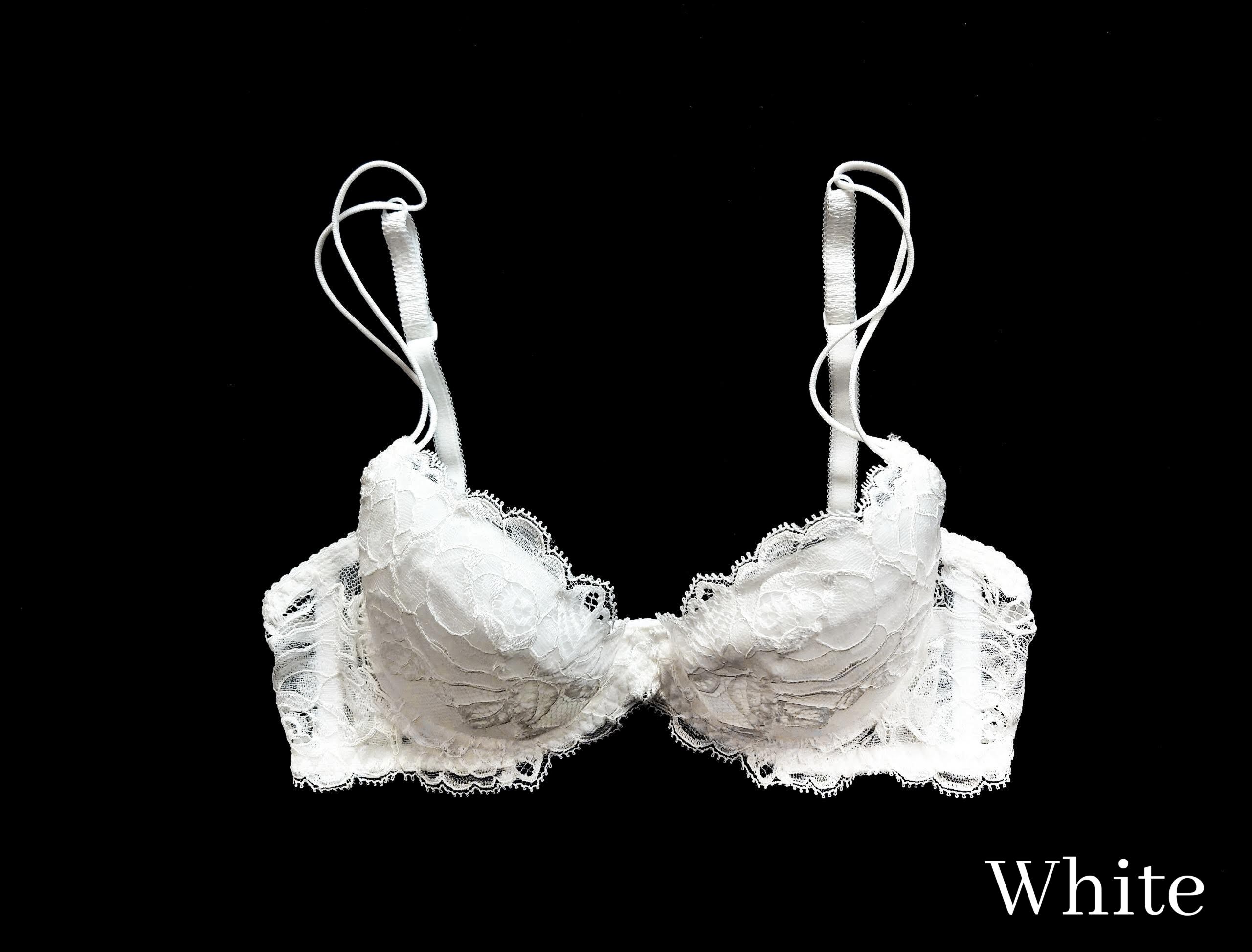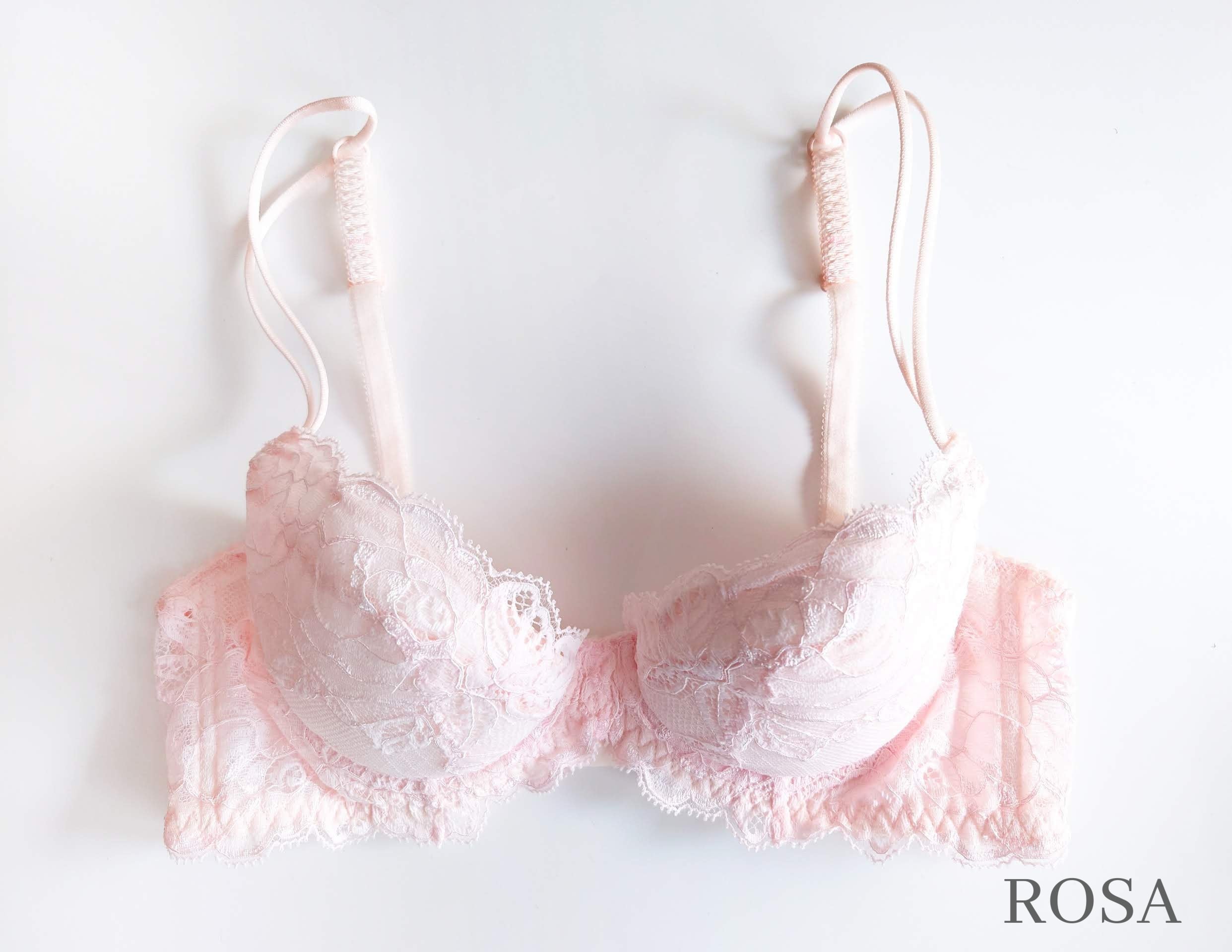 繊細な極上レースとスパゲティストラップが瀟洒で美しく、着心地も楽なのに、特別なフィッティングを施さなくても何故か綺麗に仕上がる魔法のようなブラ。