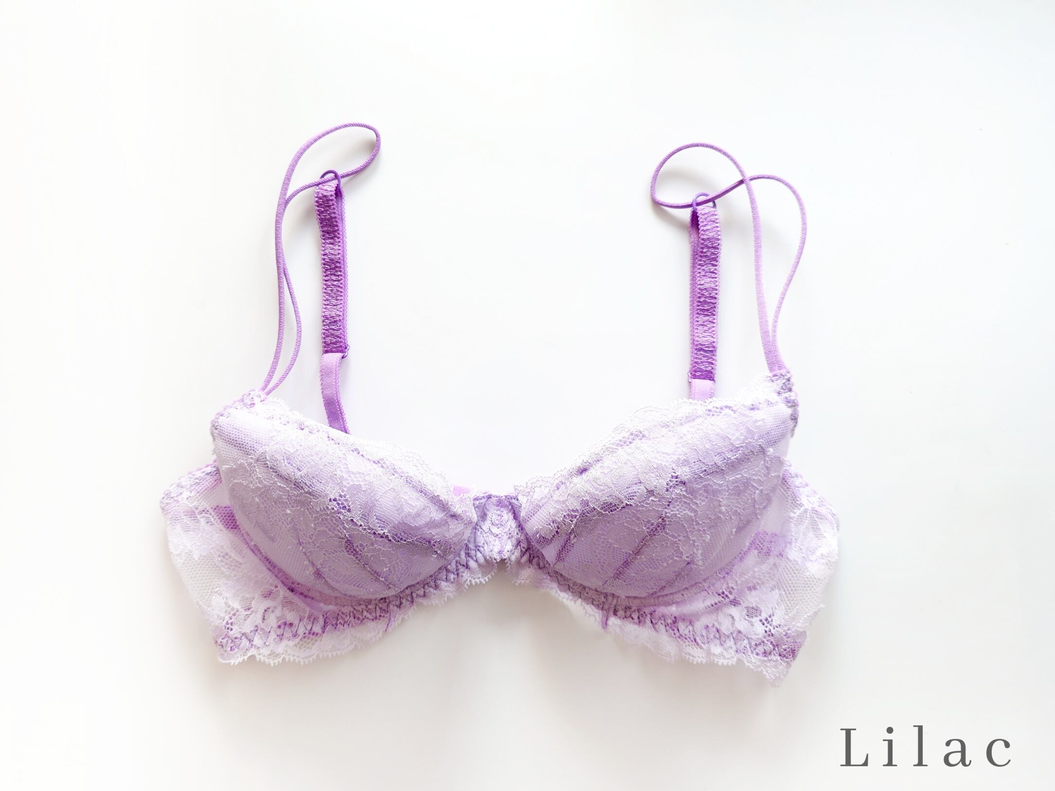 繊細な極上レースとスパゲティストラップが瀟洒で美しく、着心地も楽なのに、特別なフィッティングを施さなくても何故か綺麗に仕上がる魔法のようなブラ。