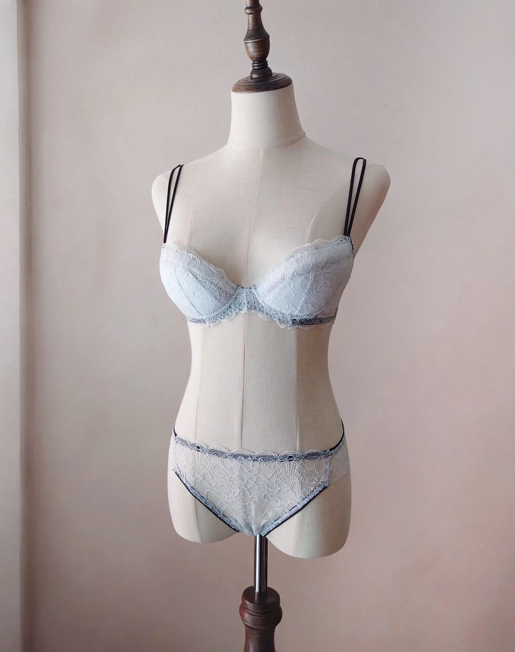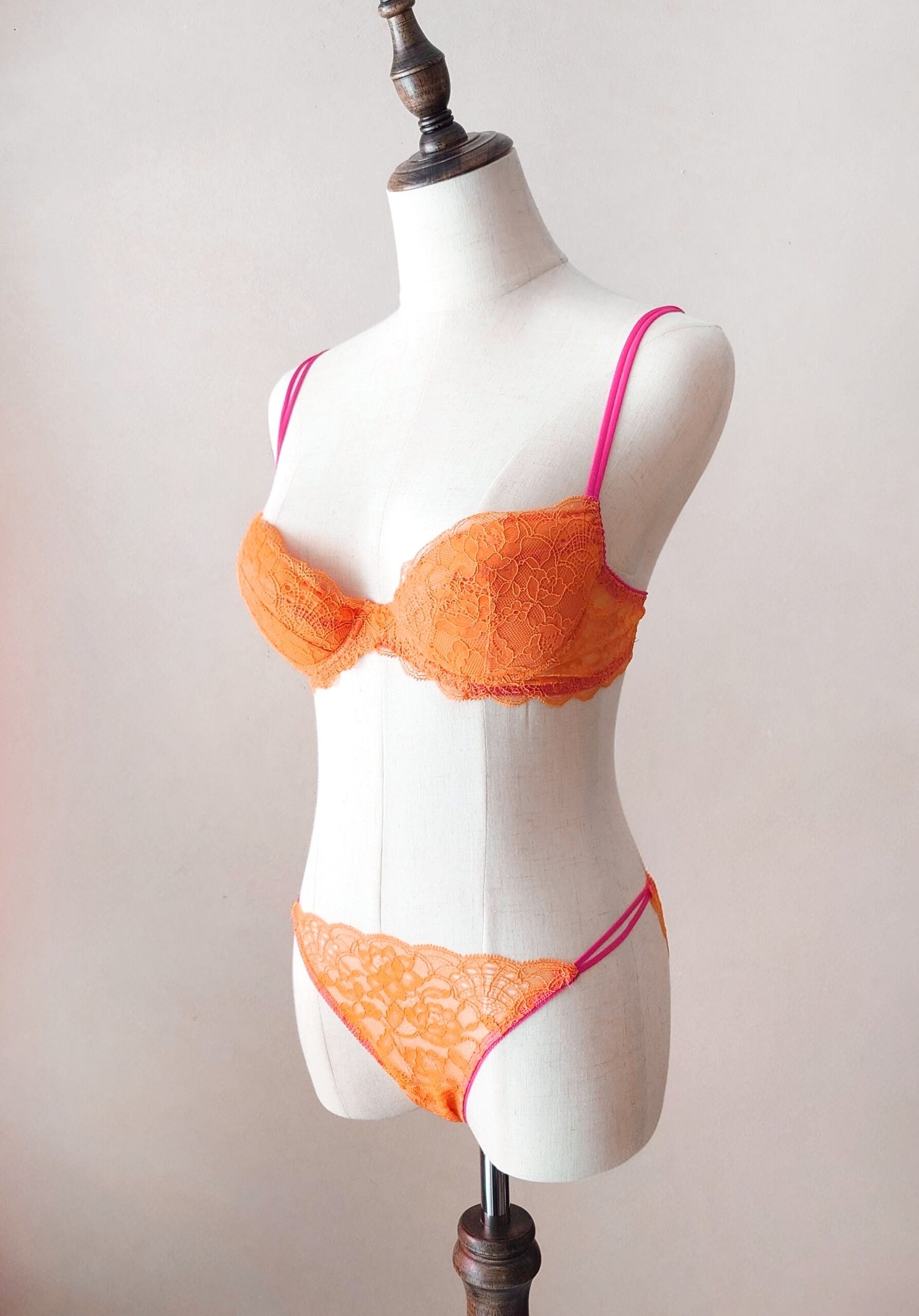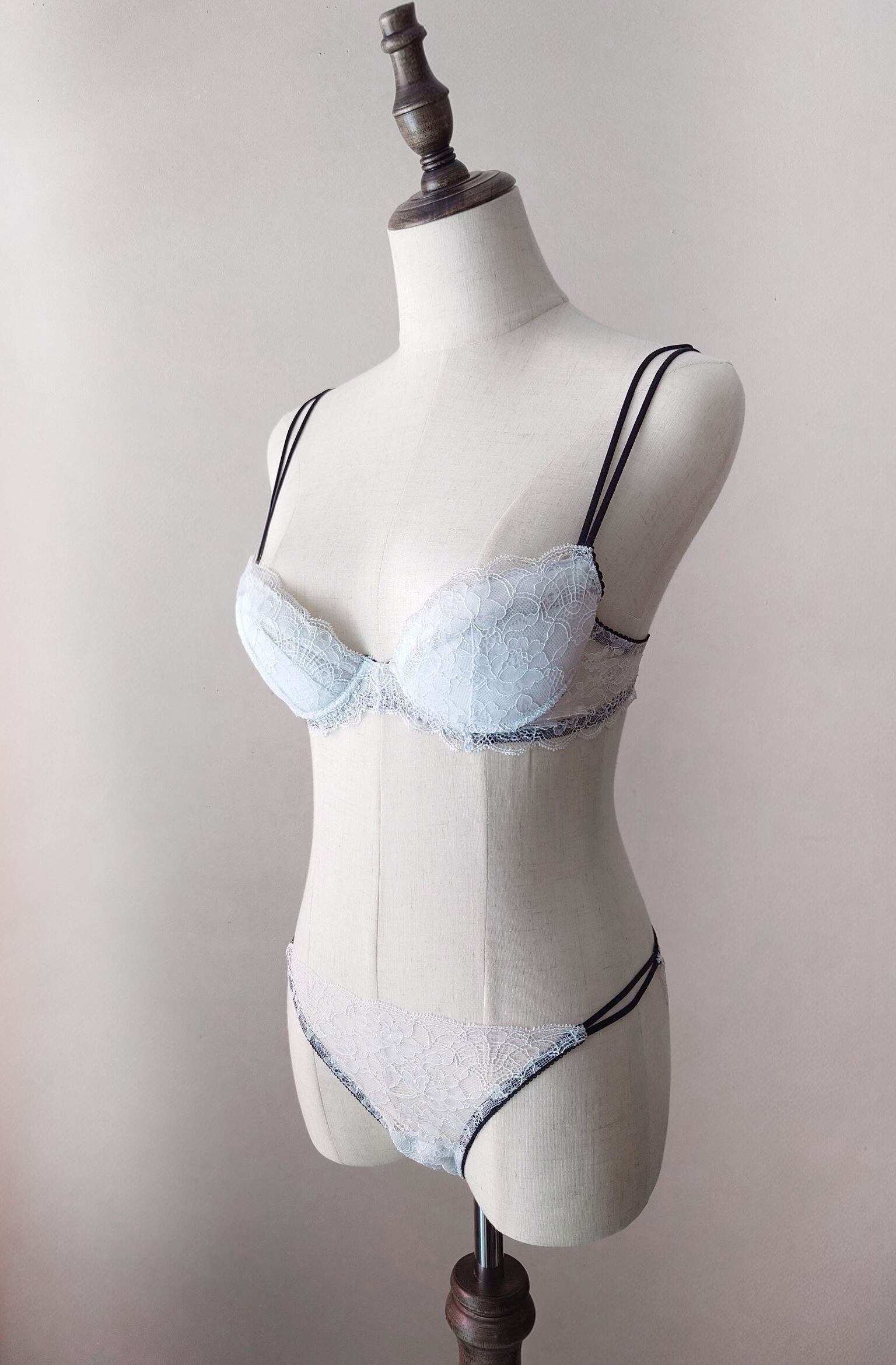 繊細な極上レースとスパゲティストラップが瀟洒で美しく、着心地も楽なのに、特別なフィッティングを施さなくても何故か綺麗に仕上がる魔法のようなブラ。