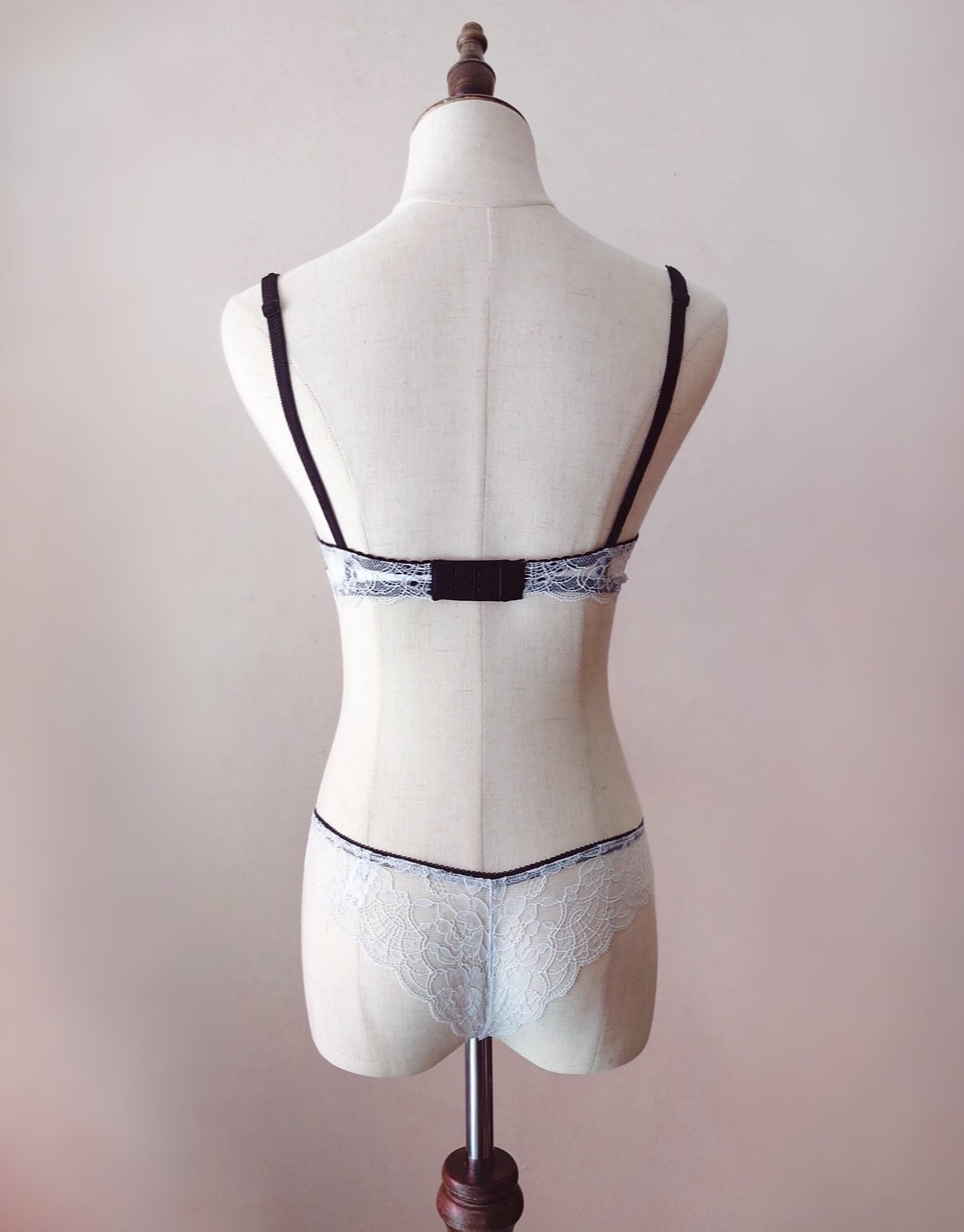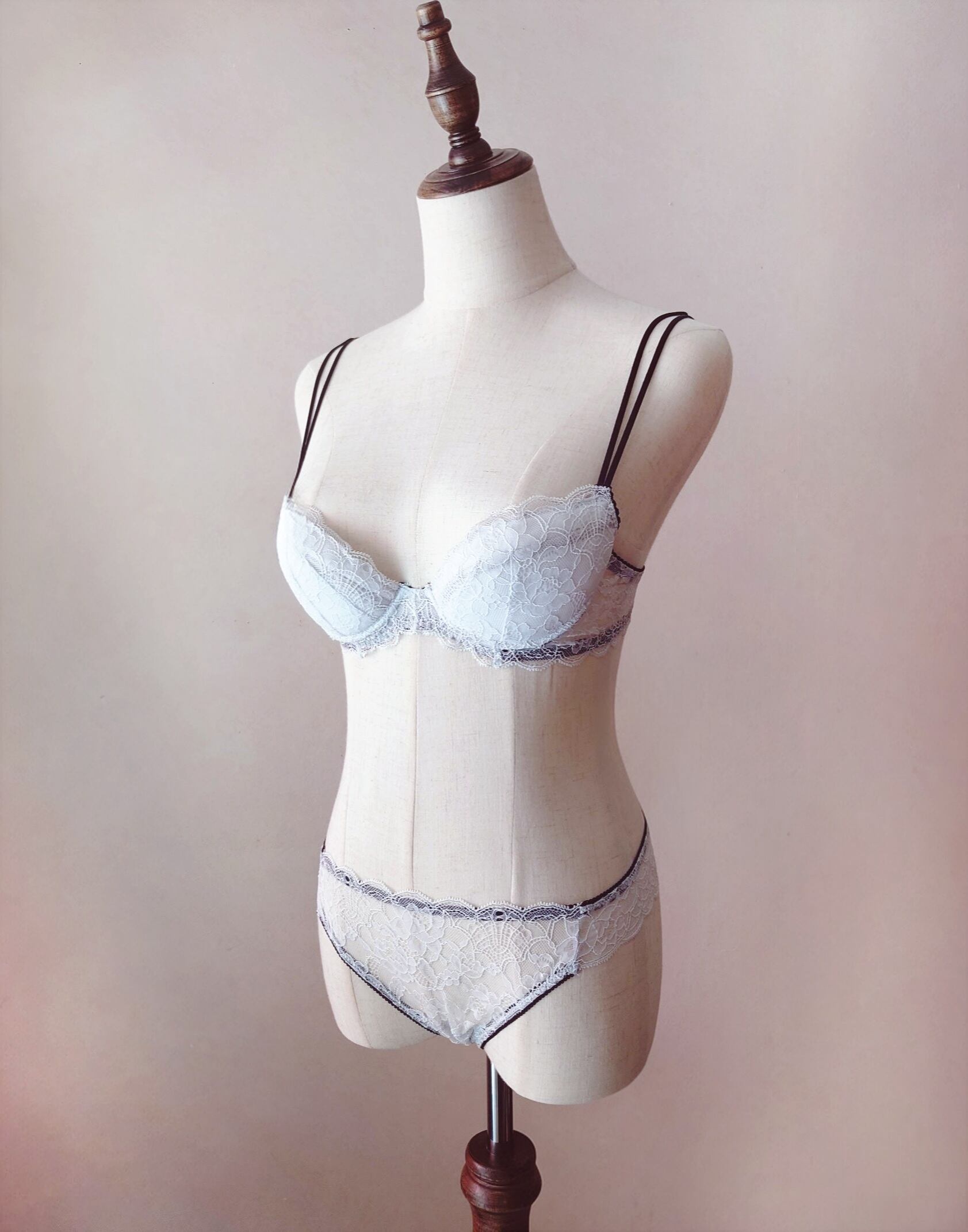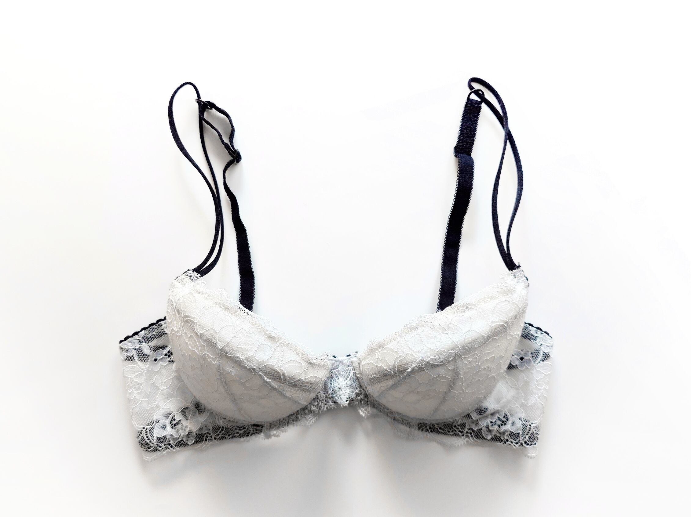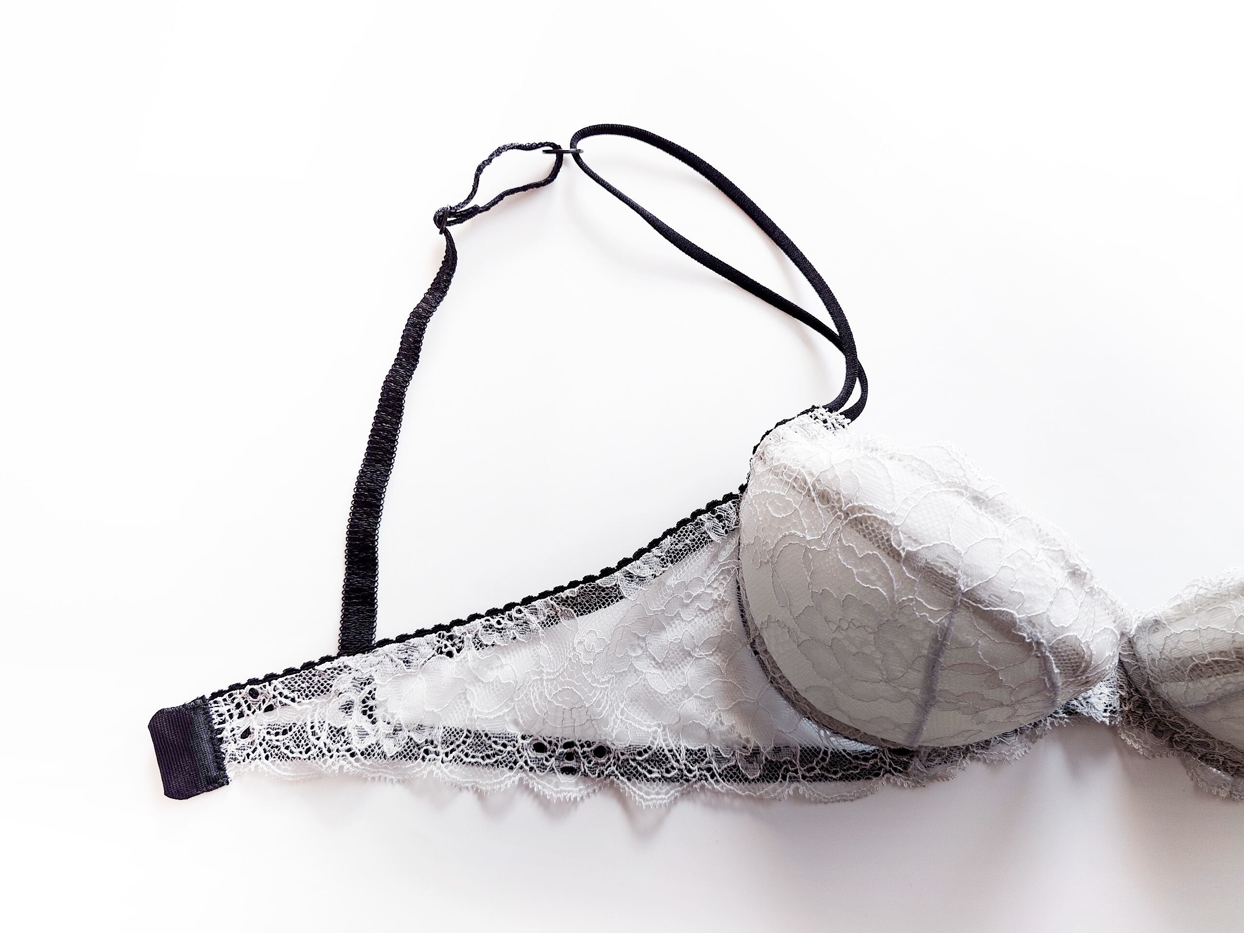 繊細な極上レースとスパゲティストラップが瀟洒で美しく、着心地も楽なのに、特別なフィッティングを施さなくても何故か綺麗に仕上がる魔法のようなブラ。