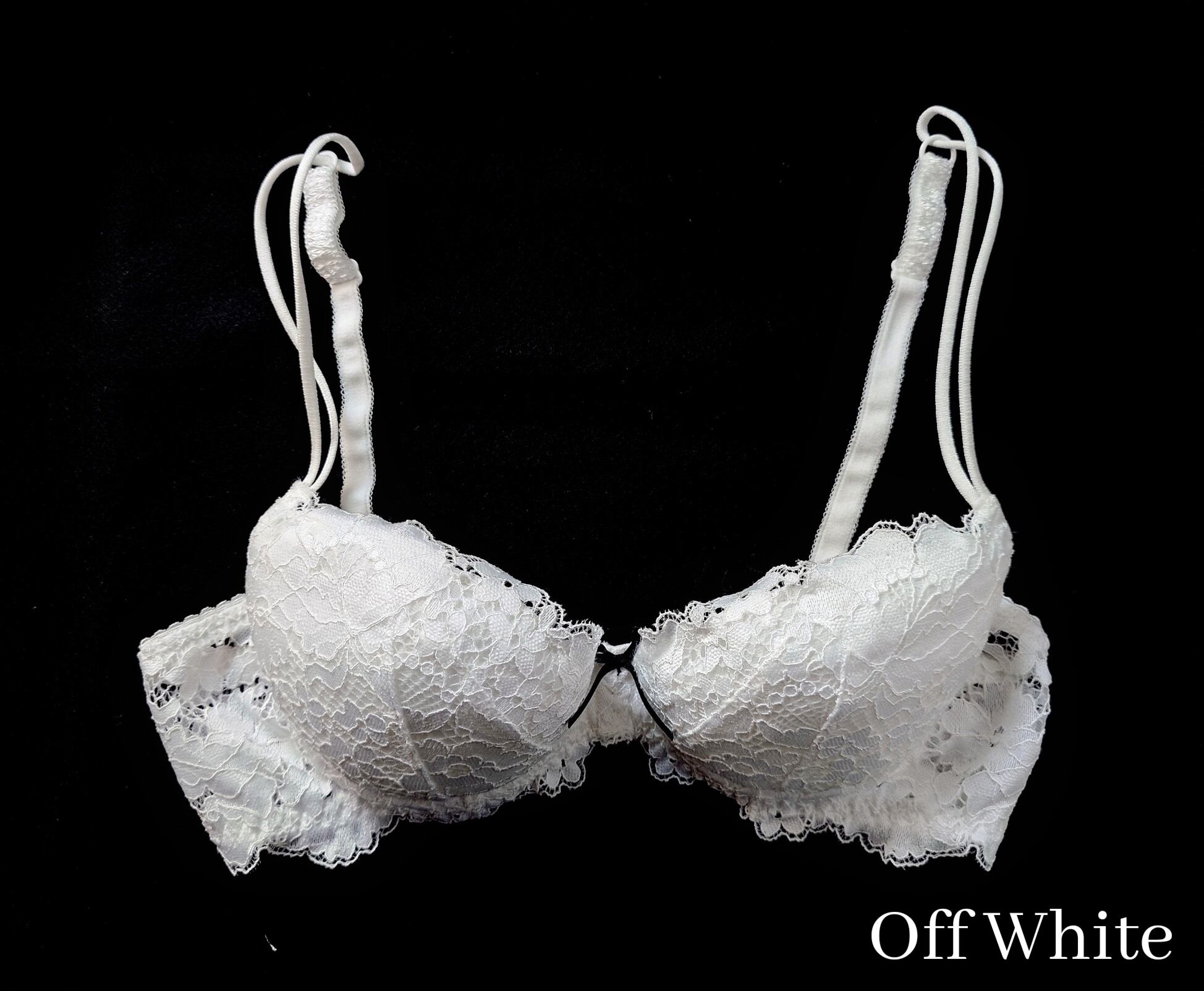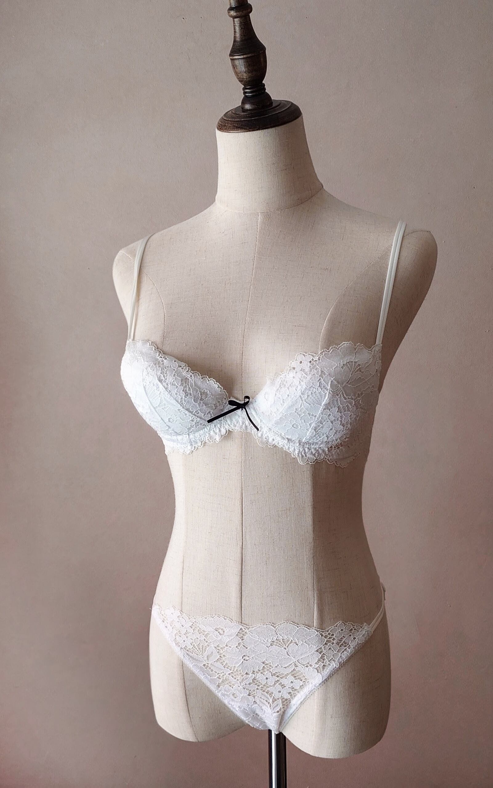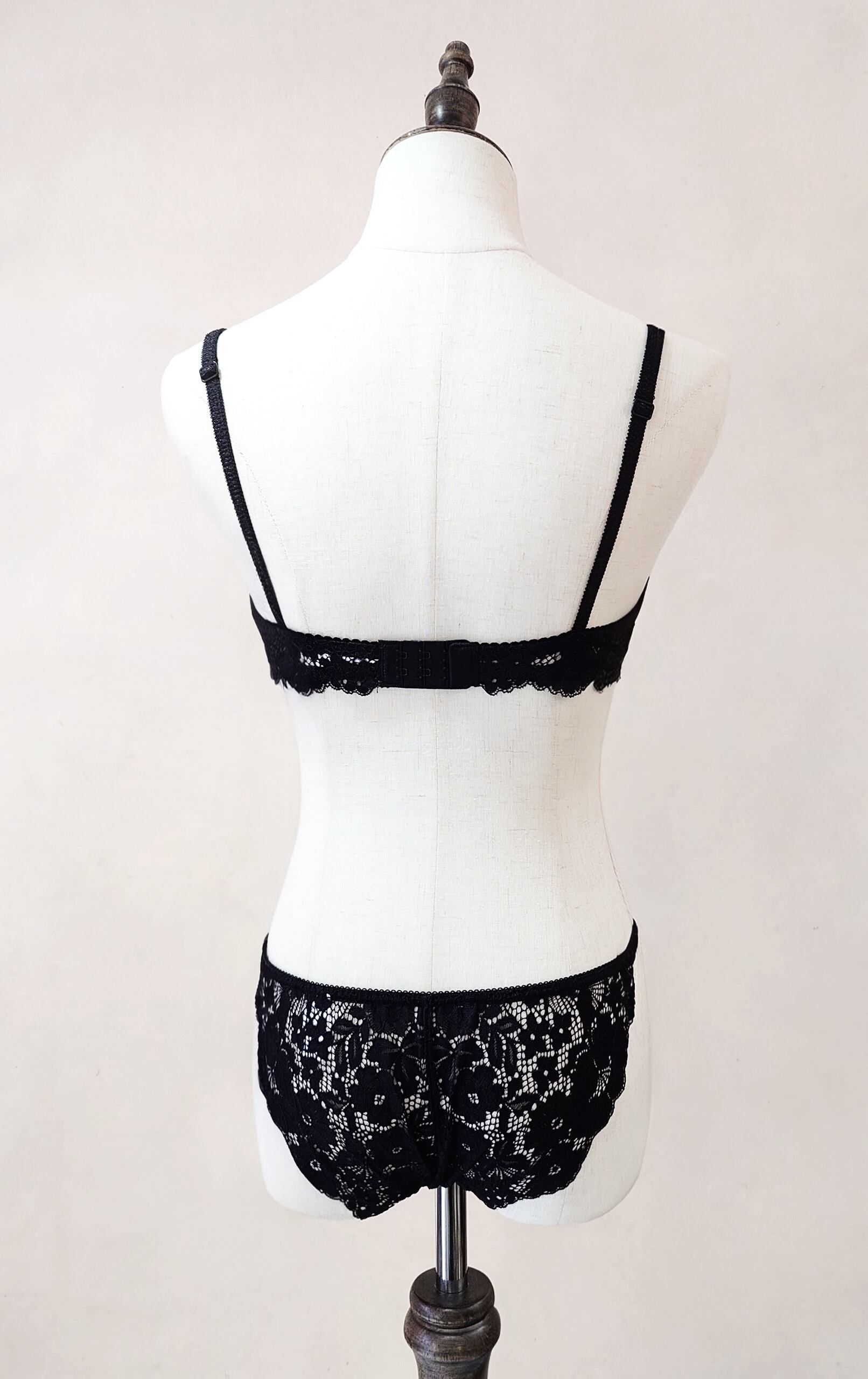 繊細な極上レースとスパゲティストラップが瀟洒で美しく、着心地も楽なのに、特別なフィッティングを施さなくても何故か綺麗に仕上がる魔法のようなブラ。