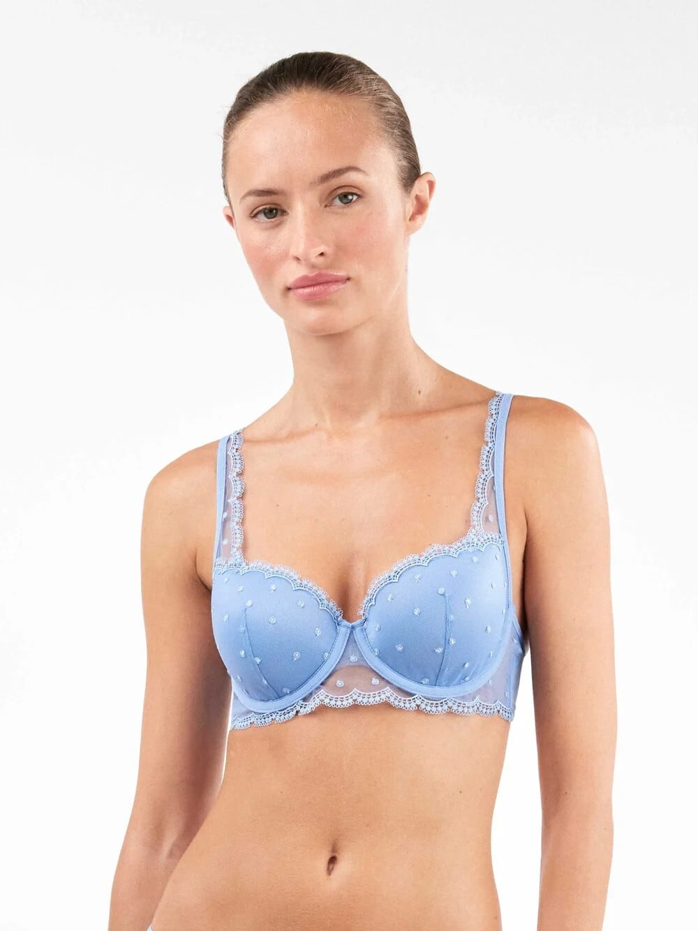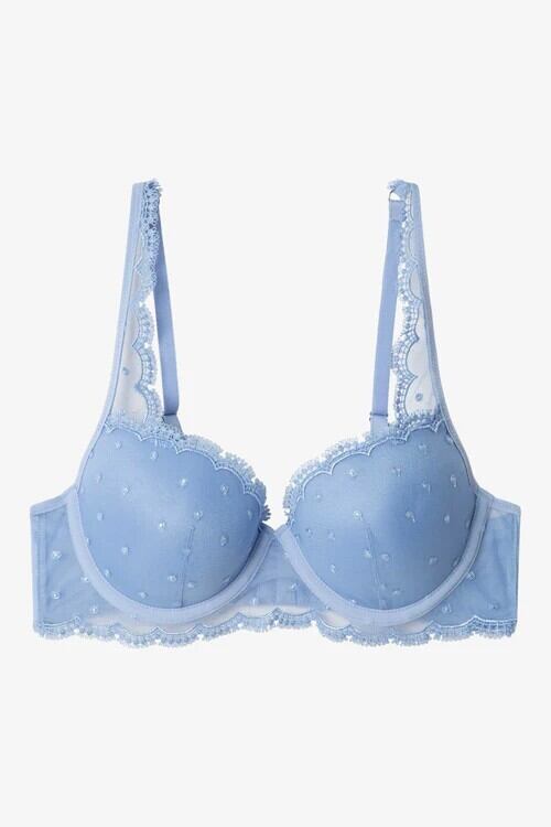 カップは深めのフルカップ。機械でプレスして丸く成型するモールドブラ。