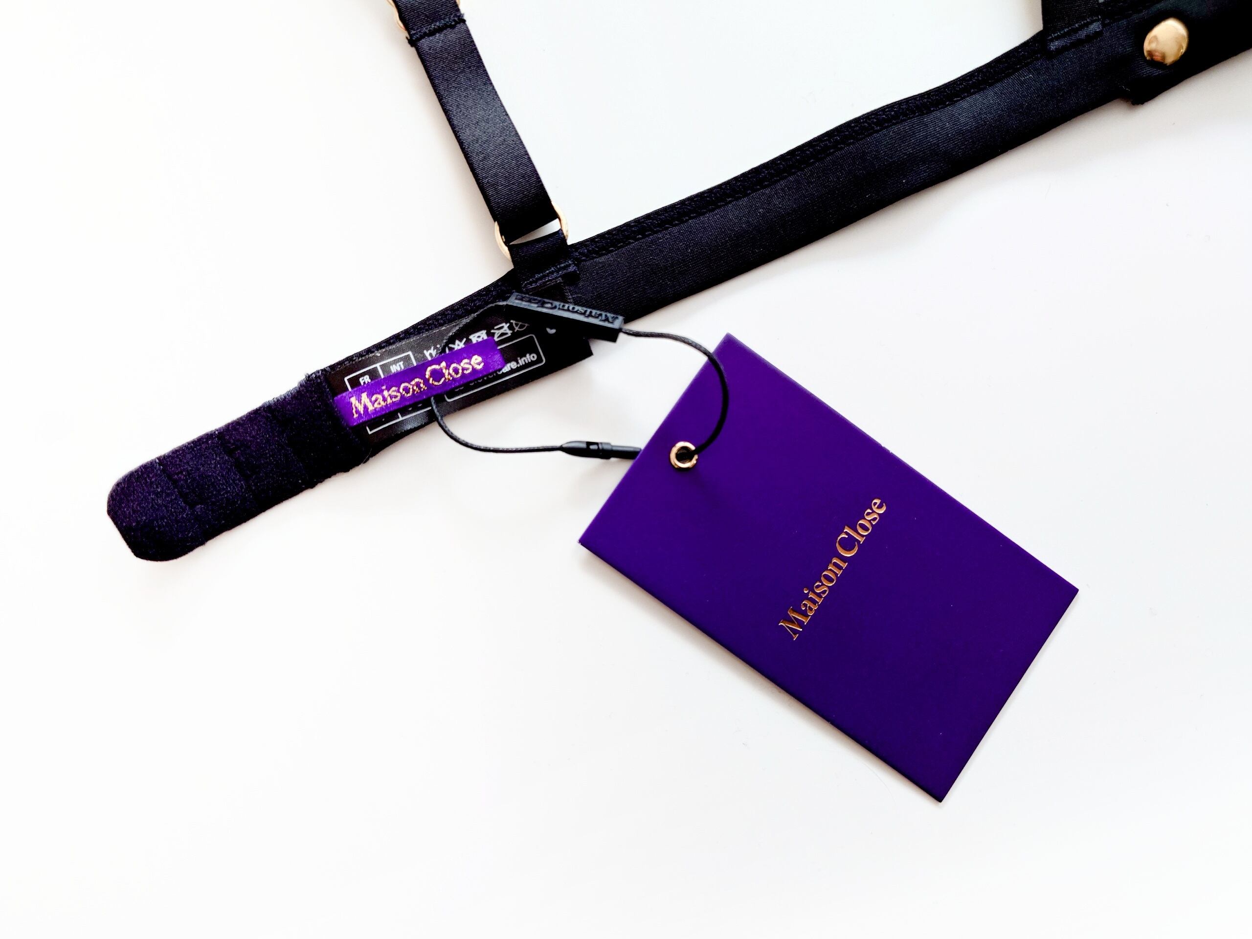 レースの甘さとハードなベルトデザインの対比にメゾンクローズらしい遊び心を感じられます。