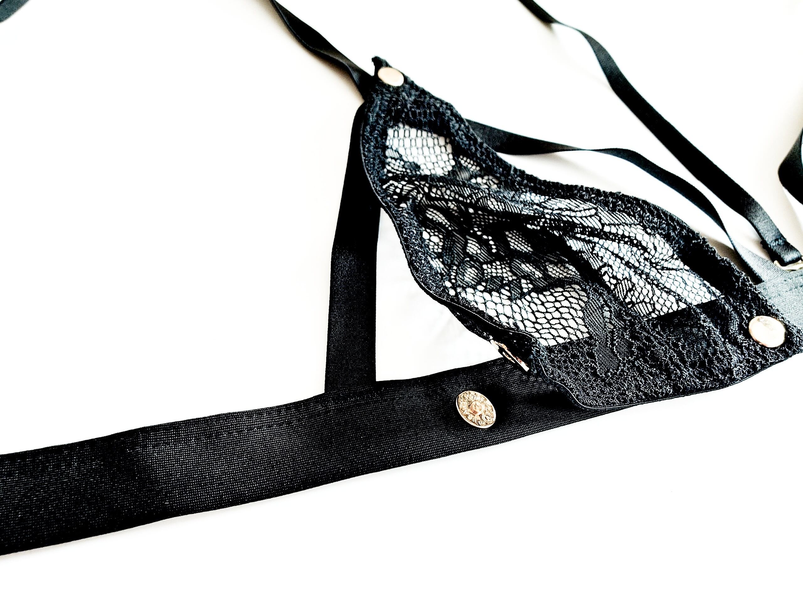 ハーネス部分とレースのトライアングル部分は取り外しも可能です。