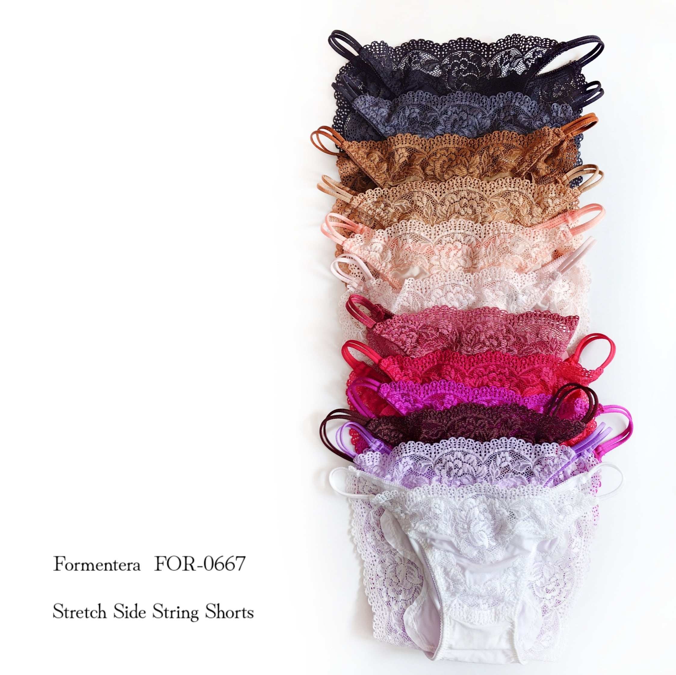 ベーシックシリーズFOR-0911やFOR-0880のシリーズと近いカラー展開で、こちらは素材違いの単品ショーツ・タンガのシリーズです。