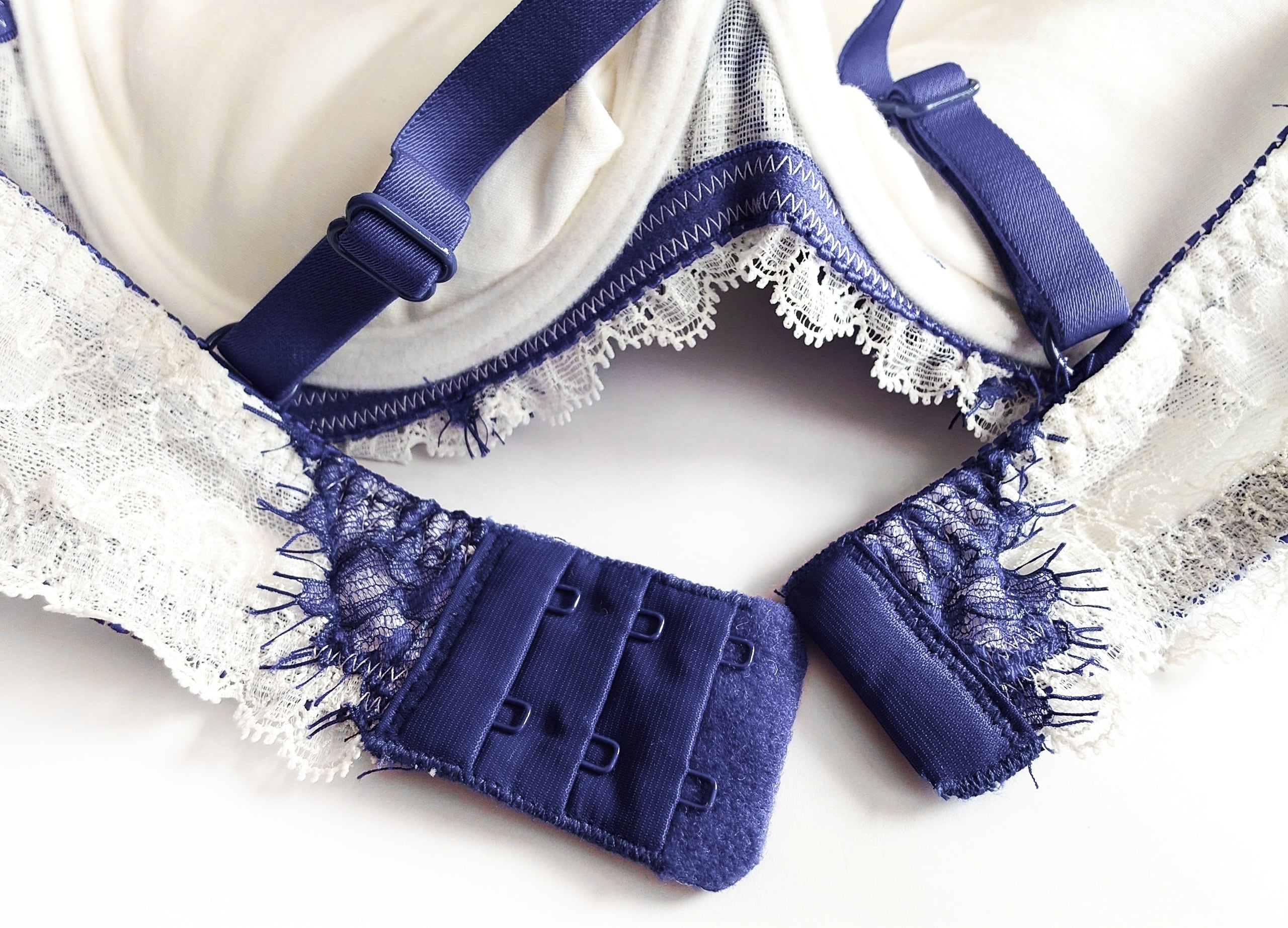 ネイビー/アイボリーは白レースの上に鮮やかなネイビーブルーのレースを重ねてあります。