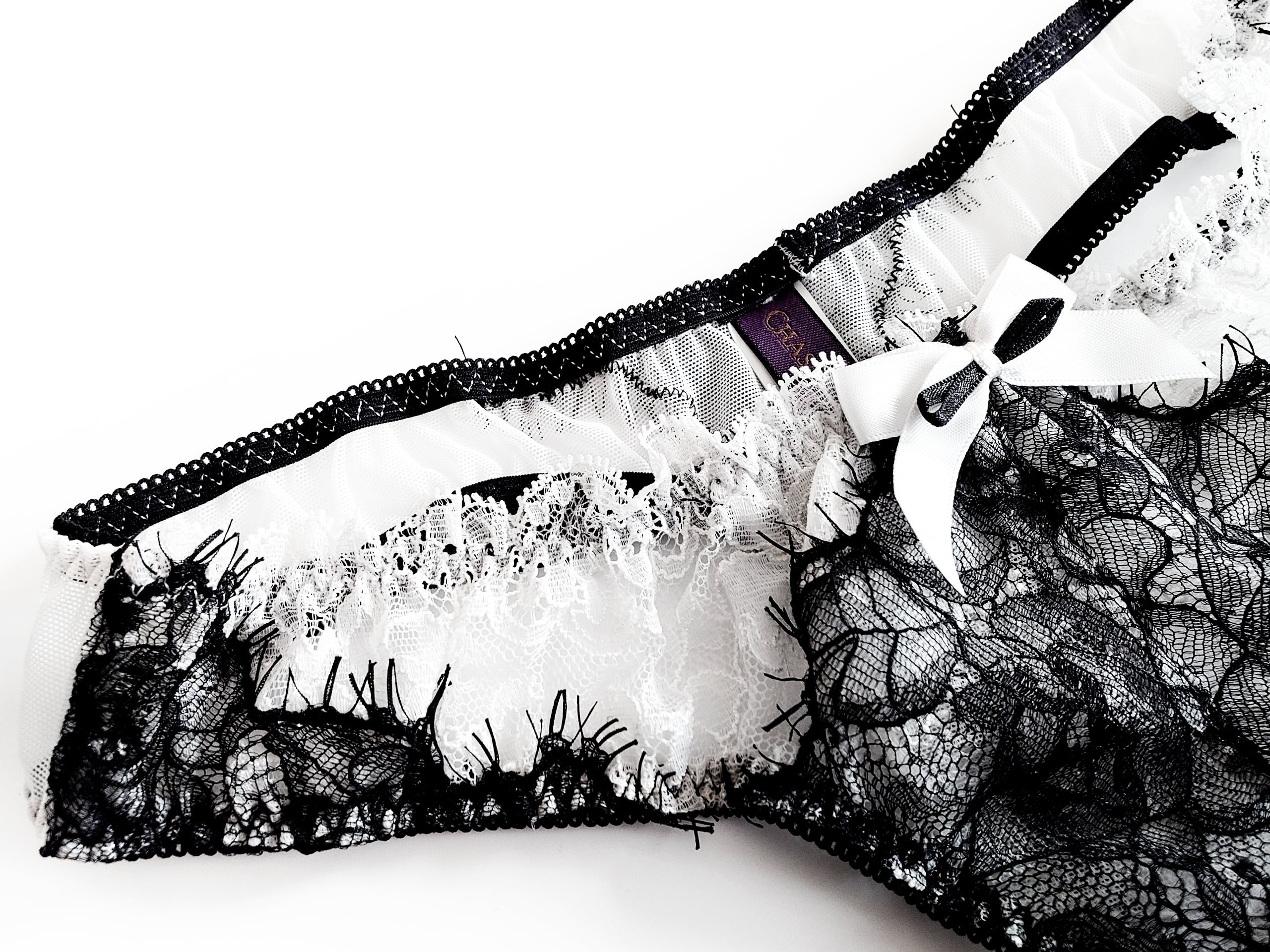 ブラック/アイボリーは白レースの上にブラックのレースを重ねてあります。