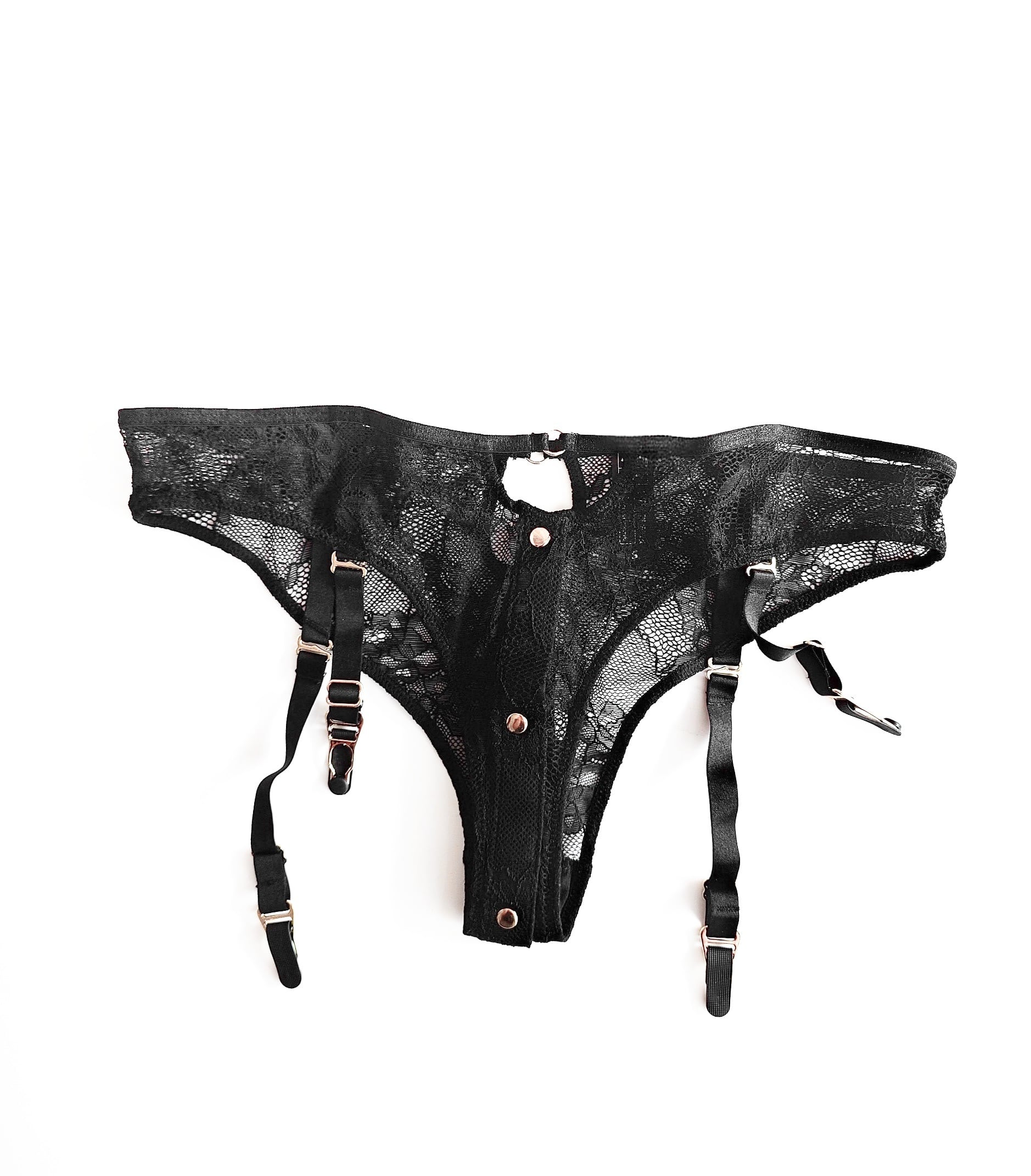 ゴールドのマグネットボタンで開閉可能なクロッチ部分がオープンいたします。