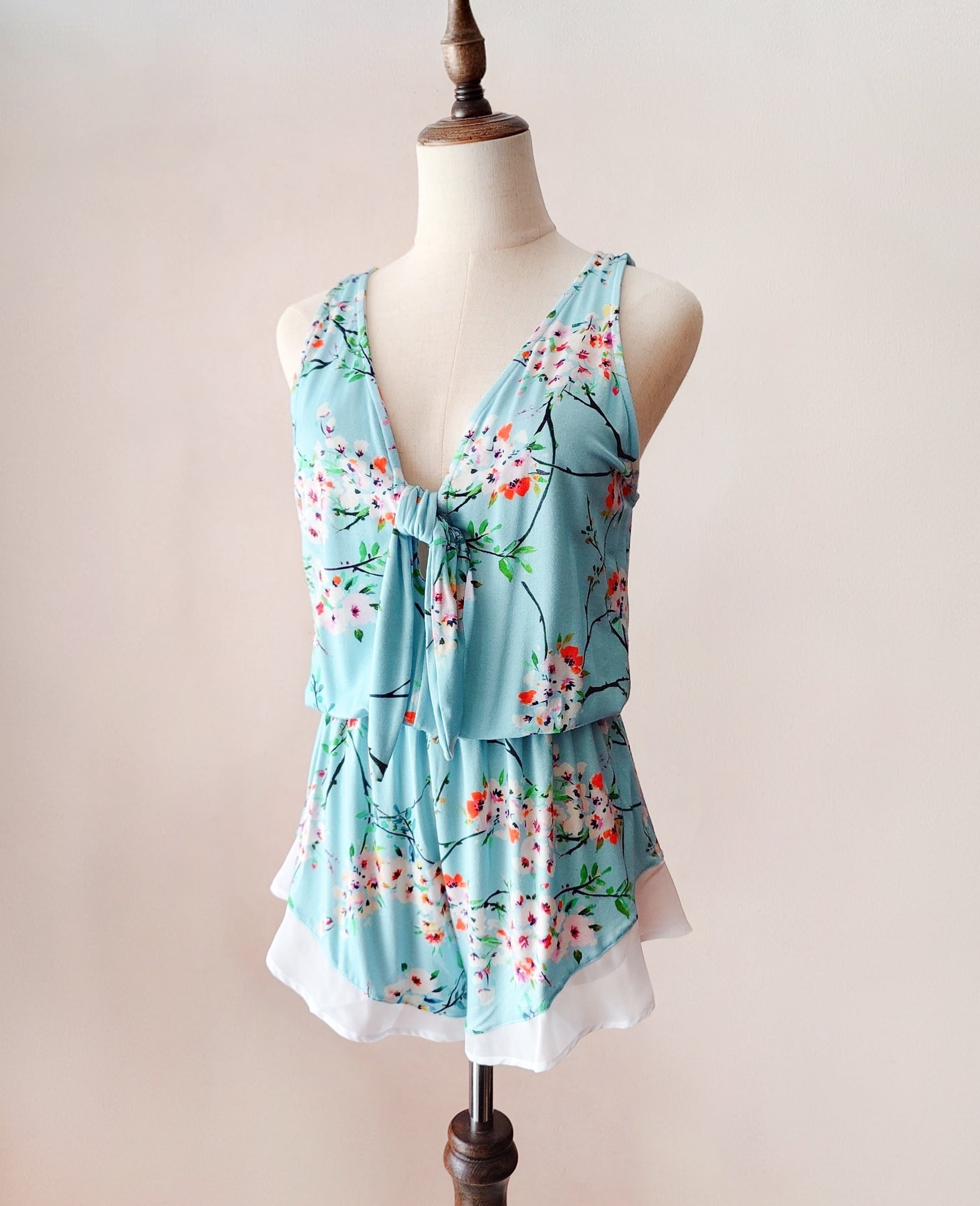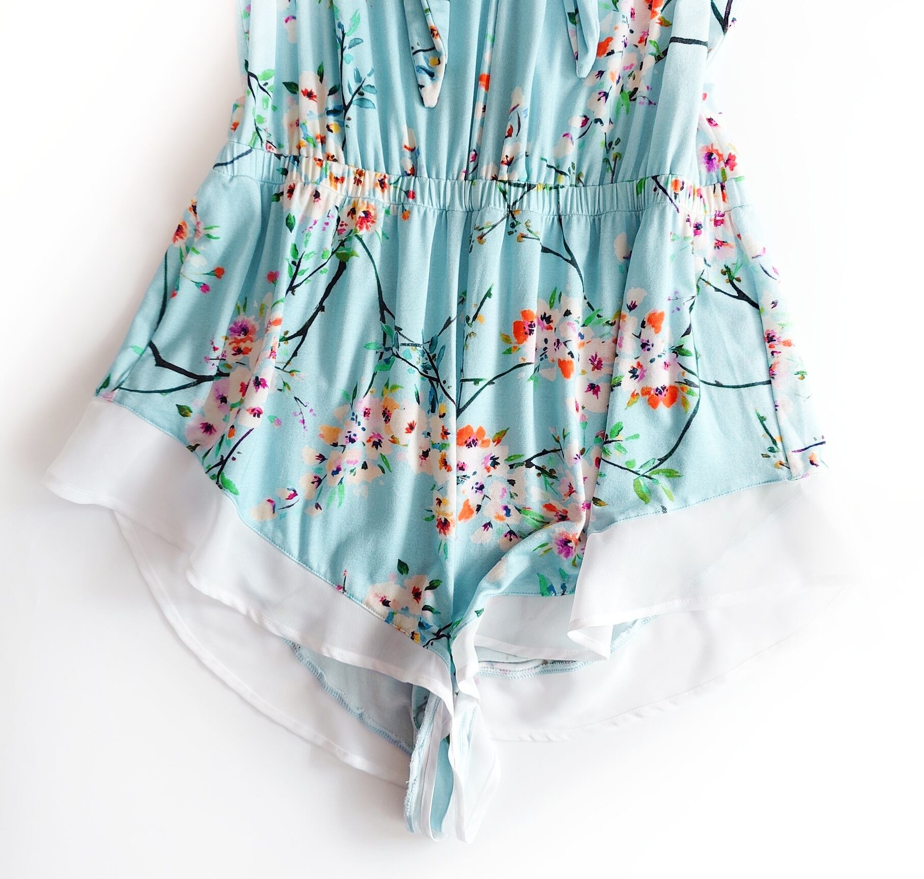 生地はてろんと落ち感のあるレーヨン、裾にはホワイトのシフォンジョーゼット