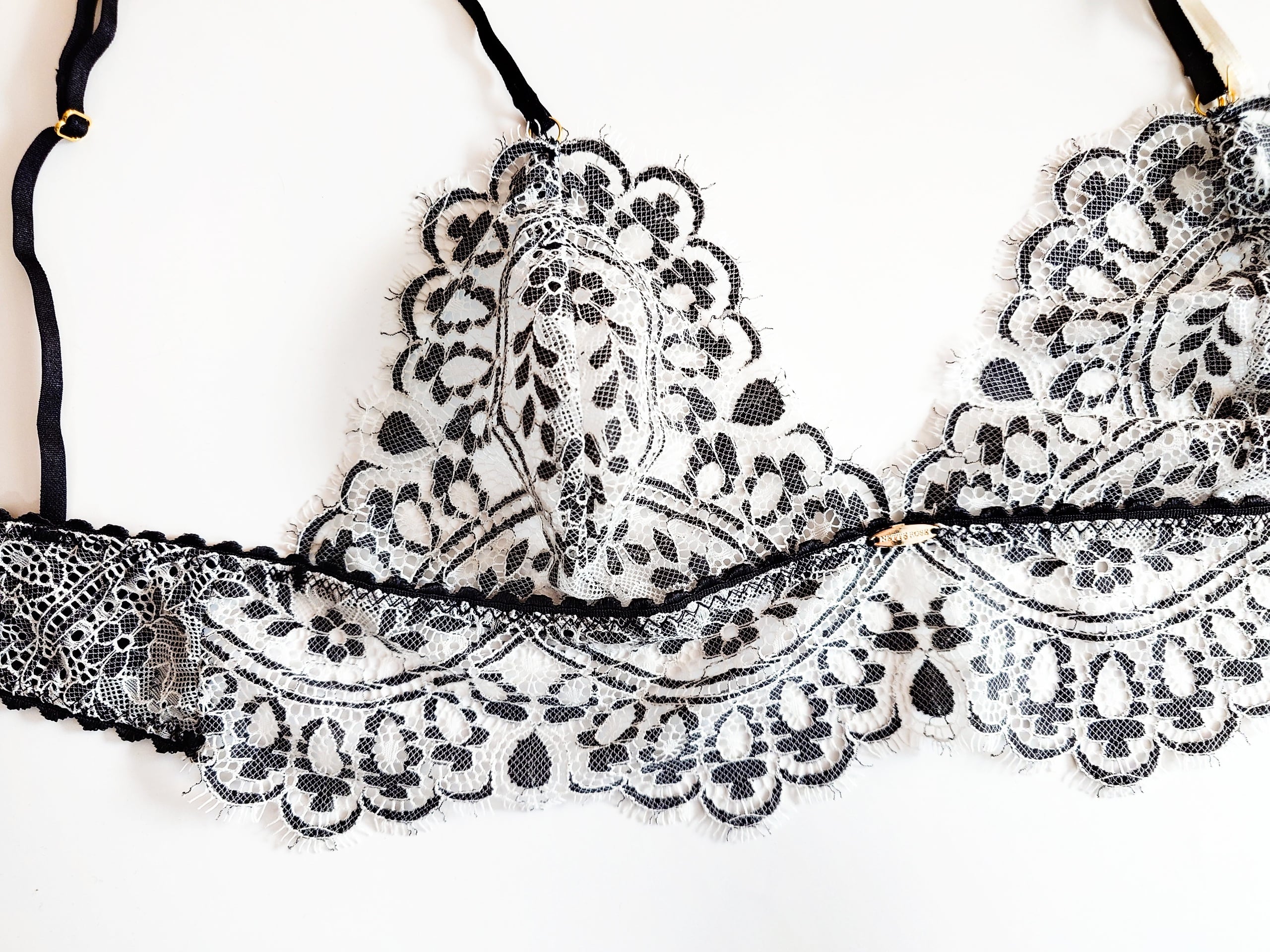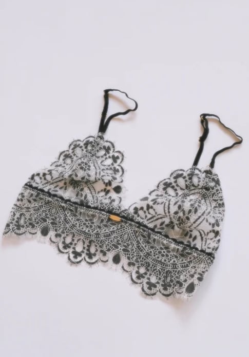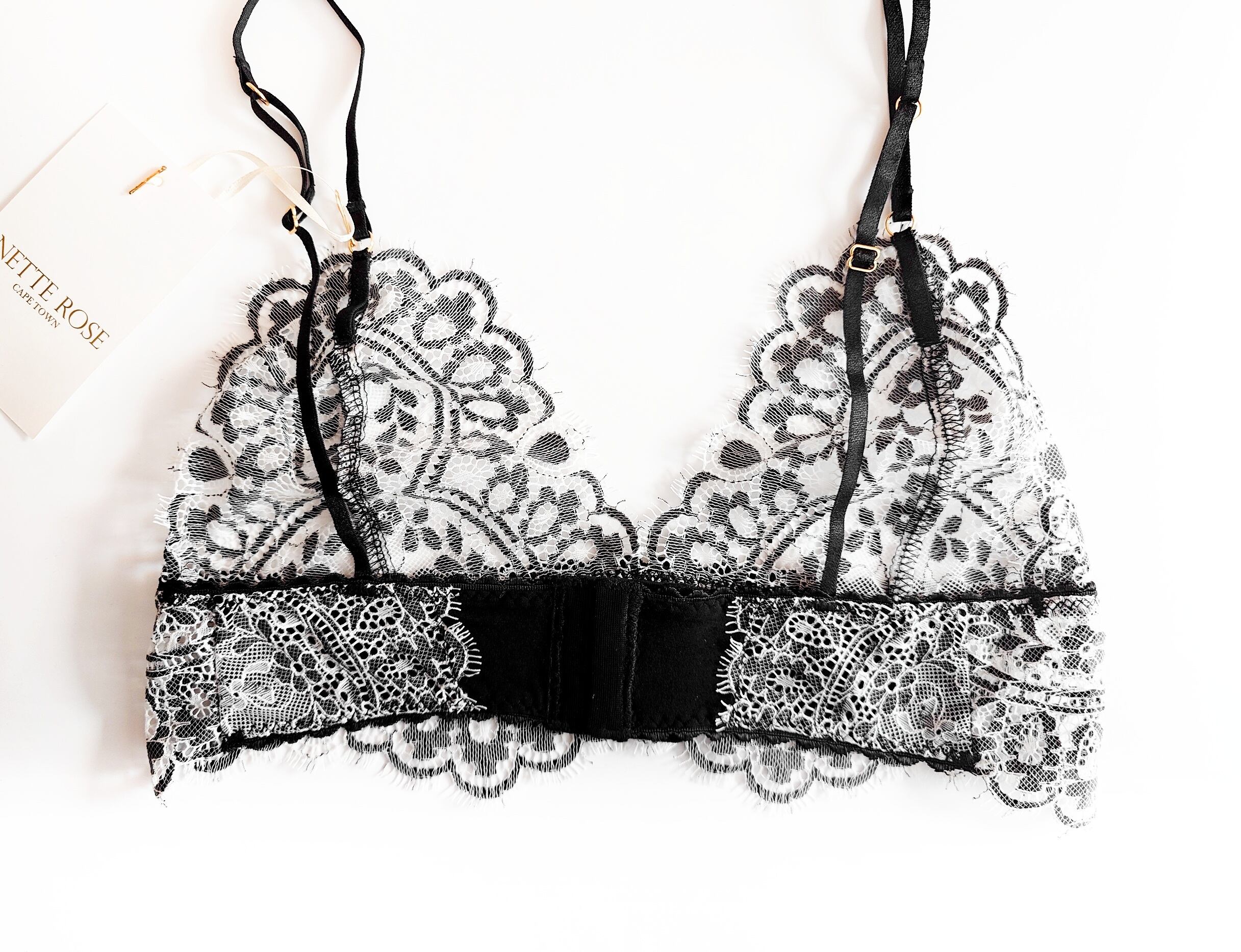 モノトーンのアイラッシュレースが上品なミドル丈ノンワイヤーブラレット。