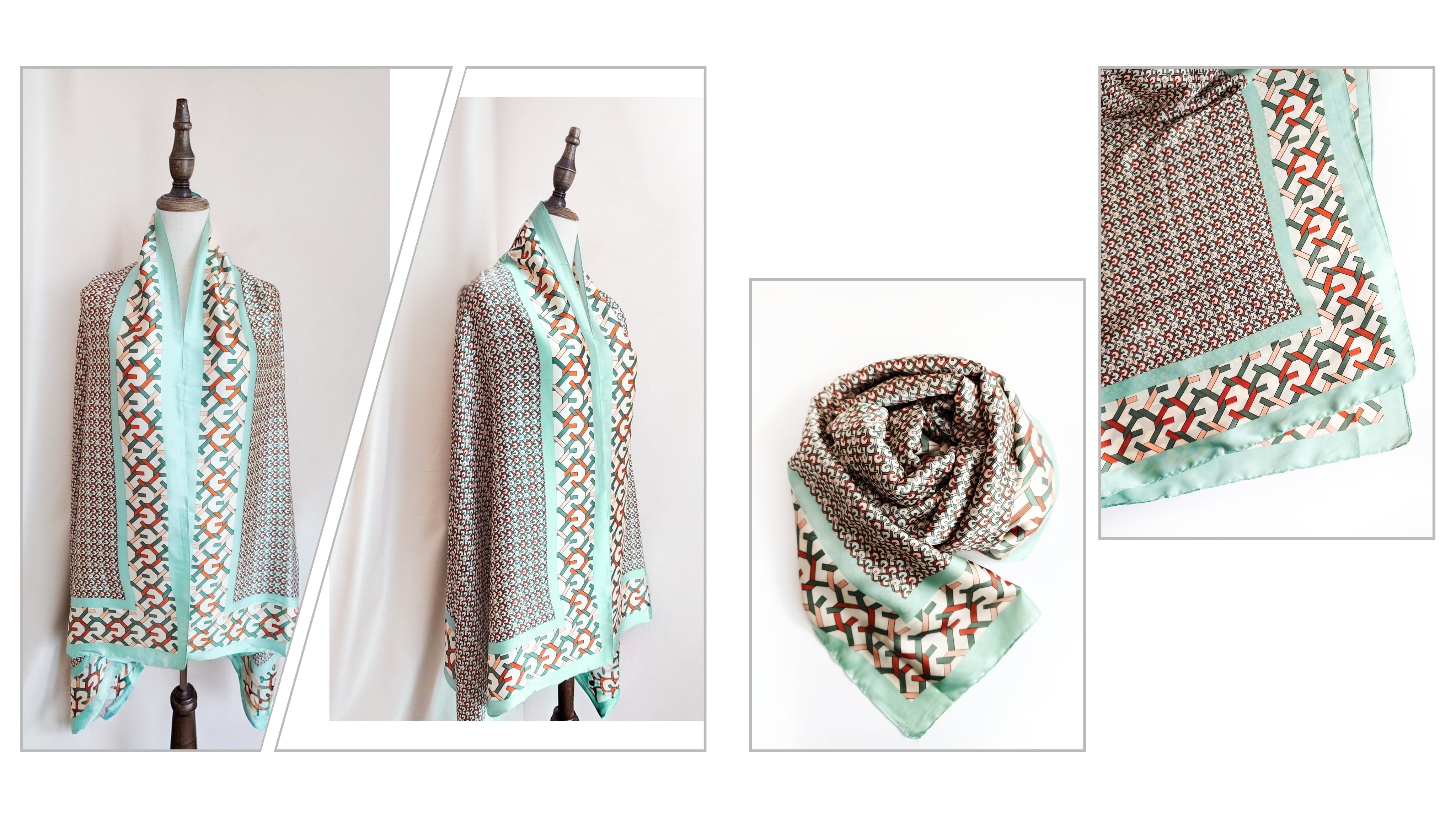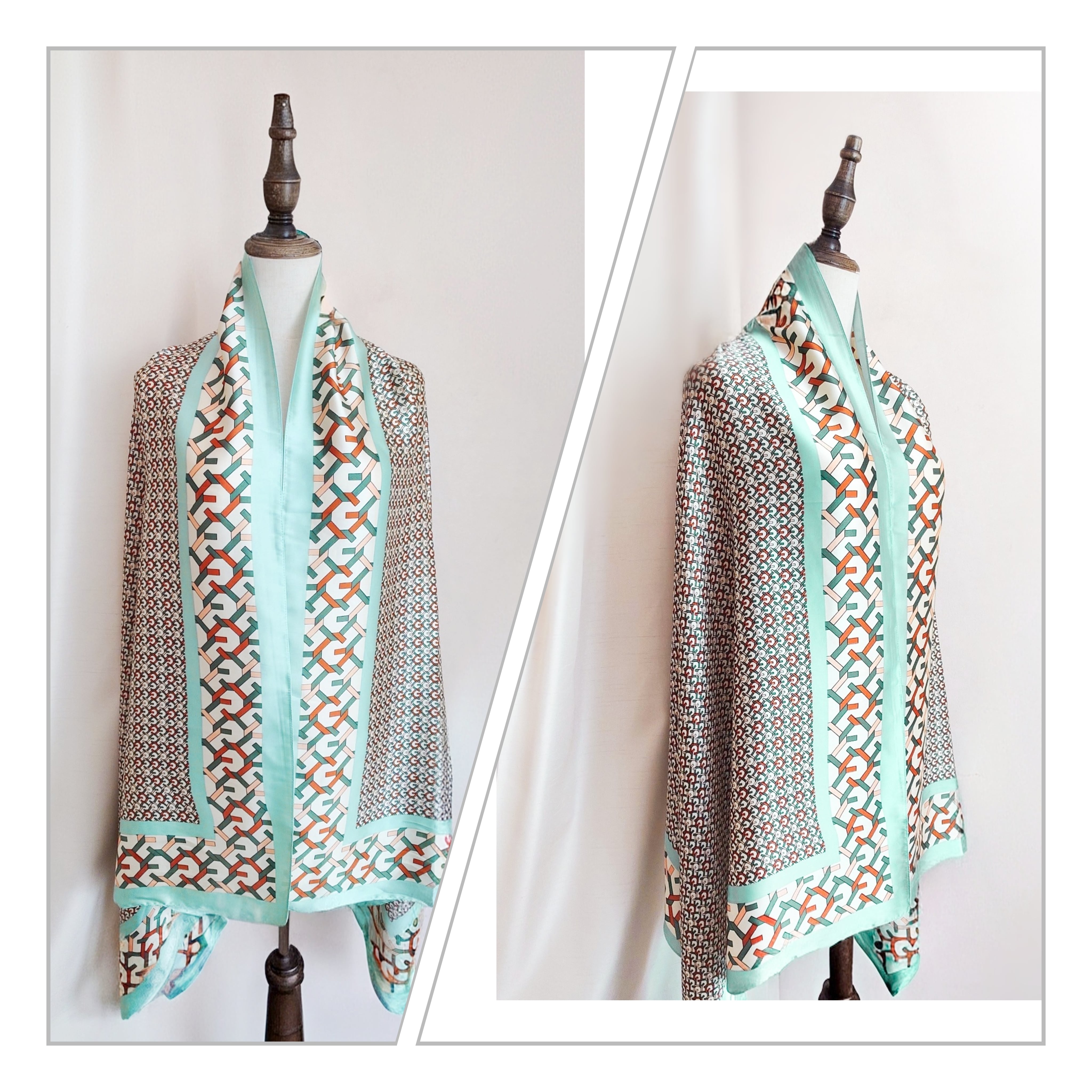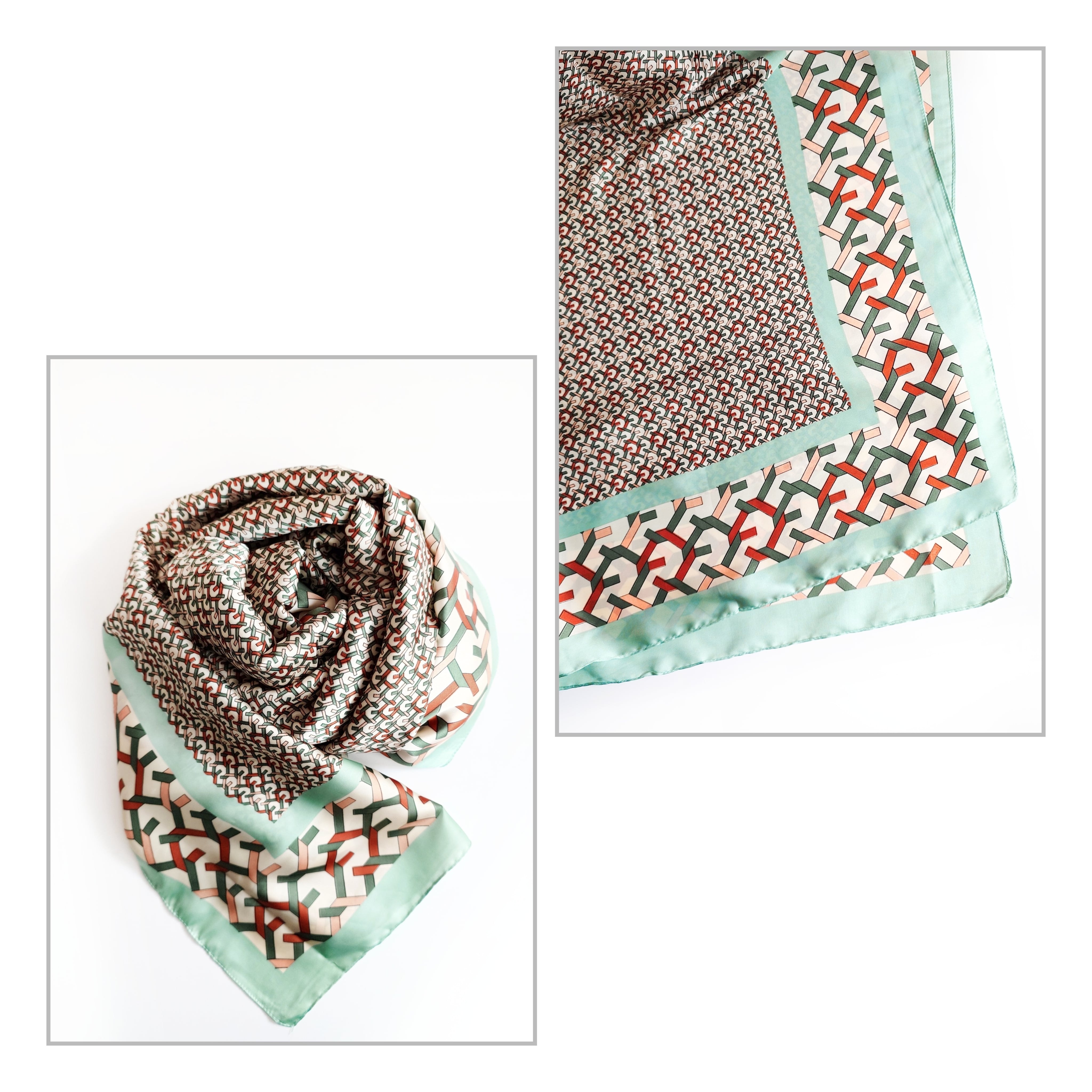 【Vimoda paris】19122 - 幾何学チェーン柄サテン ストール