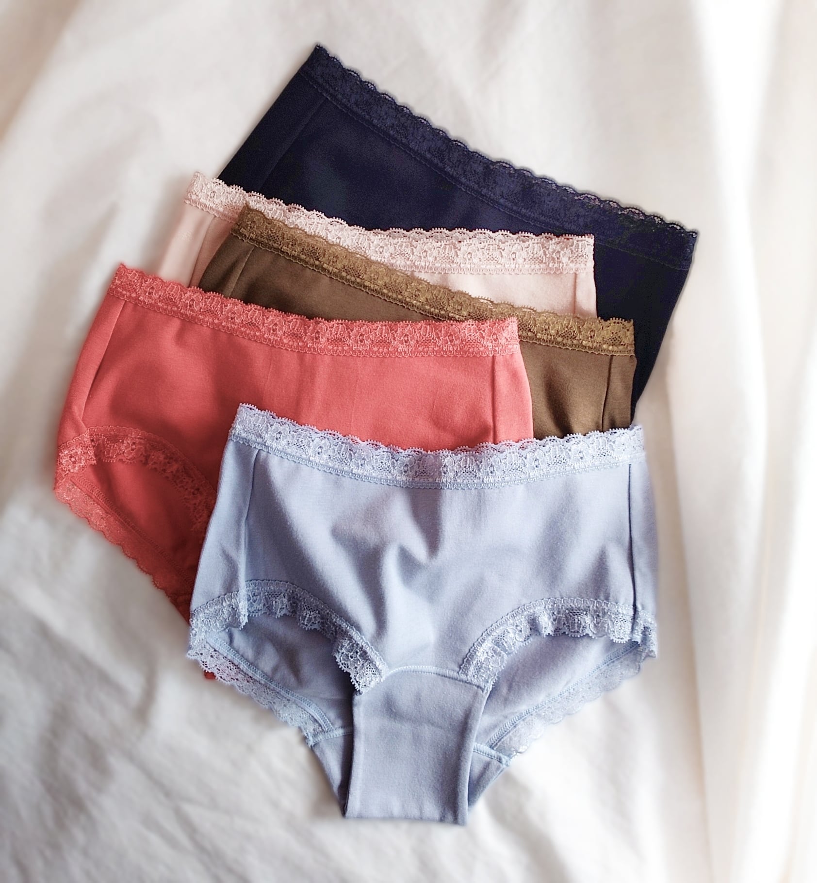 カラーはブルーグレー・ヌードベージュ・コーラルピンク・カーキ・ネイビーの5色