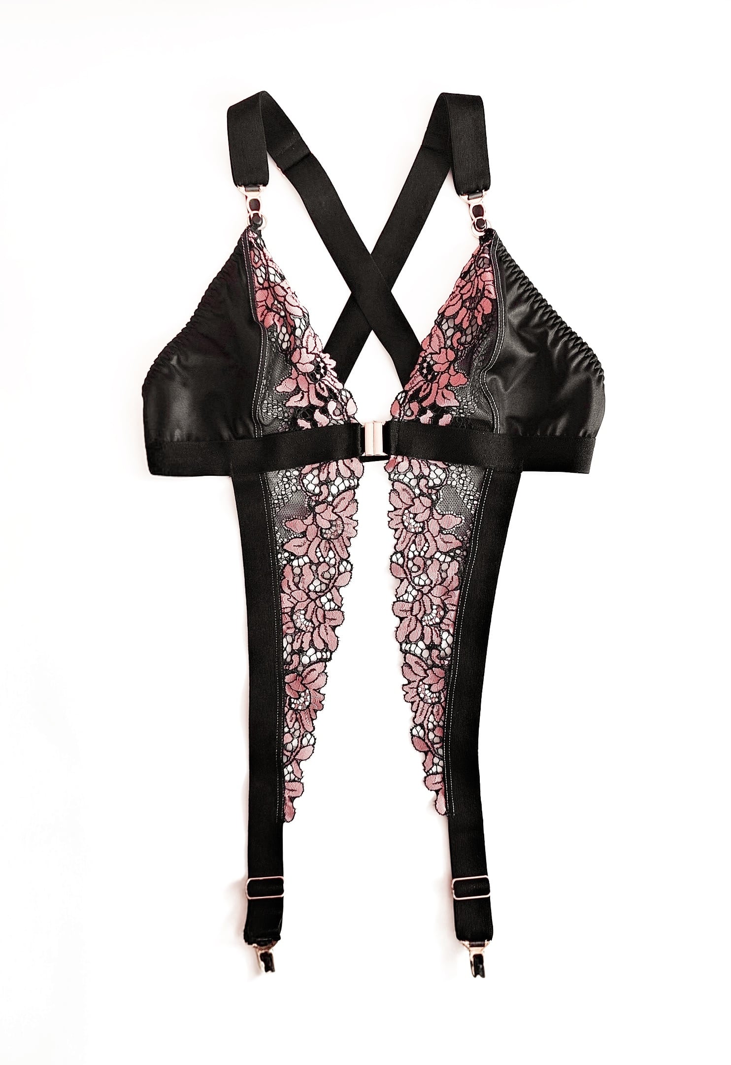 ガーター付きブラレットとガーター付きタンガショーツの2ピースで一つのBODYになる、ちょっと珍しいランジェリーです。