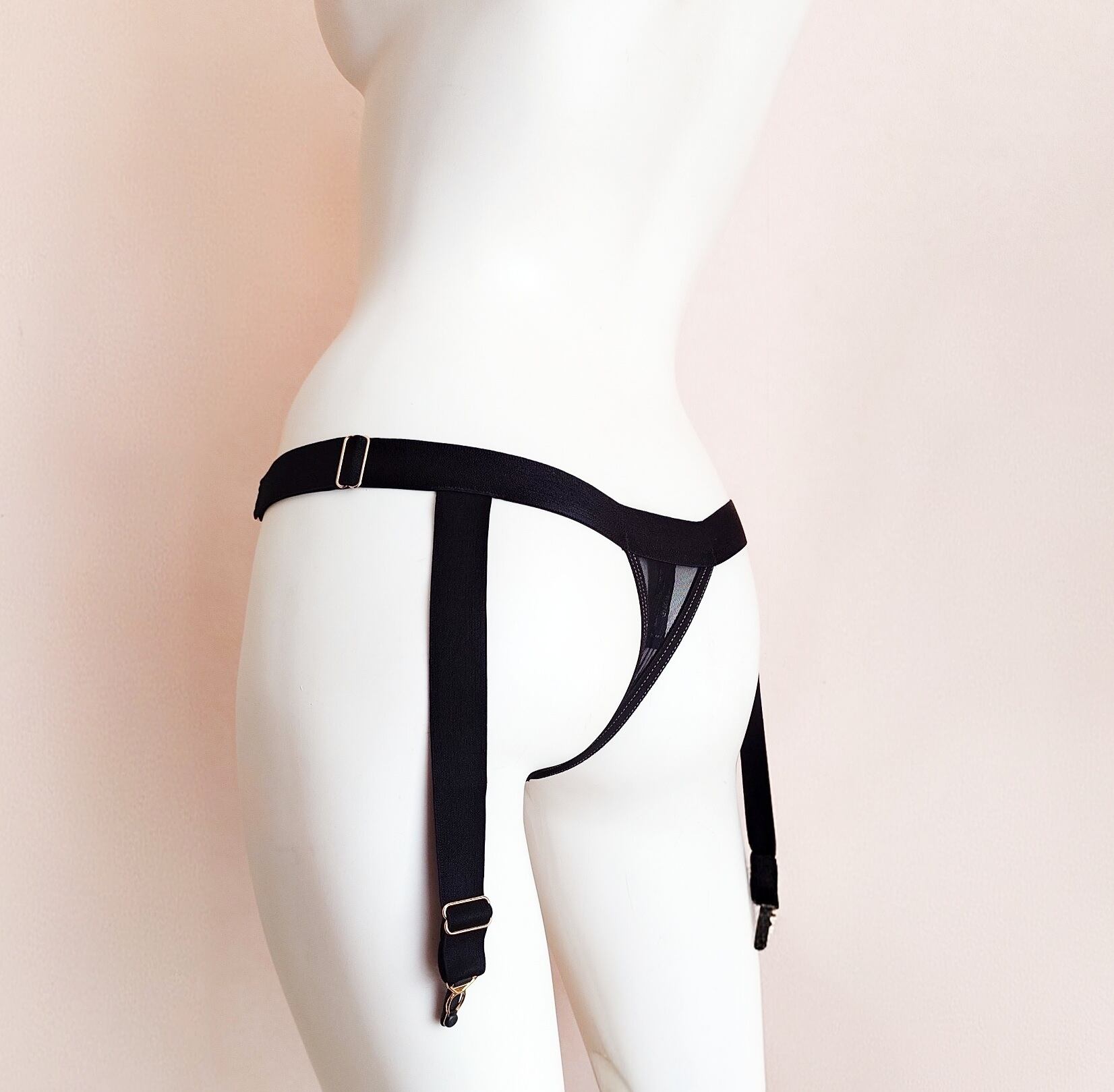 タンガショーツもガーターベルトと同じ留め具がついているフロント部分を開閉できます。