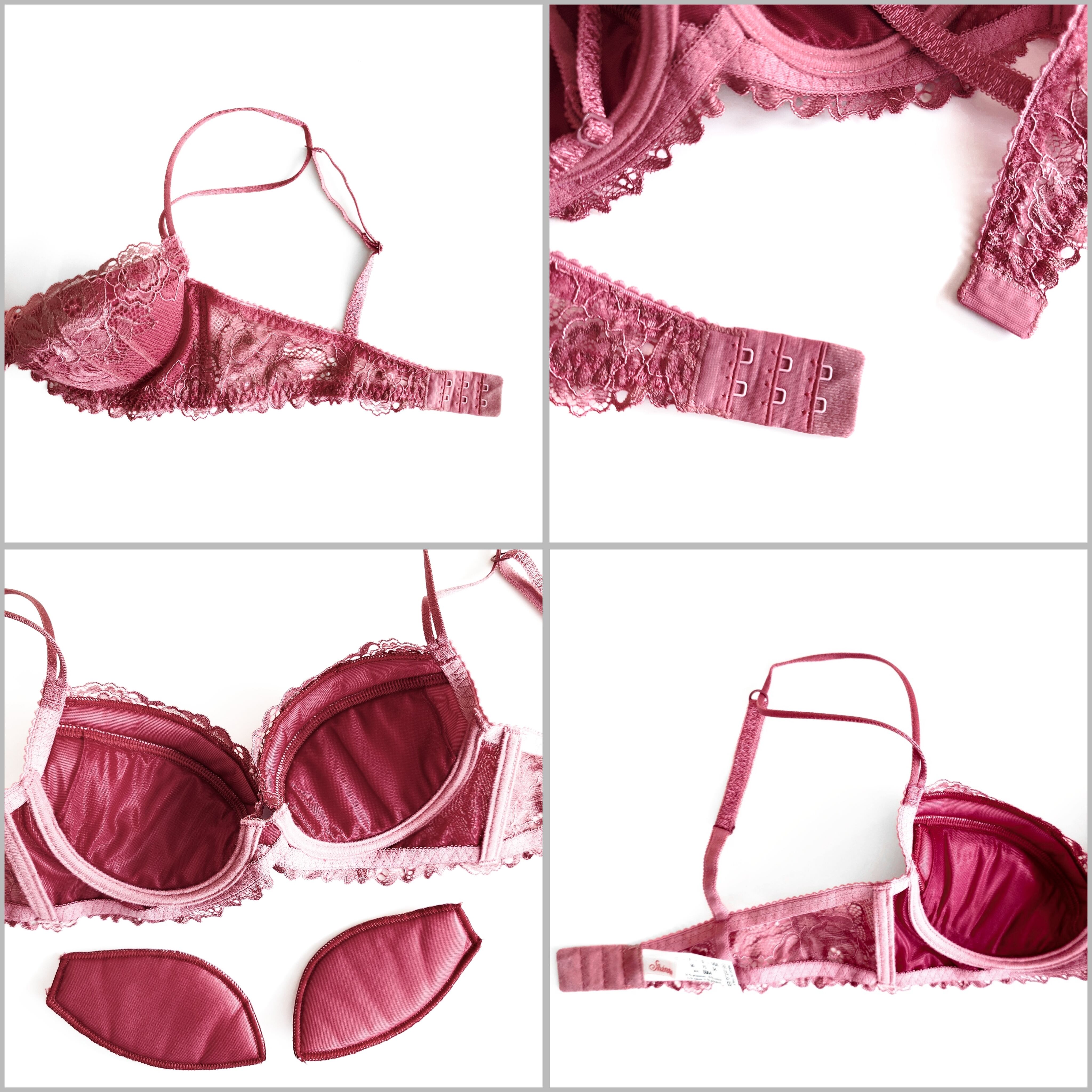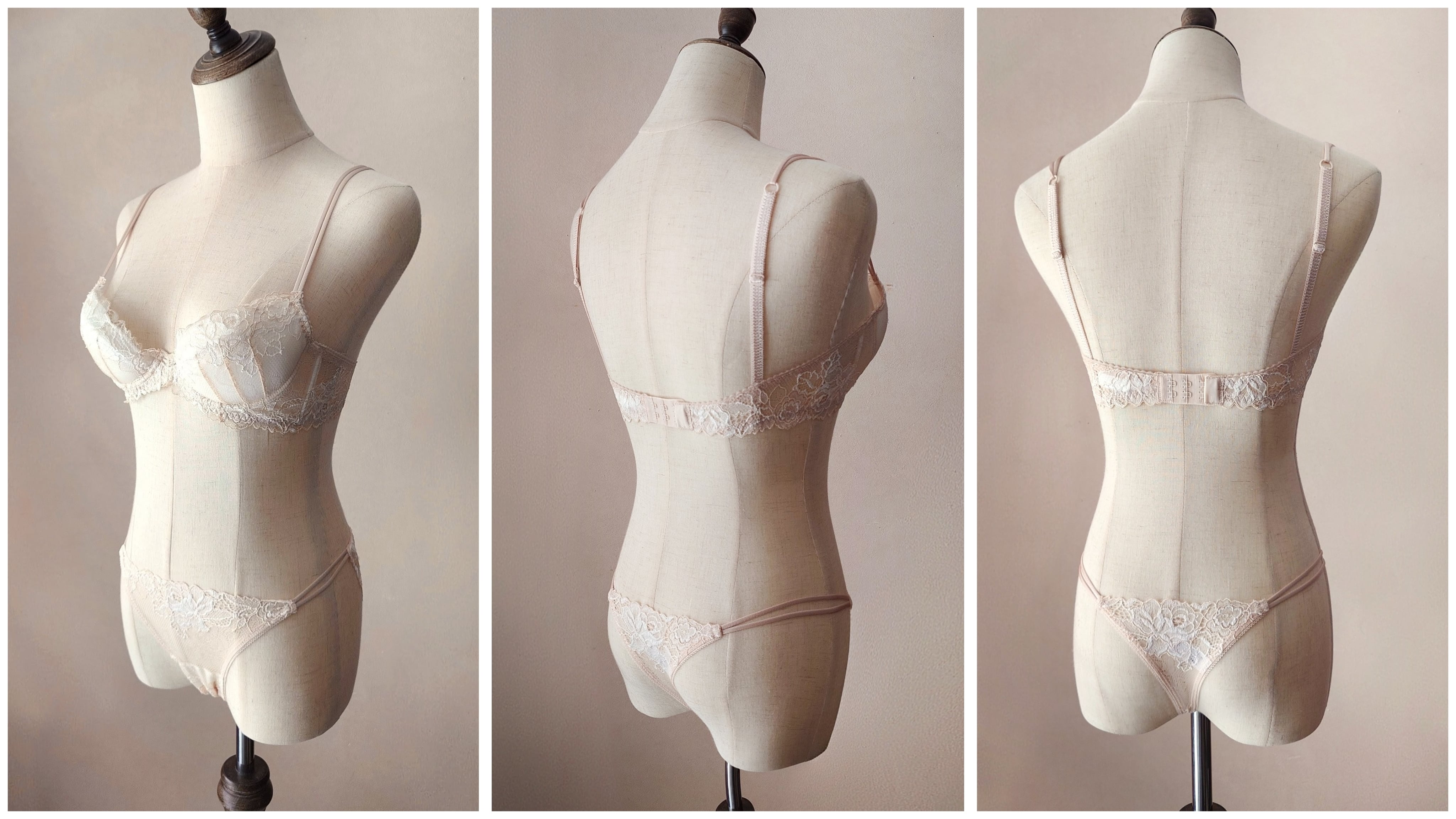 縦に3本ダーツが入ったデザインはコルセットブラのようにクラシカルで優雅です。