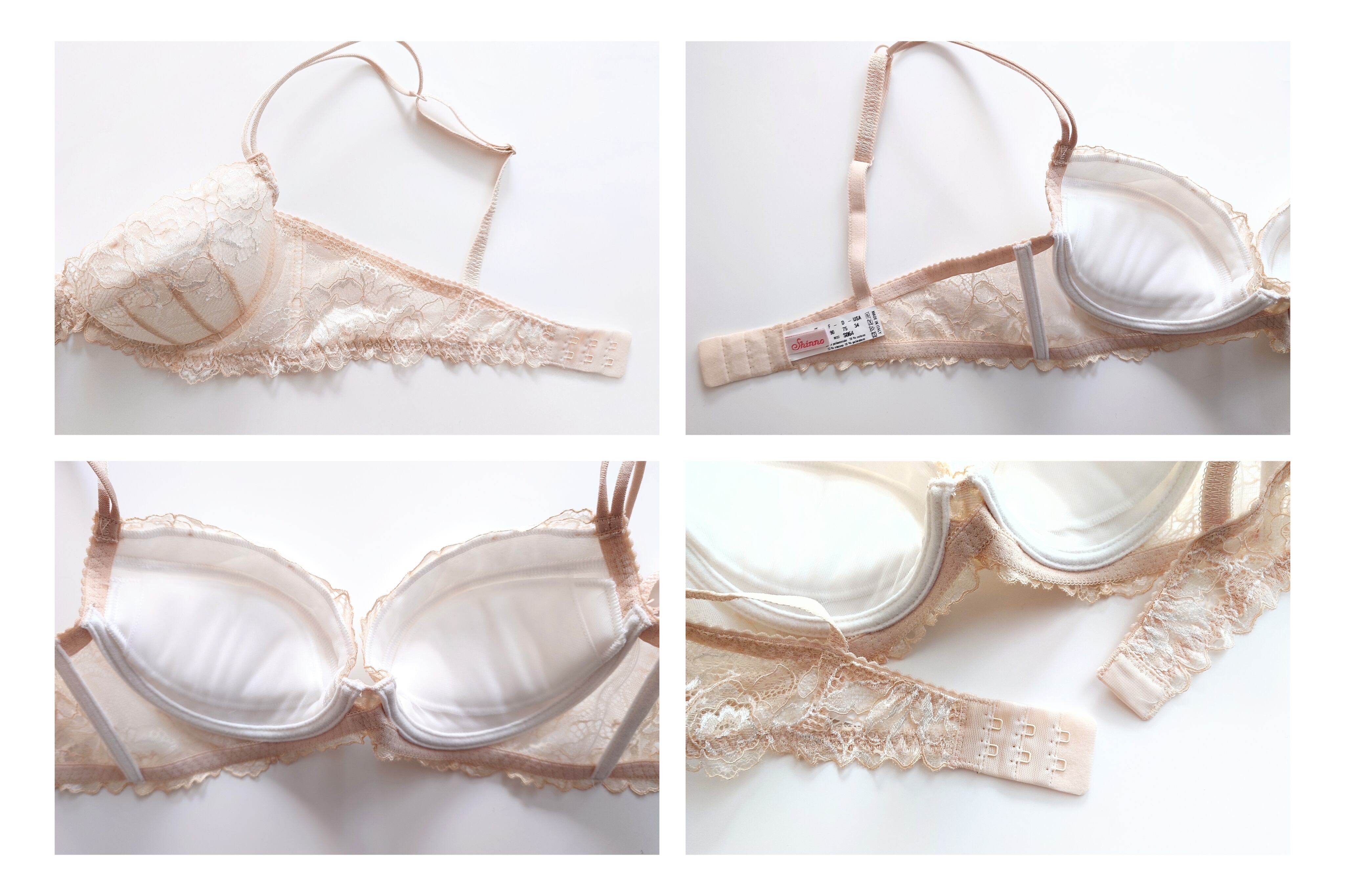 繊細な極上レースとスパゲティストラップが瀟洒で美しく、着心地も楽なのに、特別なフィッティングを施さなくても何故か綺麗に仕上がる魔法のようなブラ。