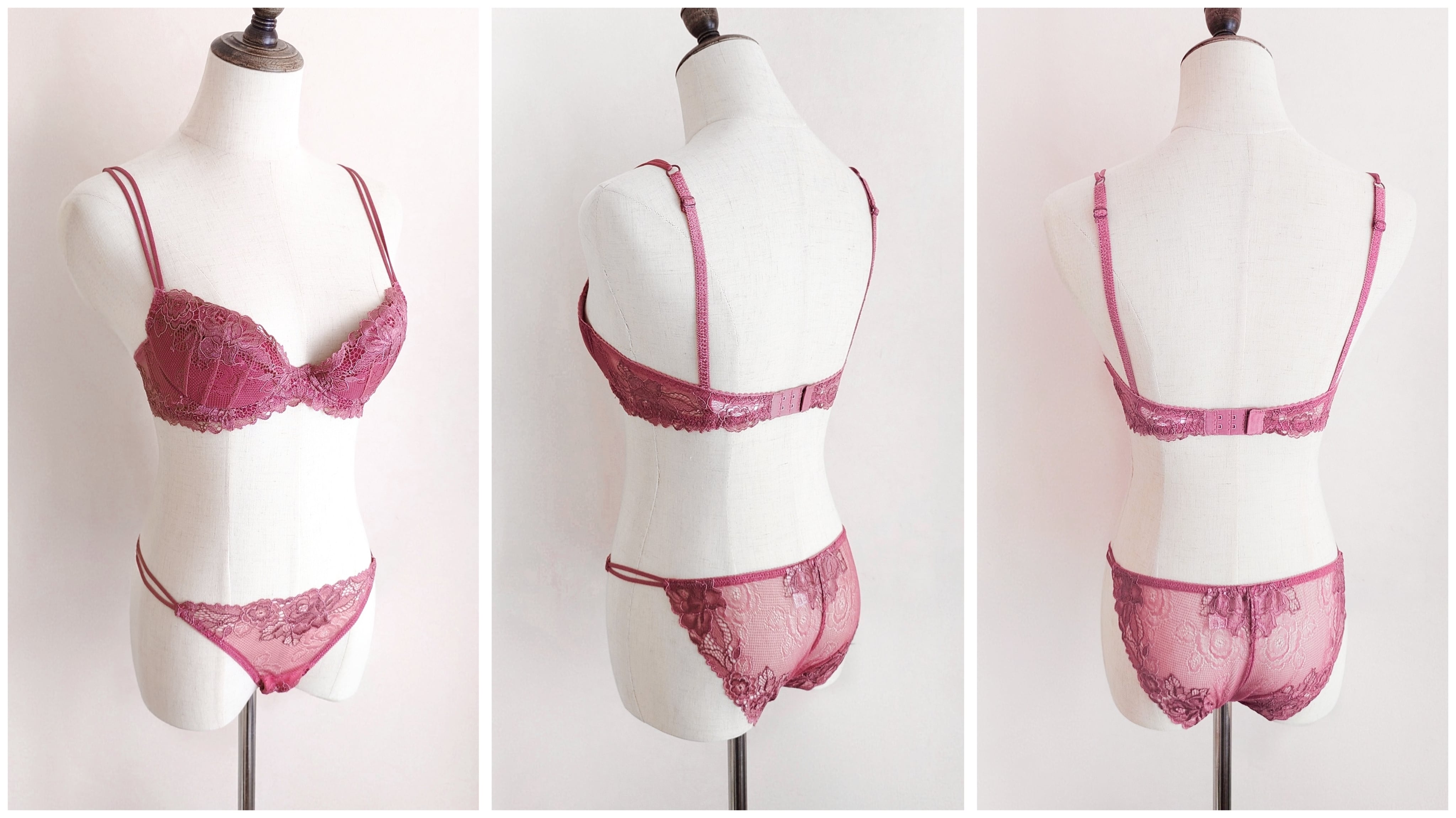 縦に3本ダーツが入ったデザインはコルセットブラのようにクラシカルで優雅です。