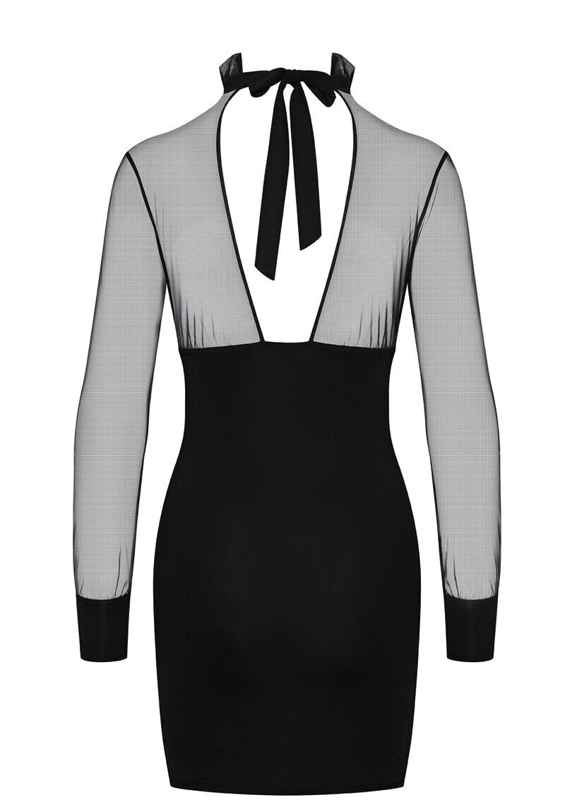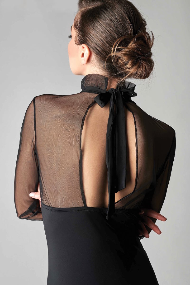 きちりと詰まった首元と大胆に開いた背中の対比が美しい仕上がりです。