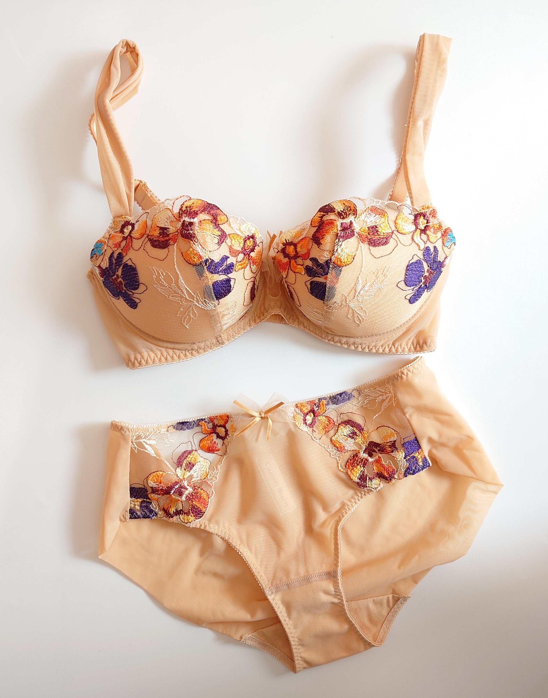 ヌードカラーのチュールに鮮やかなエンブロイダリーレースが美しいcollection