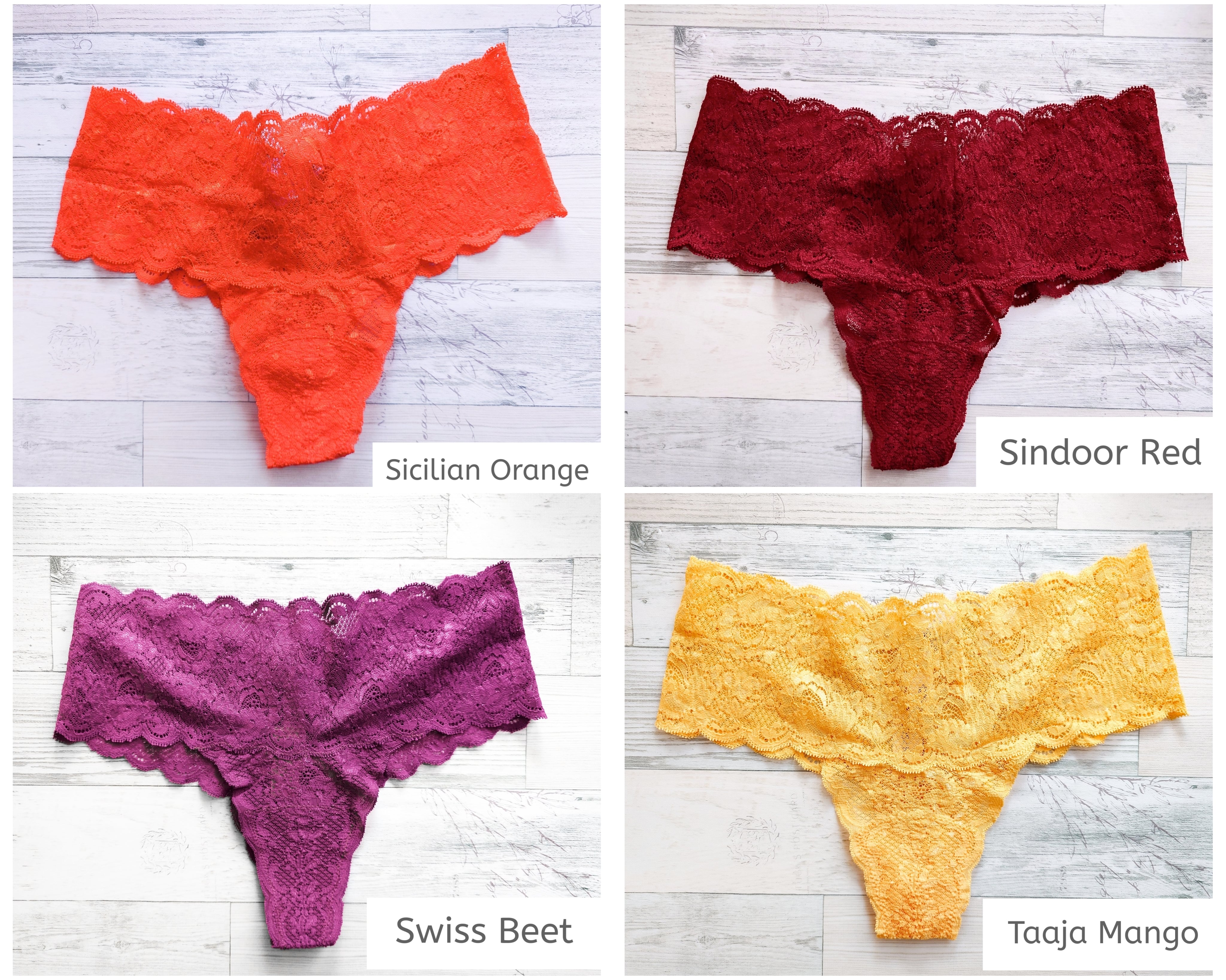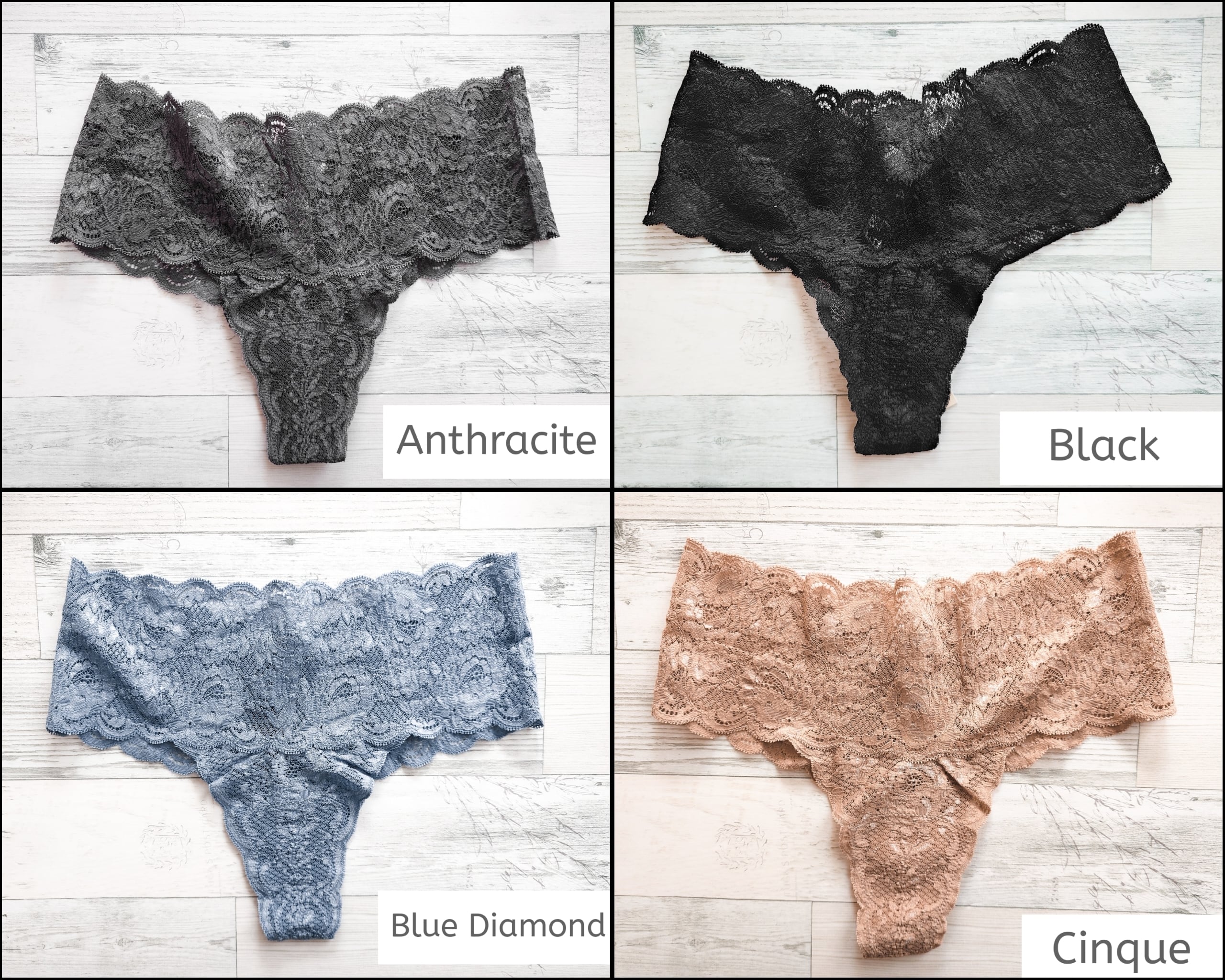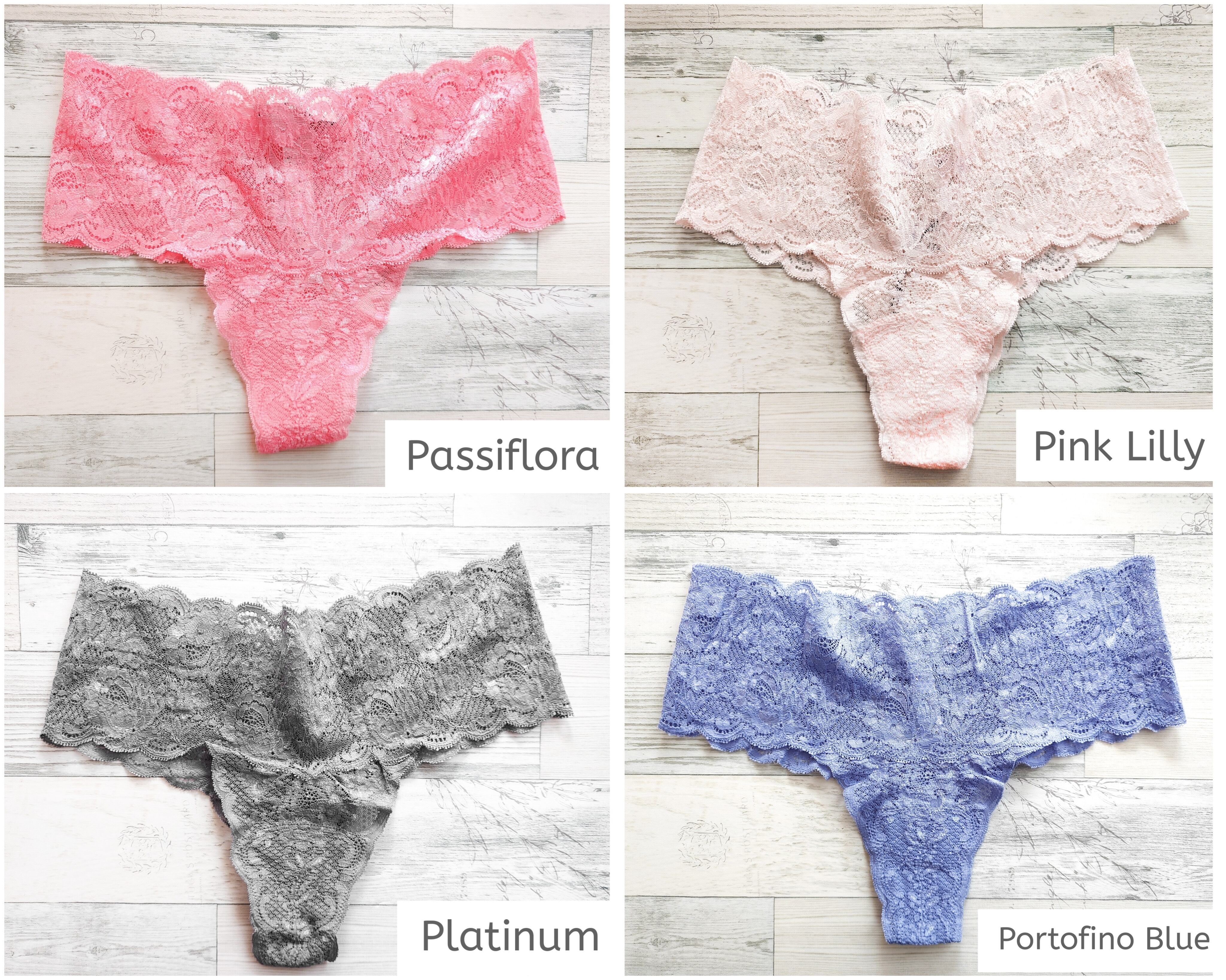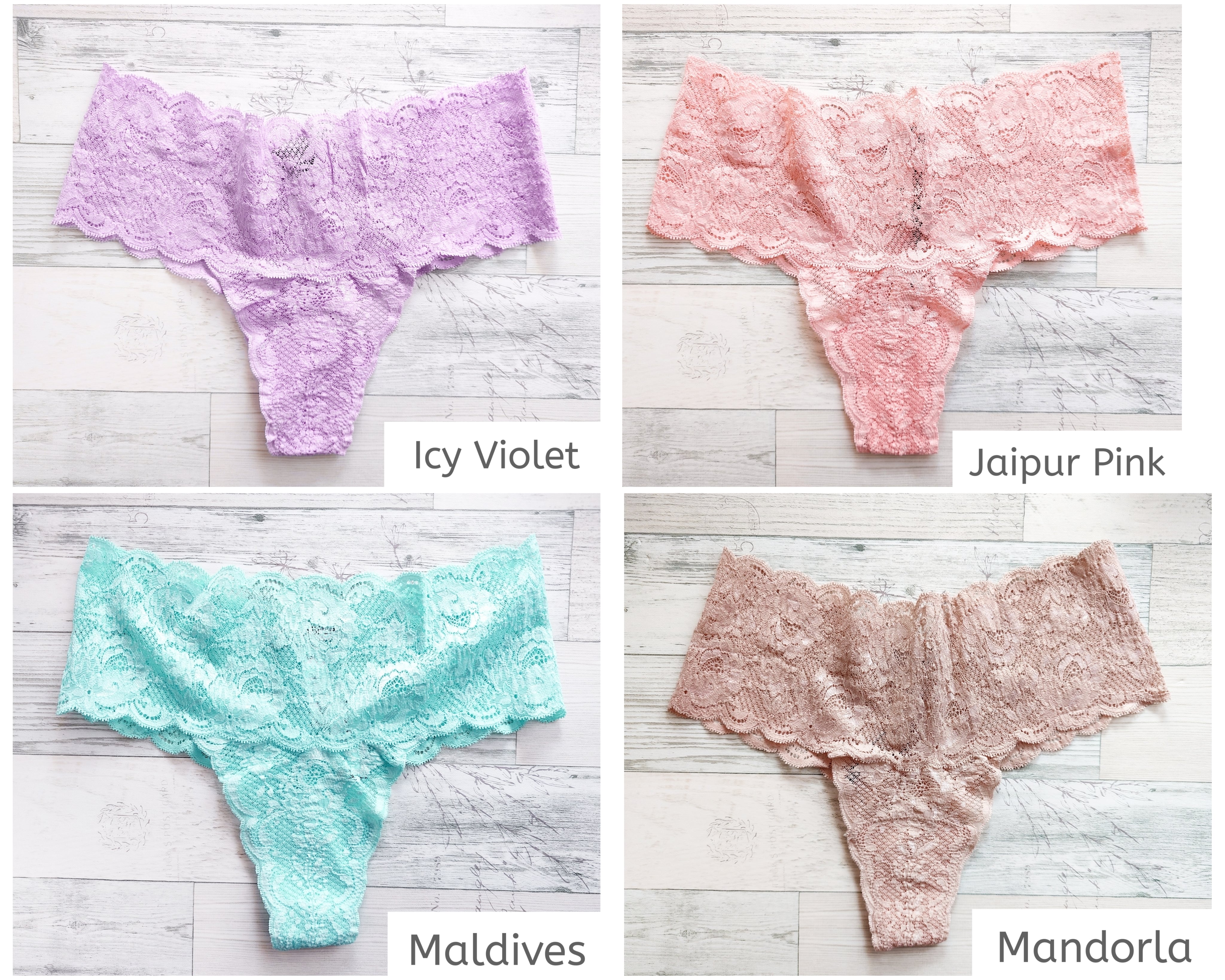 お洋服にラインが響きにくいスカラップトリミングは見た目にも美しく、華やかなフローラル柄レースにはところどころに上品な光沢感があります。