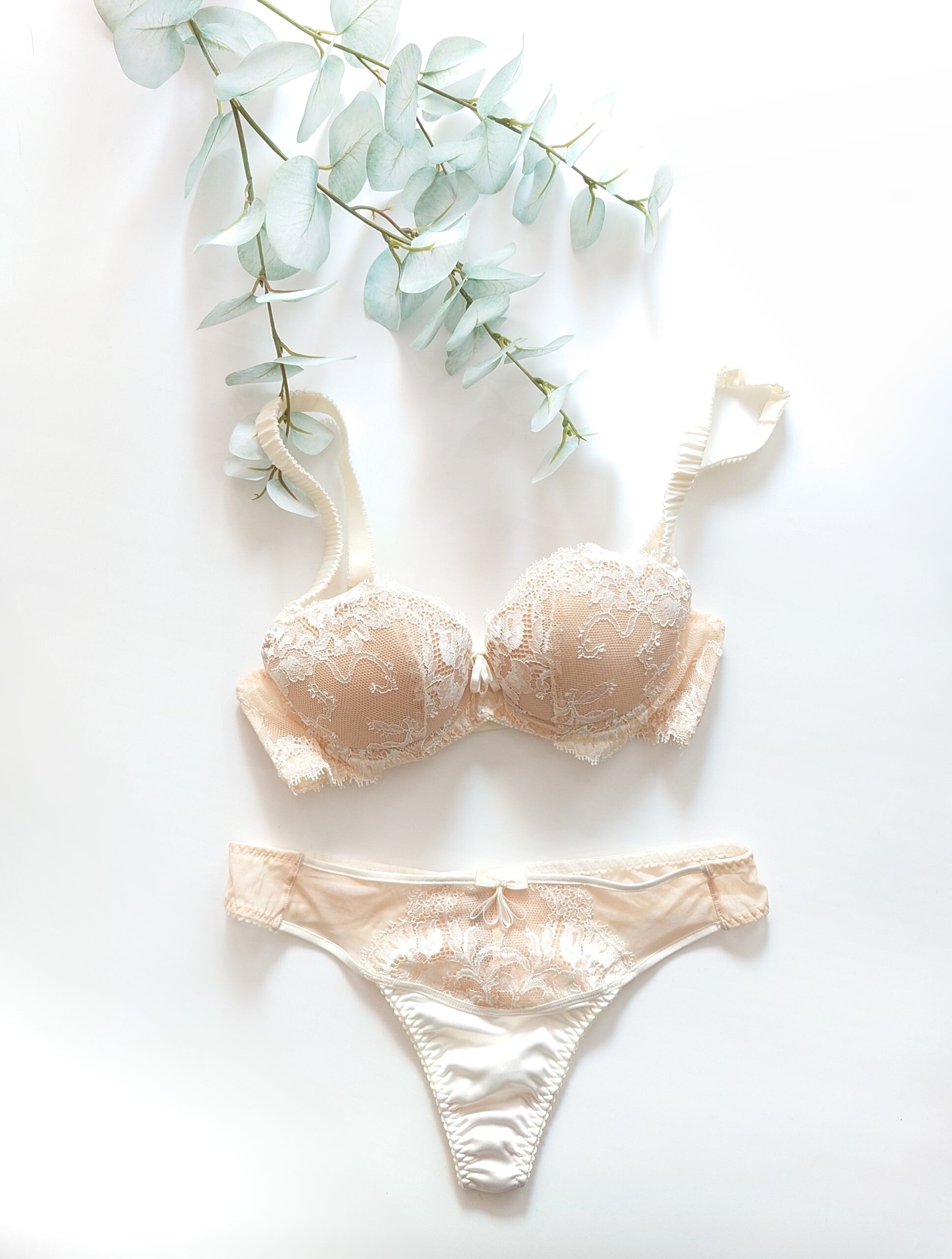 Champagneはヌードカラーをベースに、ストラップとレースの差し色は華やかなアイボリーで上品な仕上がり。