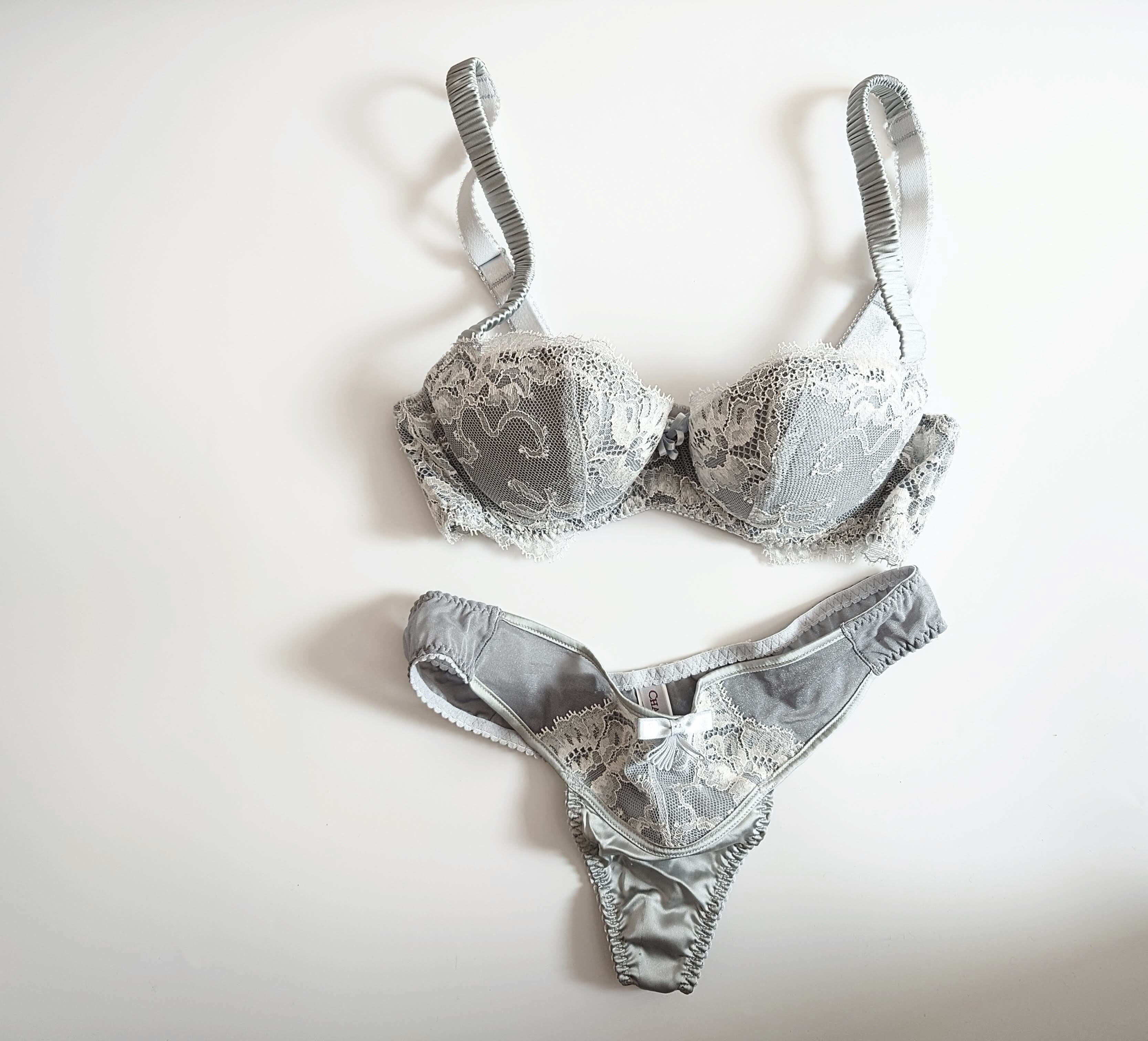 SILVERは光沢のあるグレーをベースに、レースの差し色は華やかなアイボリーで落ち着きのある上品な仕上がり。