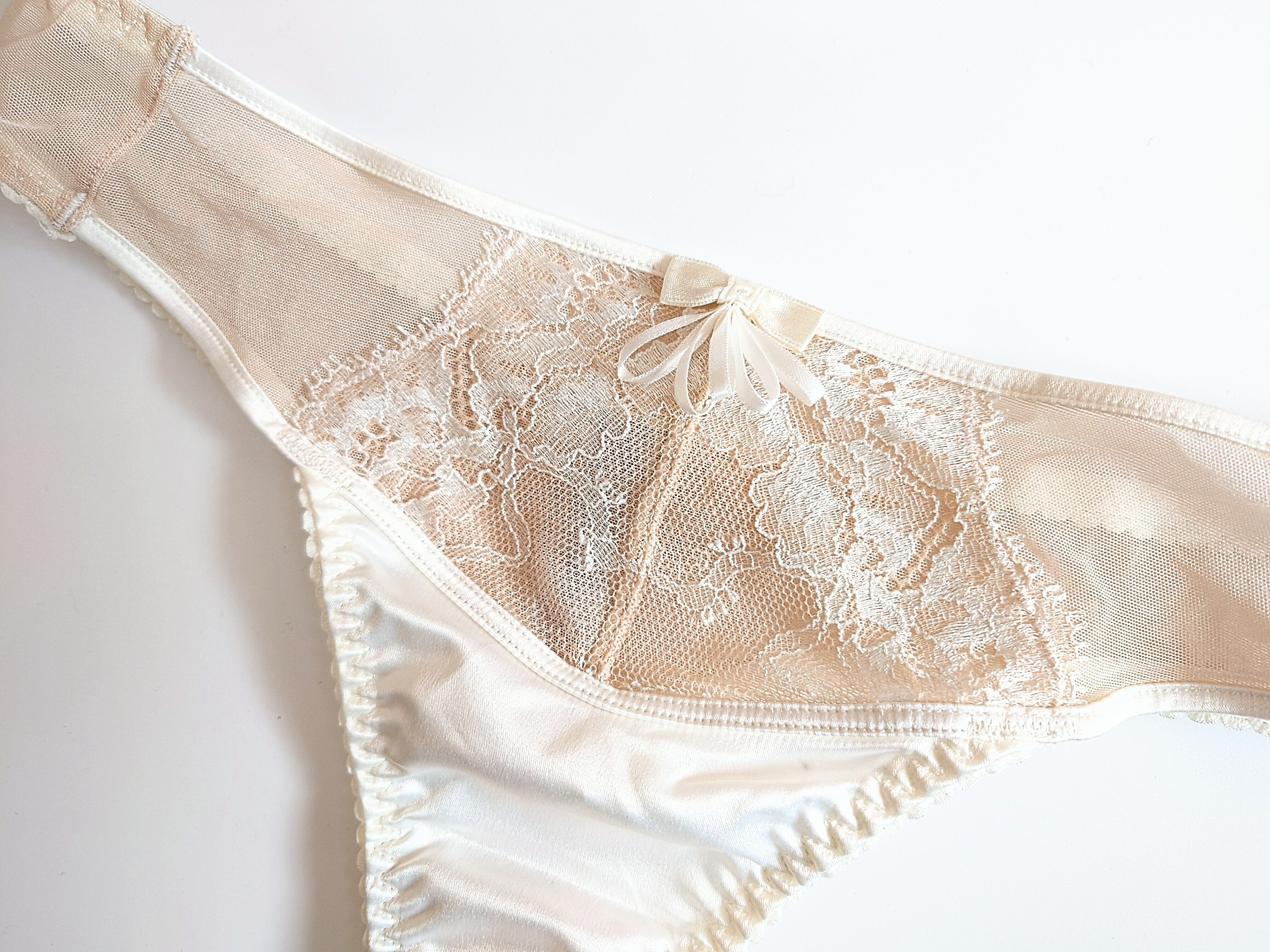 フロントはサテンが際立つシンプルなデザインに、ブラとお揃いのリボンモチーフがアクセントになっております。