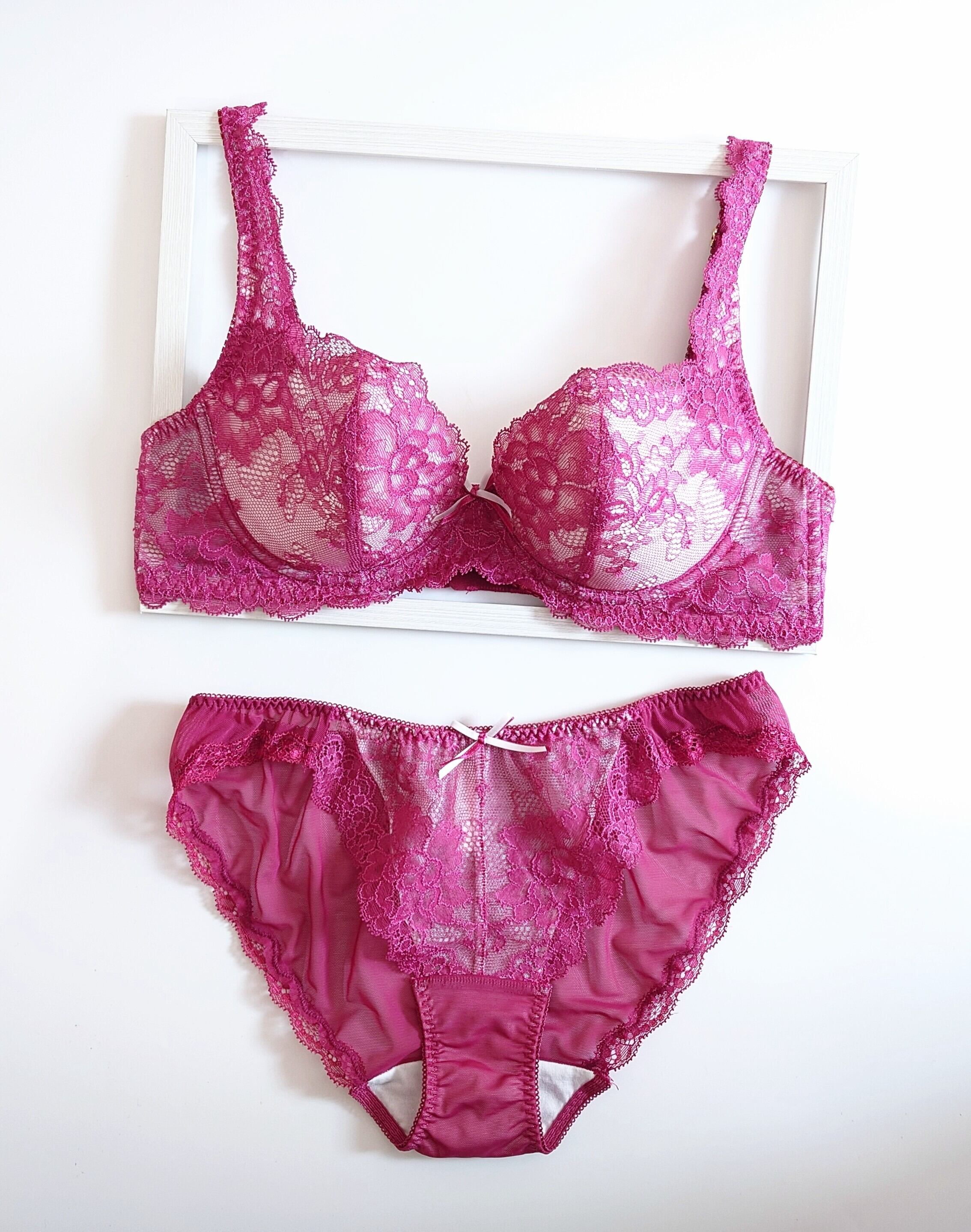 ラズベリーは純白のベースカラーに重ねたラズベリーピンク色のレースの濃淡が美しい、大人のベリーピンクです。