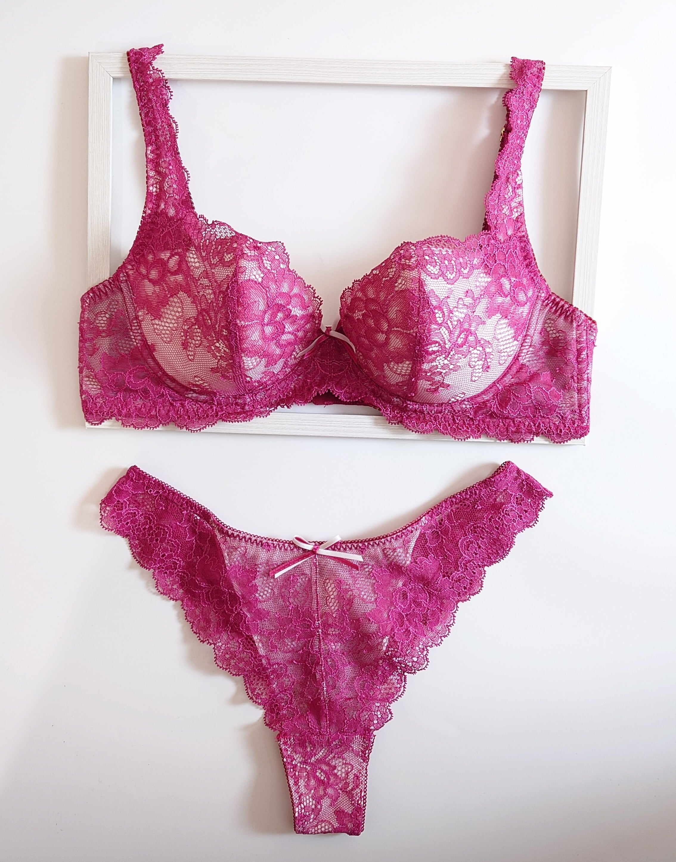 ラズベリーは純白のベースカラーに重ねたラズベリーピンク色のレースの濃淡が美しい、大人のベリーピンクです。