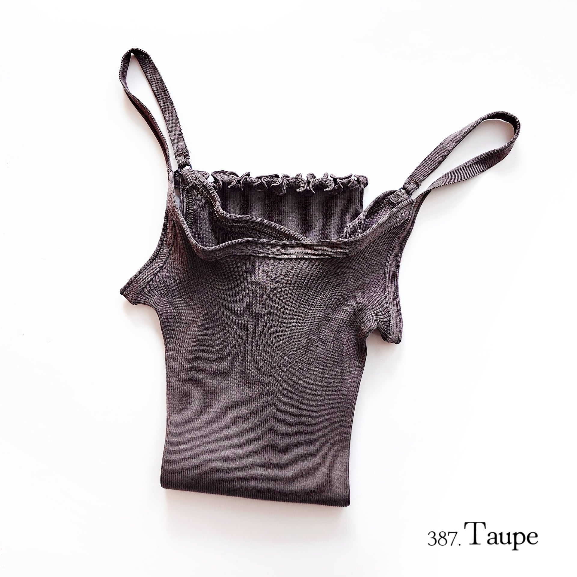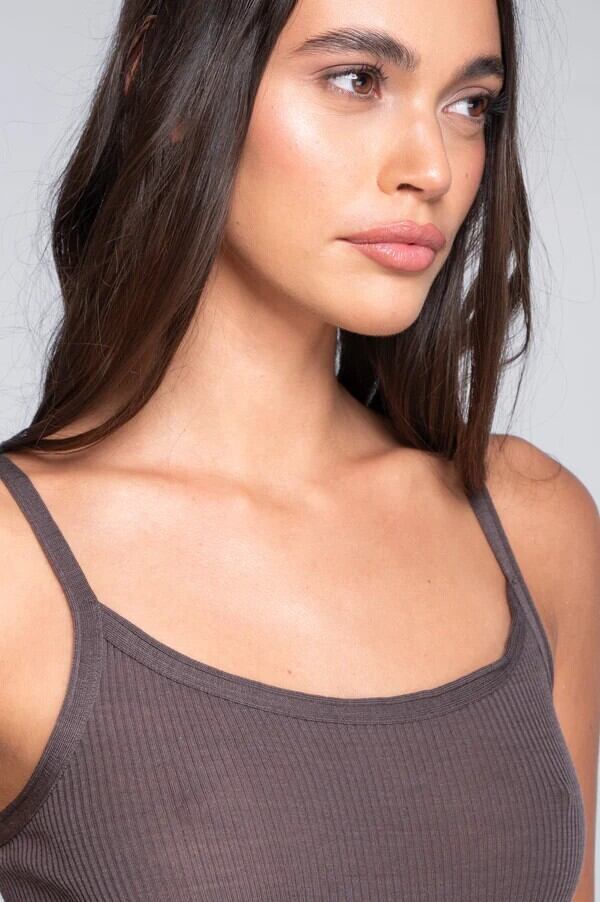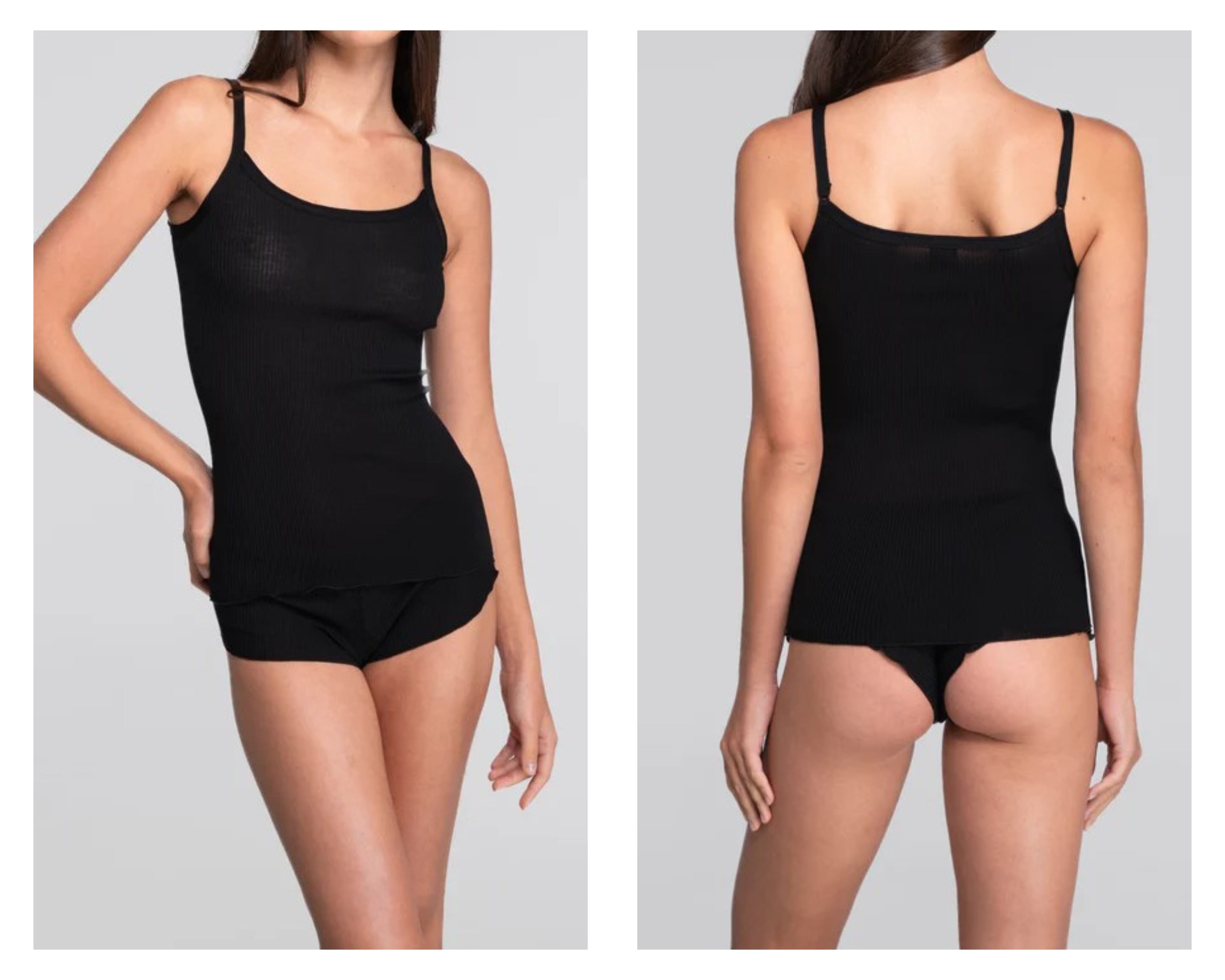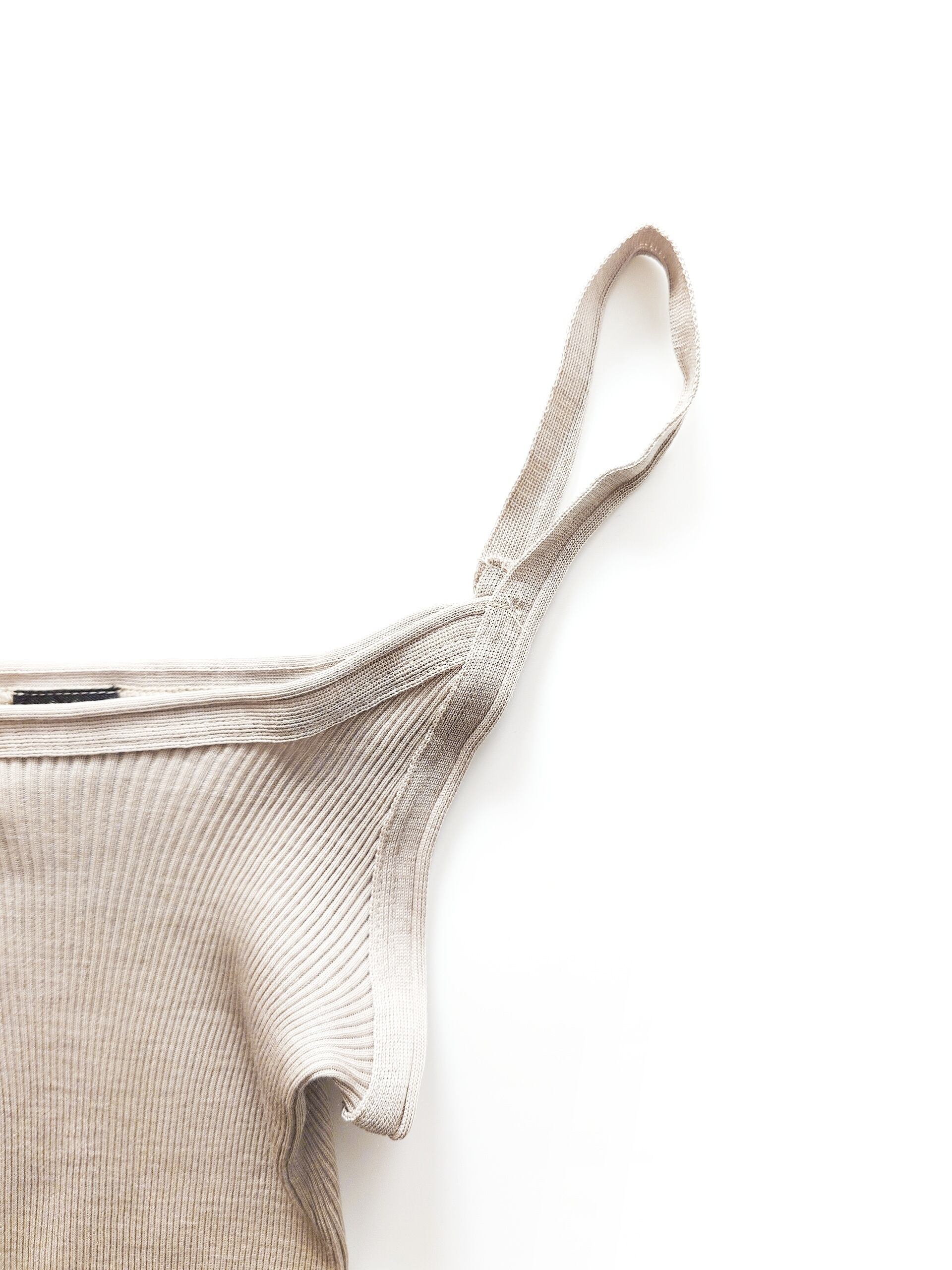 【Oscalito】オスカリートのリブキャミソールです。ウール70%/シルク30%の丸編み細リブ仕立て。