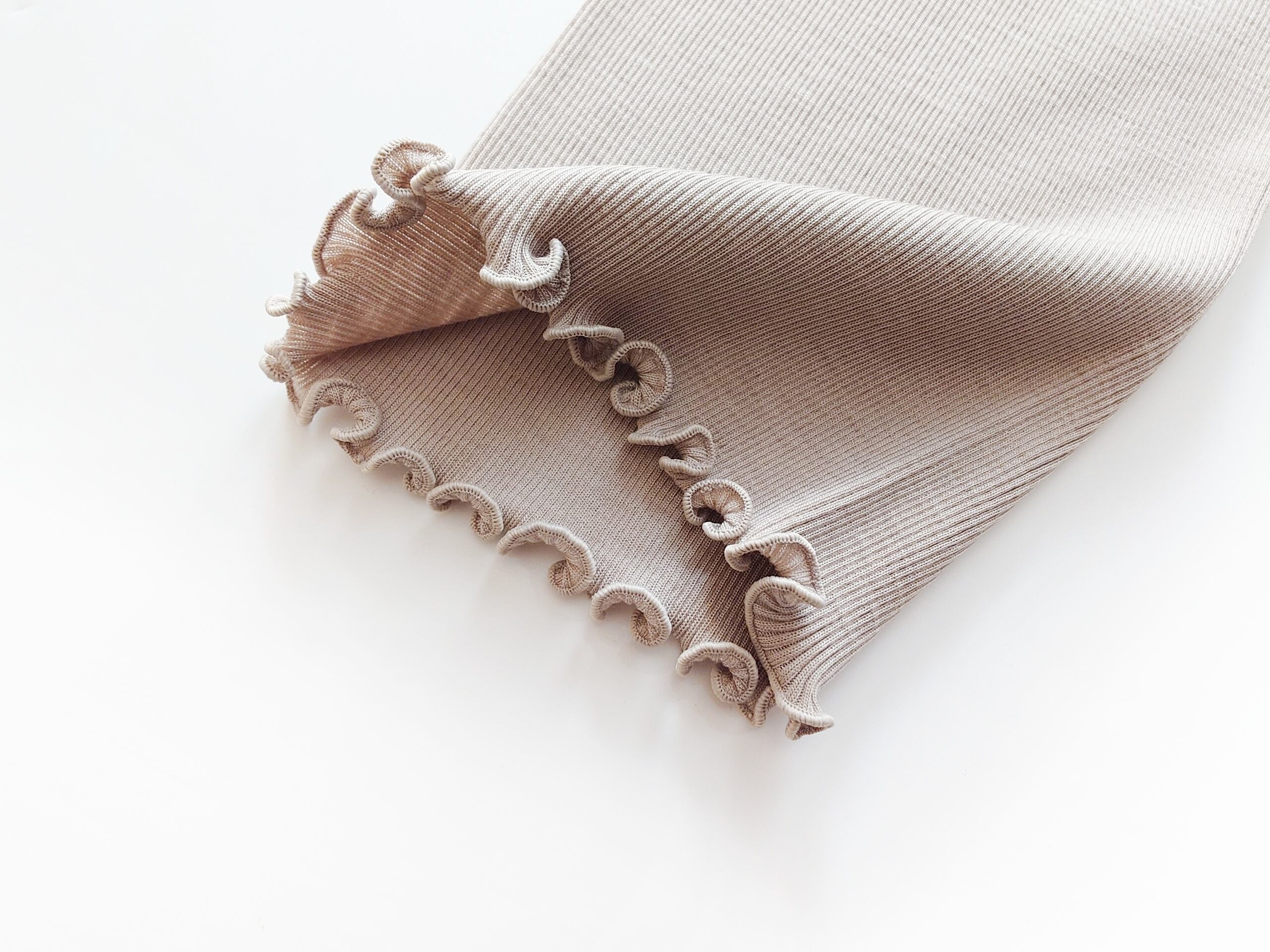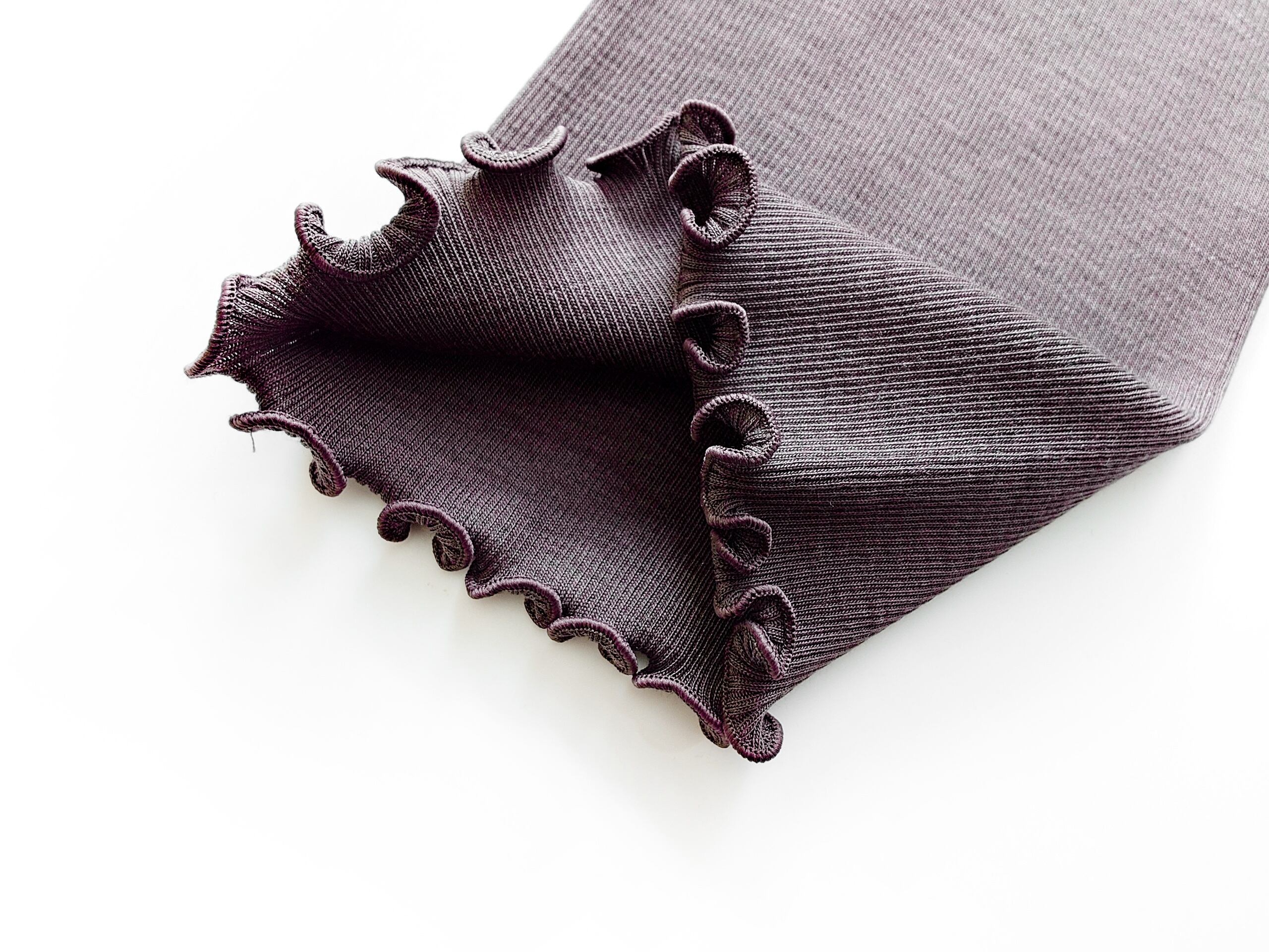 上質な素材をこれでもかと贅沢にたっぷり使用して編み上げたオスカリートのリブは優しくふんわり体に添います。ピタピタに張り付くこともなく、細リブの陰影が体のシルエットを上品に美しく見せてくれます。