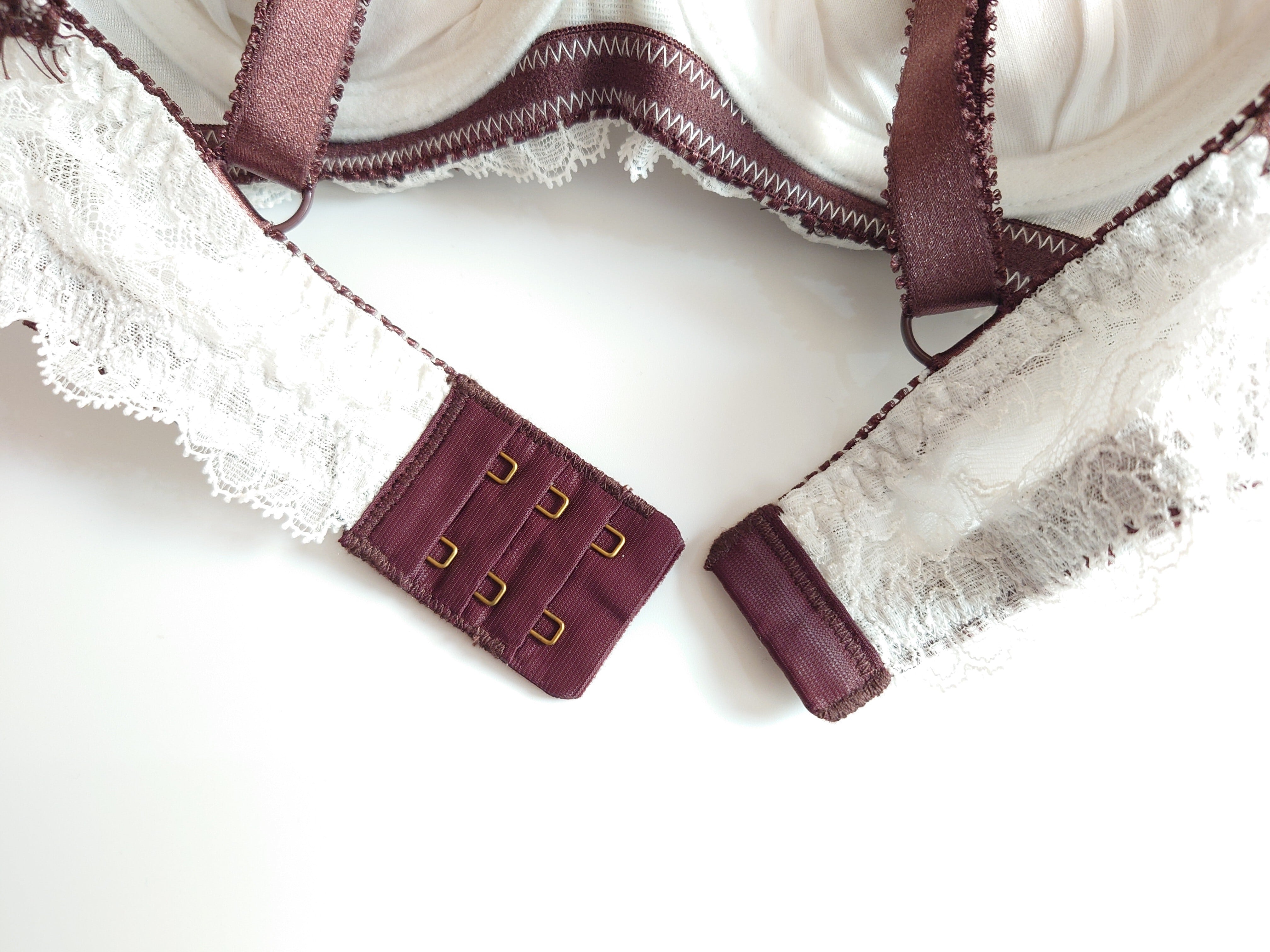 チョコレート/アイボリーは白レースの上にチョコレート色のレースを重ねてあります。