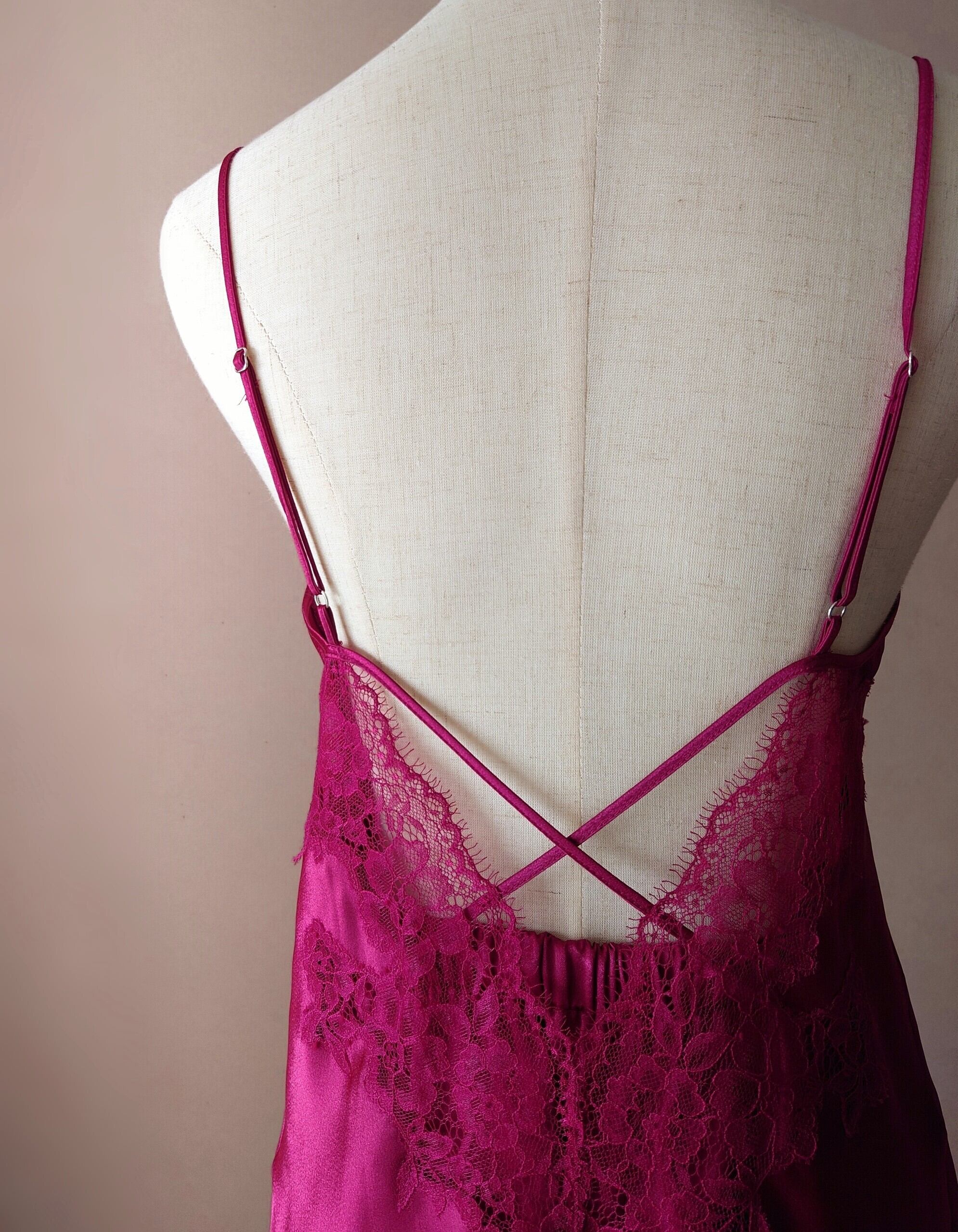 キャミの背中は大胆な切れ込み&クロスデザイン。