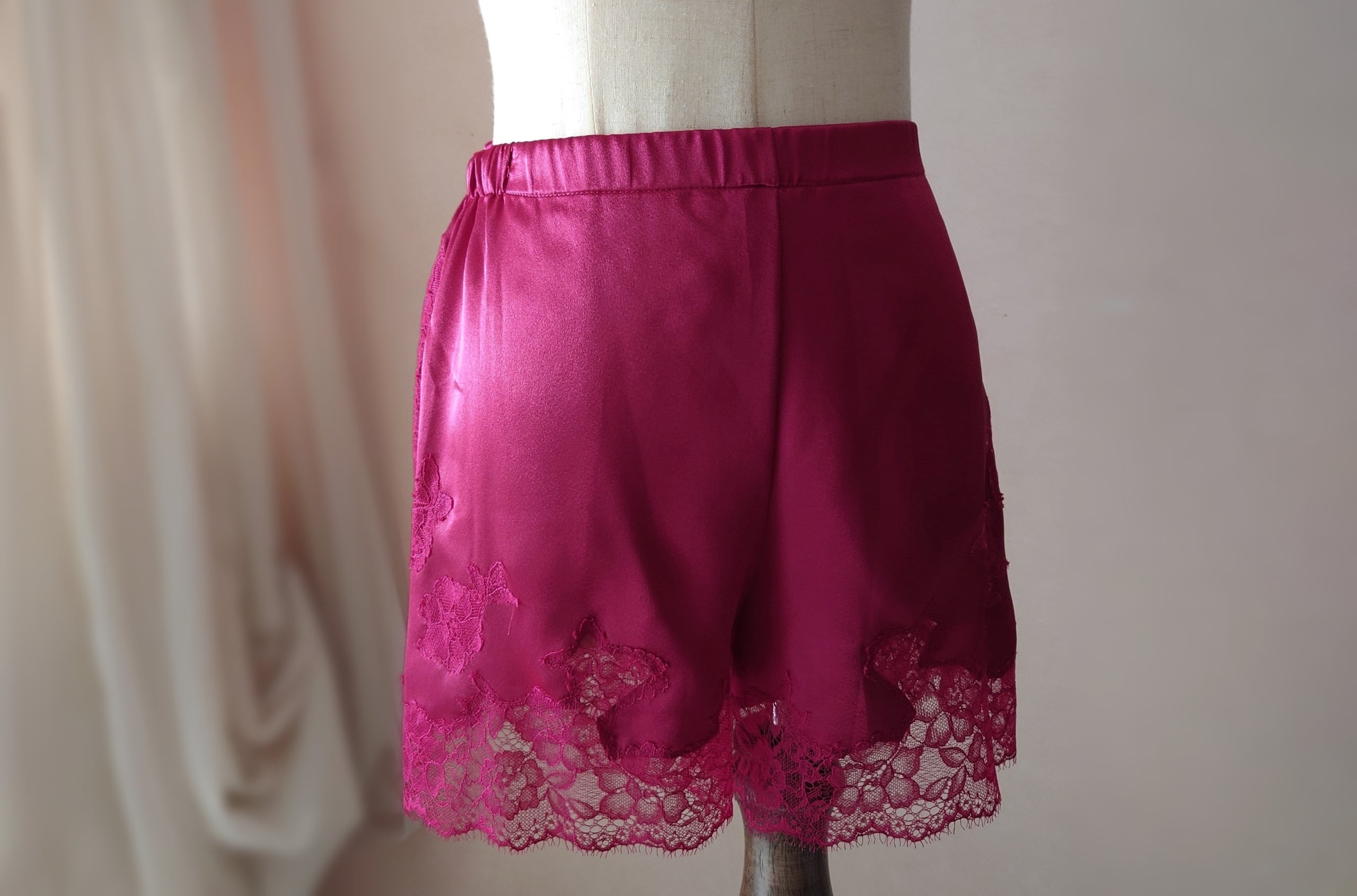 ショートパンツにも贅沢にレースがあしらわれていて、レースで透ける両サイドには深いスリットがございます。