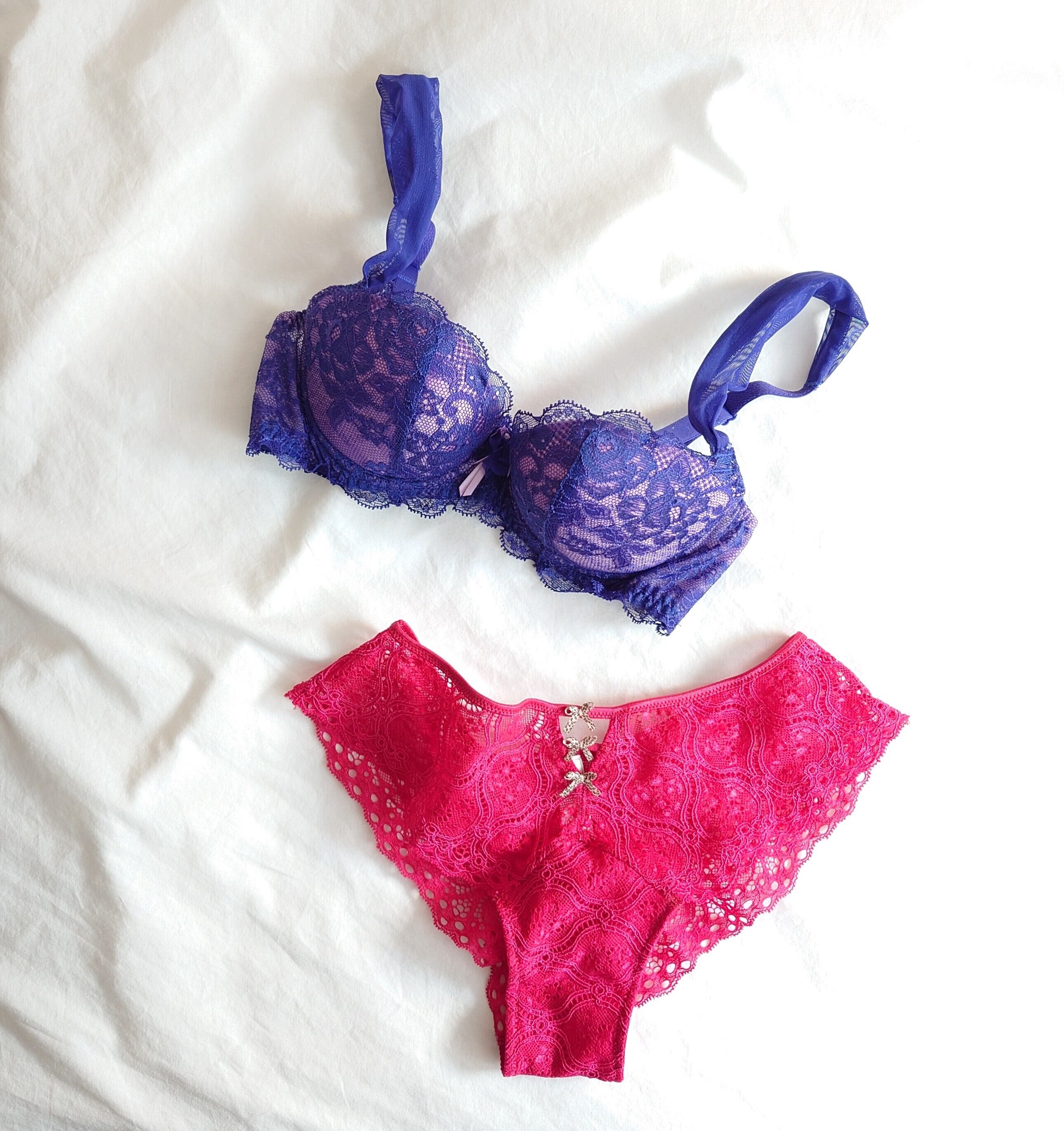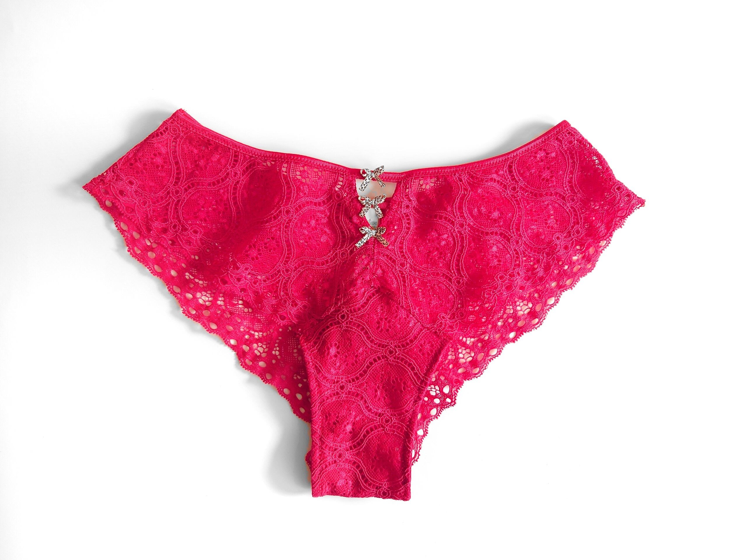 ブラジリアンショーツとは……布の面積がフルバックの約1/2でお尻に対して半分の面積を覆うショーツをブラジリアンショーツと呼びます。フロントとバックの布面積がほぼ同じです。ブラジリアンの由来は、ブラジルでこの形のショーツが好まれていて身に着る人が多いから、だそうです。そんな理由で…?と思ってしまいますが、往々にして物の名前の由来は意外とそんな理由だったりします】